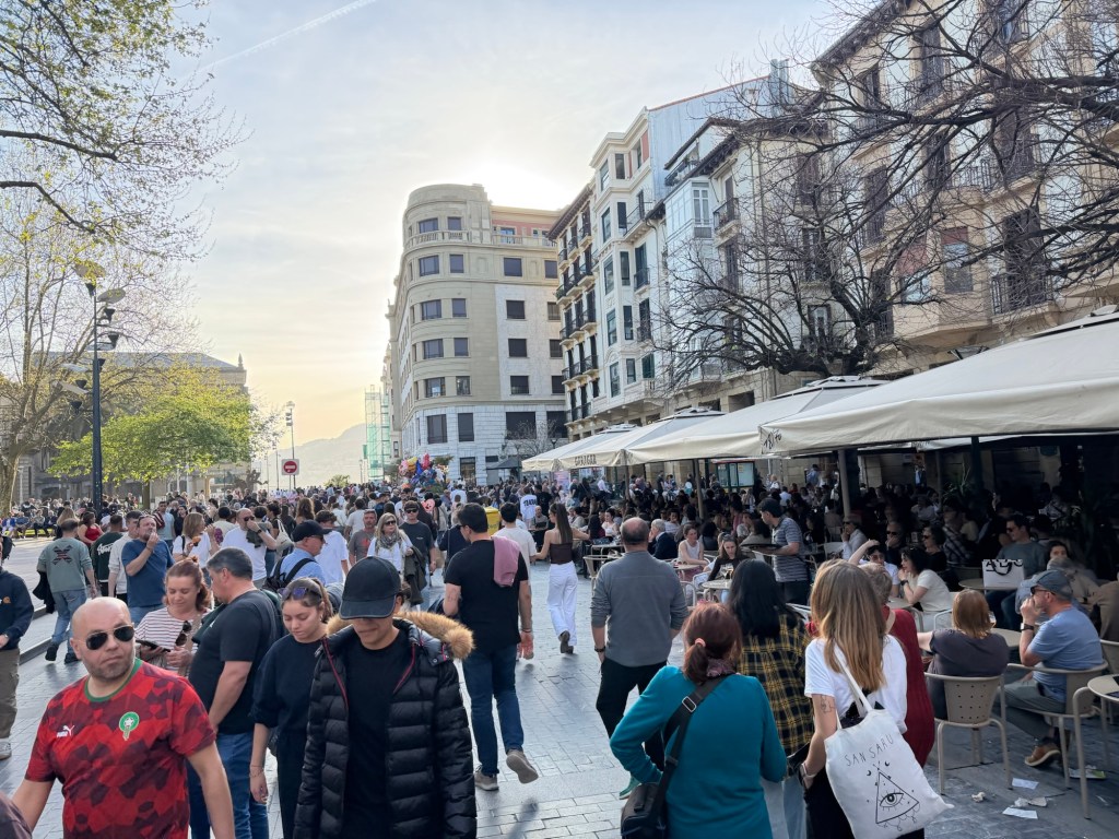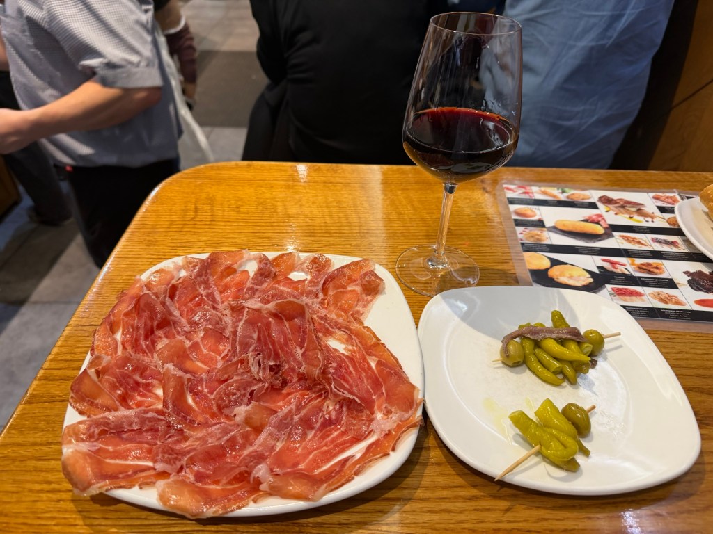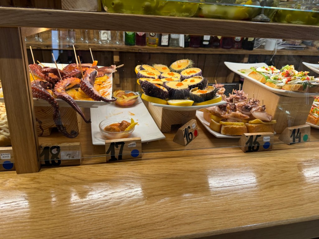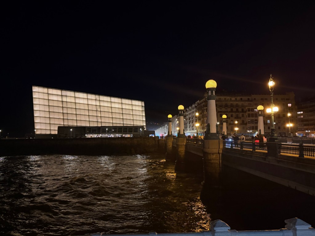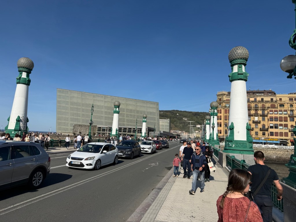 A long bus ride today. First bus to Bilbao, which has one of the nicest bus stations ever. Then an hour and a half until the next bus, so a decent lunch was found. From there a 2:30 bus to Gijon with multiple stops arriving on time in Gijon at 7:20pm. Short walk to hotel, then a shower and off to find some dinner. Lots of places around, but ended up with a mediocre pork loin type dish. Gijon is beautiful with a lovely curving waterfront. Fortunately a day off tomorrow to recover and dinner with MP relatives.