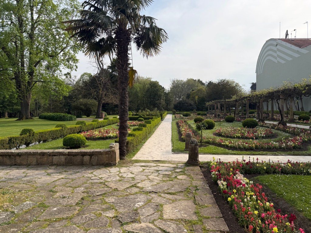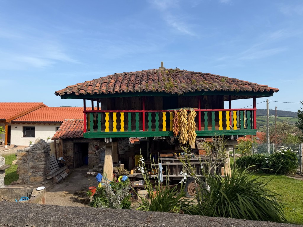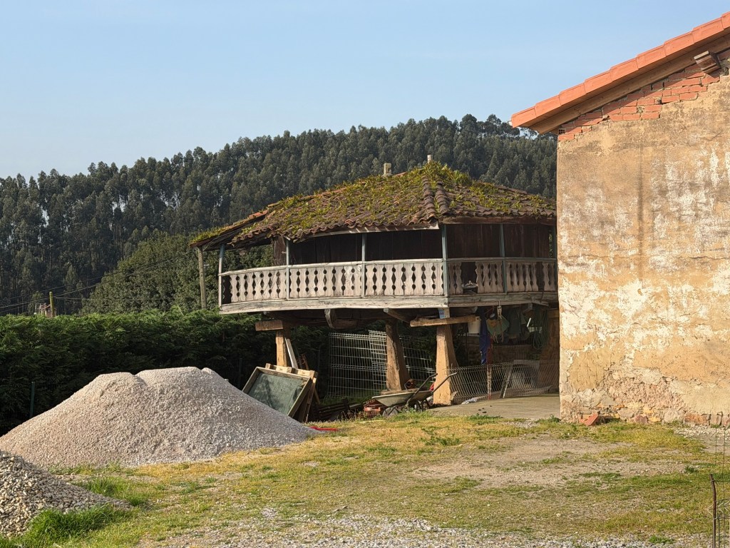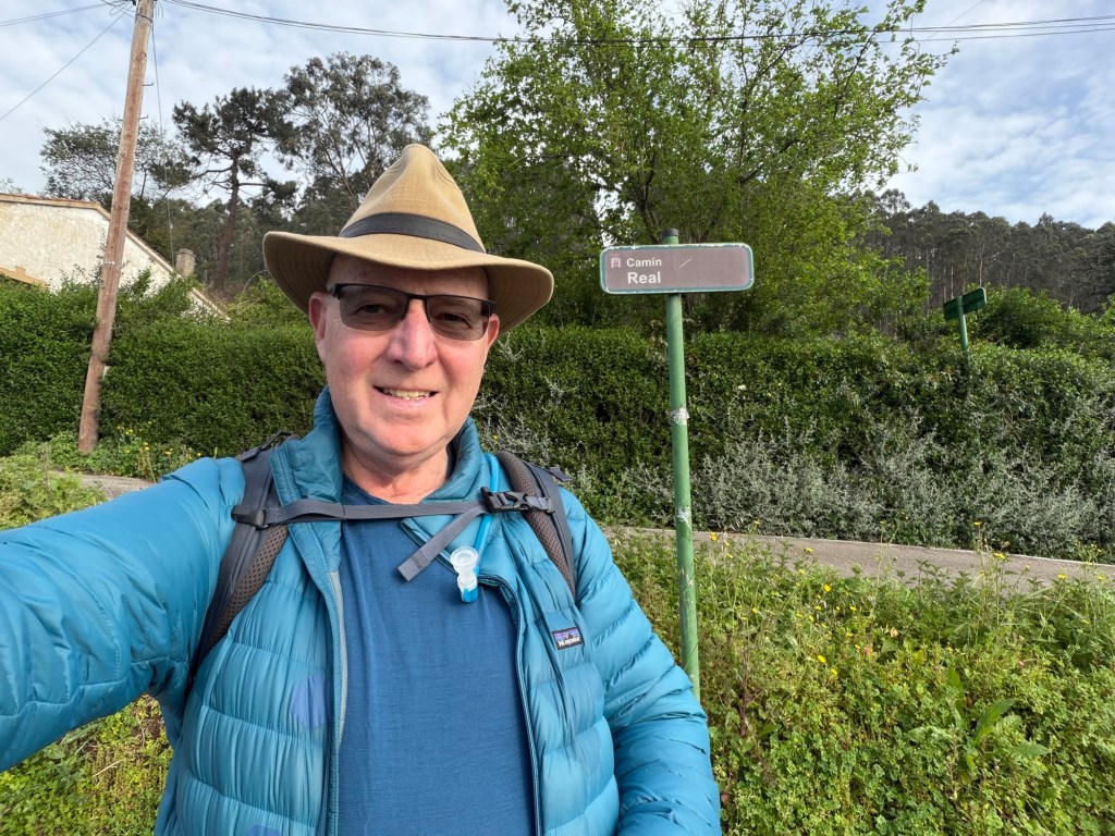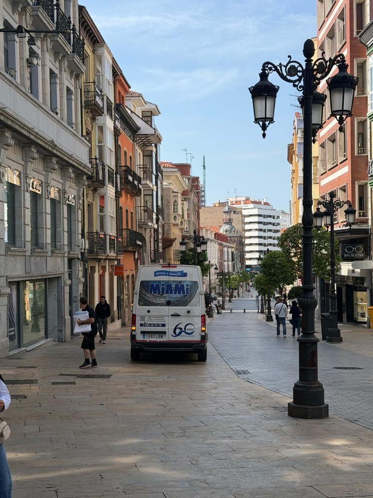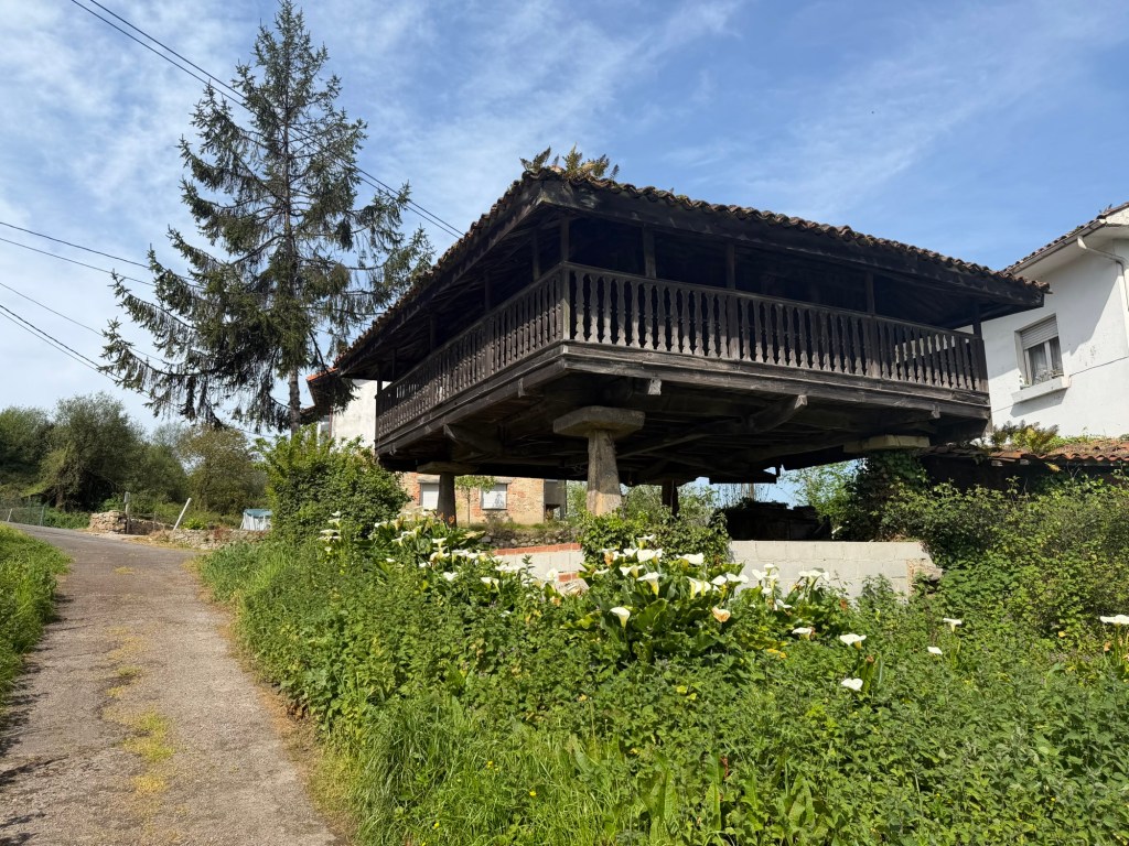 After a fabulous evening last night it was time to get serious today. Up at 7:00am to get as many things in to the roll aboard as I can so that my backpack is as light as possible. Got it to a reasonable 15-16 lbs I would estimate. The guidebook I had said that walking out of Gijon was the worst part of the Camino del Norte and recommended taking a bus, which I had planned to do. Luckily I researched it because the bus only comes once per hour, #24. I got to the stop 10 minutes early and it was right on time. The recommendation was to go to the Pauo Alto stop and that worked well and saved about an hour and half of pavement walking through grim looking industrial areas and along freeways. Right away there was a good climb up through a eucalyptus forest. Weather got warm, and after descent of the hill, it was a long stretch of pavement and a couple of hours of walking along the side of the highway. Eventually there was a bus stop in Trasona with a bus due momentarily, so I was able to cut another hour of pavement and highway off the itinerary. On arrival in Aviles, they were not kidding when the hotel was called a Palacio. Definitely a palace of a place, with a view onto fabulous gardens out back and big plaza out front. survive the first day back on the trail will definitely be sore. This is what they call “type 2”fun.
