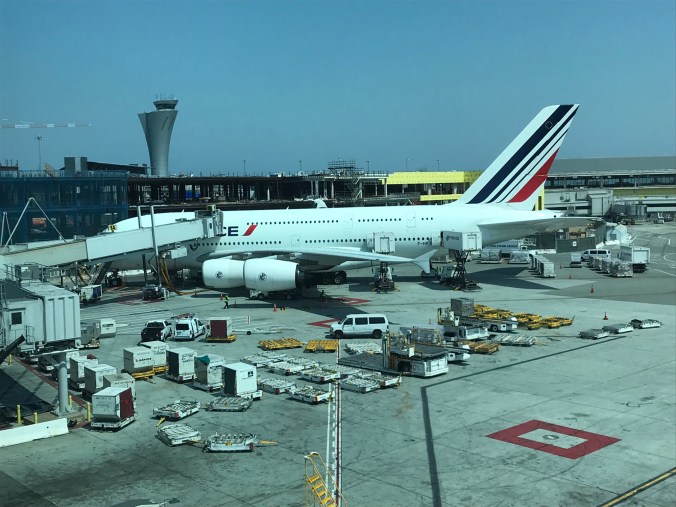 I’m at San Francisco International airport, waiting for a 3:00pm flight to Paris. Aircraft will be an A380, one of those double decker behemoths you see on occasion at international airports. According to Wikipedia, the Air France variant is designed to seat 516 passengers! Wow! More as things go on. I’m hoping for an on time flight, as I have about an hour to make it to the TGV for a train to Lyon. Photos etc. to come!