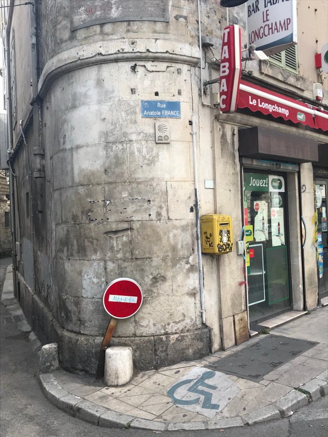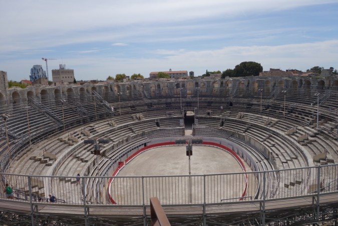Looking out over Arles from the Colliseum. Note the blue shutters are thought to discourage bugs.