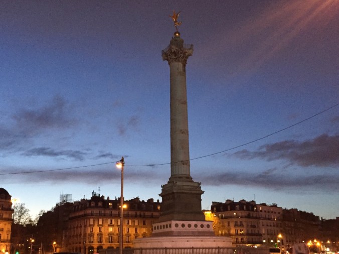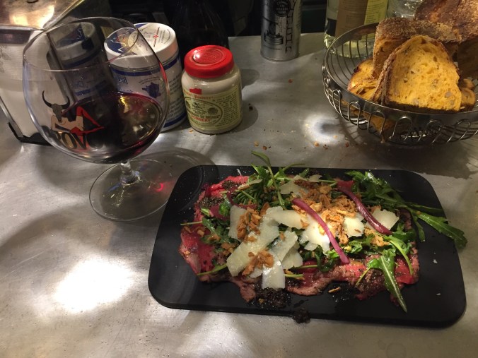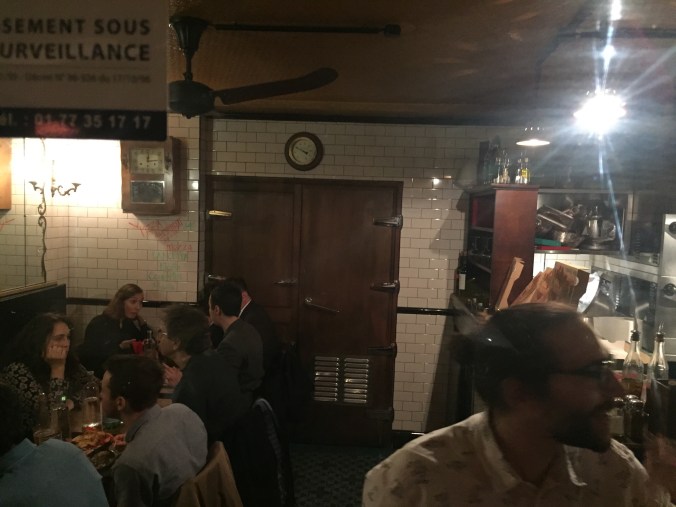 After a good solid walk to Notre dame and then across the Isle St. Louis and back to St. Germain, I tracked down an interesting Cocktail place for an Apero. The place is called the Prescription Cocktail bar and apparently launched a movement and interest in cocktails. Turned out to be an unlabeled store front a few blocks from my hotel. Tried a Negroni, which they did well. Then a quick bite at L’Avant Comptoir de la Terre, the land based version of the tapas place next door by a similar name. Then it was off to the Bastille to find a speakeasy called “The Moonshiner”. It’s a pizza parlor, but you walk through the door of what looks like the walk in refrigerator and there is a whole bar hidden in the back! Very cool!