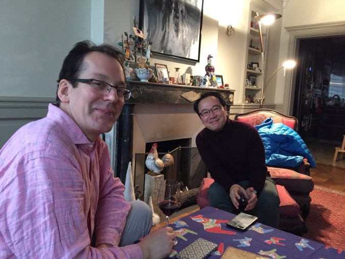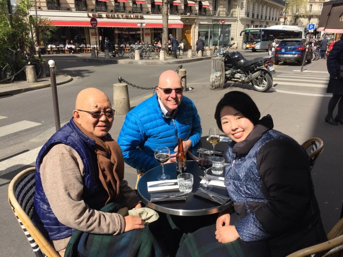 Managed a very busy and social day for my first day in Paris. Christian came by my hotel first thing in the morning and we had a coffee and a nice chat. He’s off for a ski trip when I’ll be back in Paris at the end of the month, so won’t get to see him again. After that headed for a walk past St. Sulpice and through the Jardin du Luxembourg, where I sat and absorbed some of the morning sun. From there a stroll to Pl. Contrescarpe, and then down Rue Mouffetard. Then off to meet Atsuko and her father. I met Atsuko at Mt. St. Michelle a few years ago when we shared a taxi to St. Malo. She just happened to be in town for a few days and staying right near where I am. We had a lovely lunch at Cafe Breizh, famed for their crepes which come in Buckwheat and are GF. After a quick nap and a meeting with a lady who rents some apartments to give her a deposit on one for the end of my trip, it was off to meet John and Atsu to go to dinner. I had found a potential interesting restaurant called Pierre Sang in the Oberkampf area. Well, it turned out to be a fantastic 6 course Prix Fixe (39euro), and the food was terrific. We all enjoyed it, and the waiter was also fun. Photos to follow.