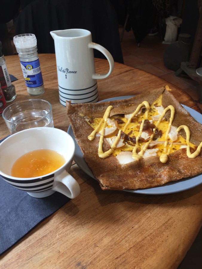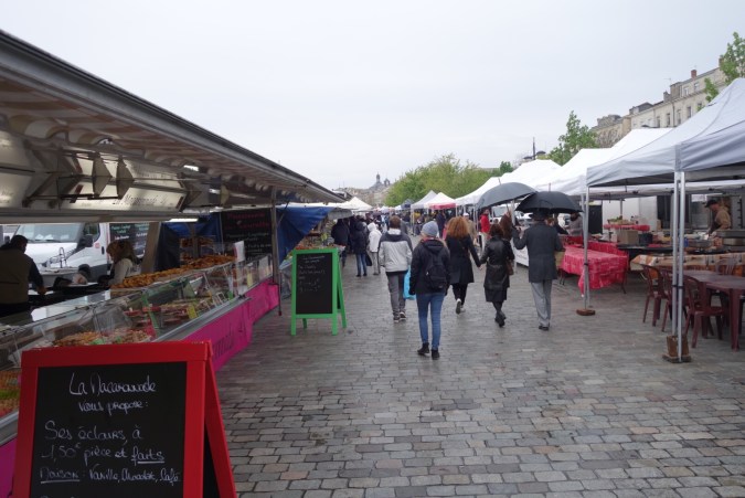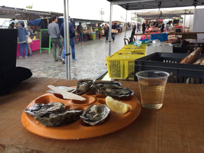 Started the day heading for the Sunday market on the Quai des Chartrons. The usual booths were present, and I managed to have a half dozen oysters for breakfast, followed by finding a good coffee shop in the Chartrons neighborhood. La Pelle. From there, rode the tram out to Cenon, not much to see there. After, time for lunch and because of the rainy morning a crepe seemed in order, so off to La Parentheses. Some down time at home to book AirBnb for Toulouse and a few other things. Then a walk to the Jardin Public and a stop at wine bar Le Vertige. Dinner was serviceable but not great.