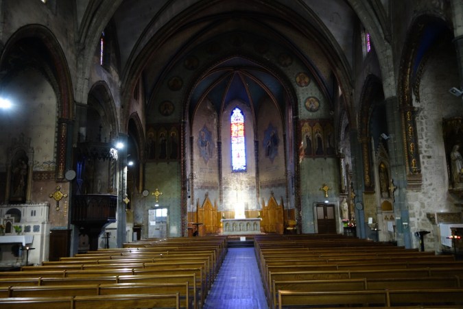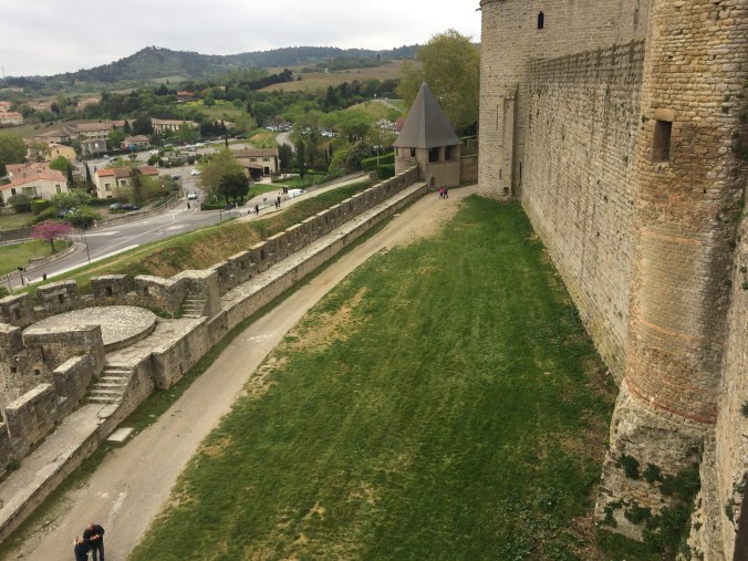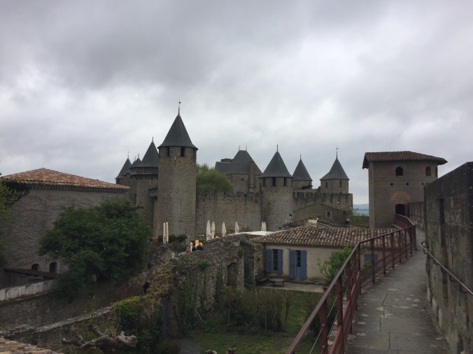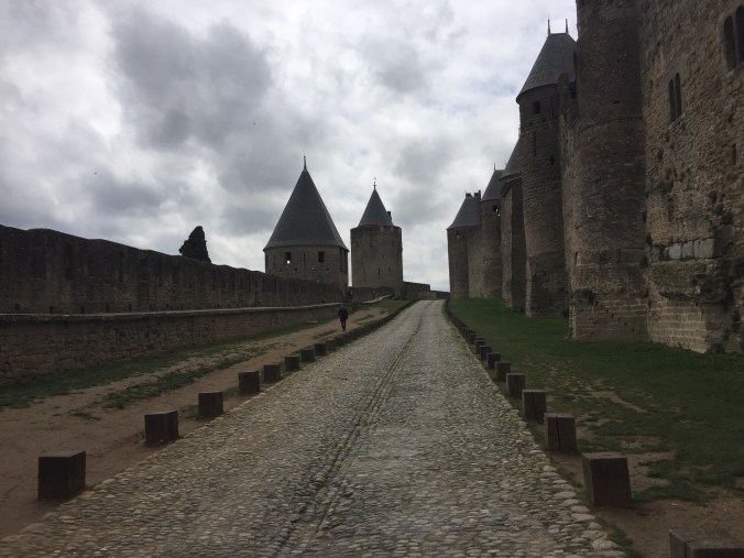 Woke up to a chilly and windy grey day in Carcassonne. The owner of the large, funky apartment I’m staying came down to show me how to operate the heating, and we had a pleasant interaction. I had made a loop in a dangling light and tied it up with a zip tie so that I wouldn’t cause my self a head injury on it during the night, she seemed ok with that once I explained. I’m staying in the main part of Carcassonne and the Medieval city is it’s own world, about a 20 minute walk from the downtown. I walked over and did the audio tour of the castle, quite interesting history and rebuild. Dates back to Roman times with numerous things in between. Really is the kind of castle you think about in story book times and apparently was used as the set for Robin Hood. Eating in Carcassonne is proving to be challenging. Last night I went to two places, that obviously had some free seats and got the “we are totally full” line. The French have not figured out that a solo diner will sit and eat and leave meaning they could easily feed someone if they wanted too. Lunch today was a fiasco. Went into the most authentic looking place Dame Carcas, in the medieval city and proceeded to be kept waiting at my table for half an hour while everyone around me had their order taken. Just as I was about to bail, they took my order and got to it reasonably well, but, really the problem is that they had 2 wait staff for a 60+ seat restaurant and for some reason the French business codes don’t seem to encourage hiring part time people. It’s frustrating because this is a super common problem in French restaurants in the smaller towns. Oh well “C’est La France!”