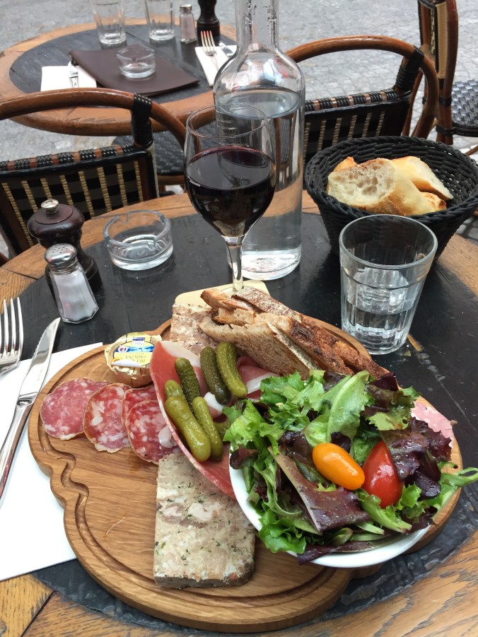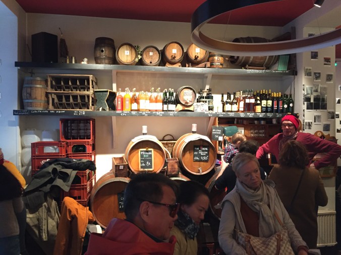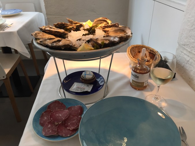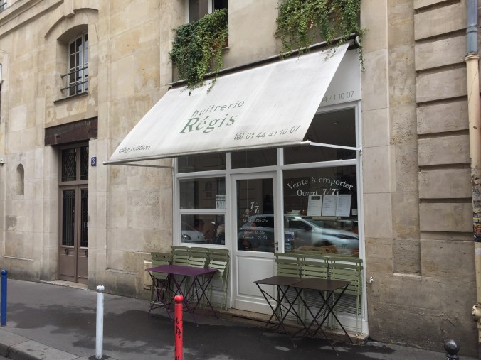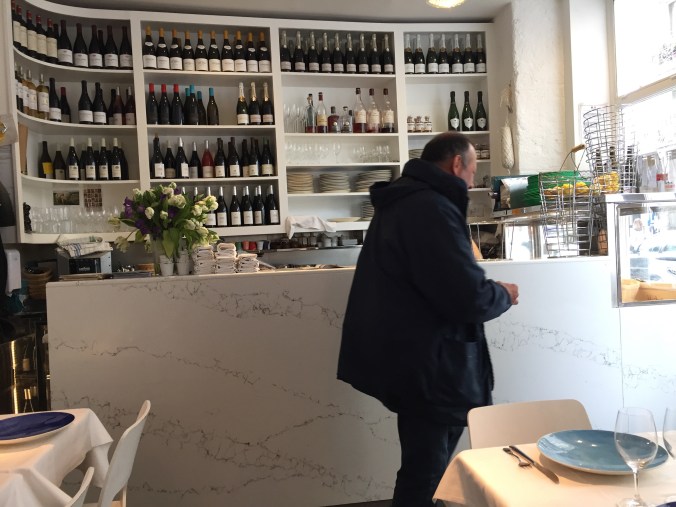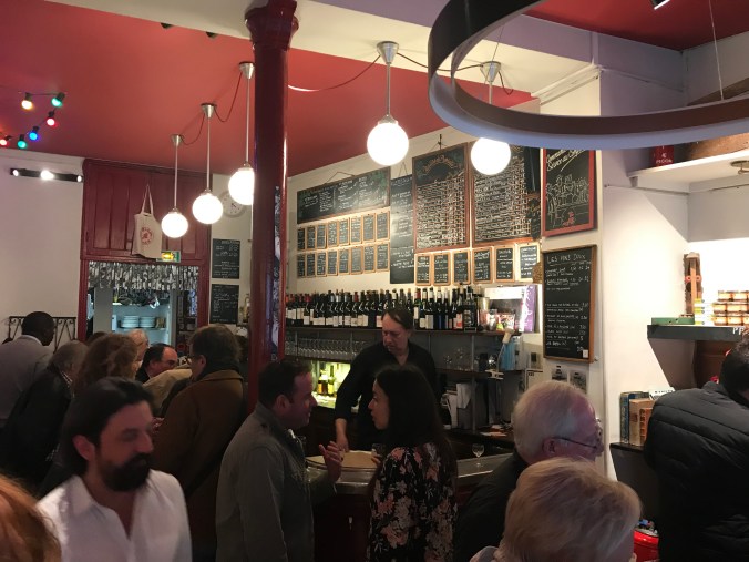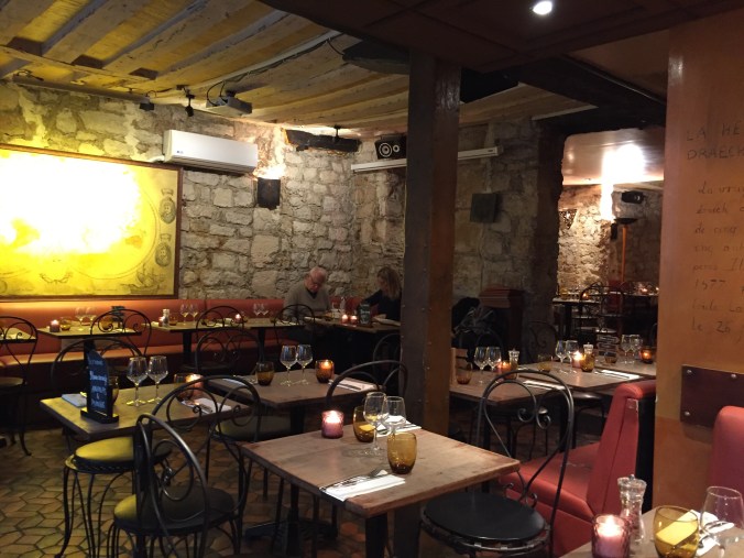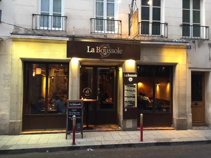So the day started off with an interesting twist. When I left the apartment, I went to double lock the door as usual and the key would not work. This meant not only couldn’t I lock it fully with the deadbolts, but since the door had latched, I couldn’t get back in either. After struggling for awhile, I went and had coffee, came back and tried again. No luck, called landlord, Eva, who is in Greece. She asked me to knock on a neighbors door, he didn’t have any luck either. So, she called a locksmith, who showed up about an hour later. By sliding a piece of X-ray film through the crack he could get the door unlatched. He pulled the lock off and got it partially working again. This lock has both an outer cylinder and an inside cylinder. Something has failed in the outer cylinder. As it stands now, as long as I just pull the door closed and don’t double lock, it works, but if you double lock, even from the inside it seems to seize up again. Fingers crossed that it will all hold together until I depart tomorrow morning. Anyway, this whole thing took up the morning, so it was off to Huiterie Regis, a wonderful little oyster bar for some lunch. The weather was off an on rain and still quite cold. Went up to a favorite cafe on rue de Montorgueil called La Compas D’Or to hang out for a little bit, then to catch the Sunday afternoon crowd at the locals wine bar called Le Baron Rouge.