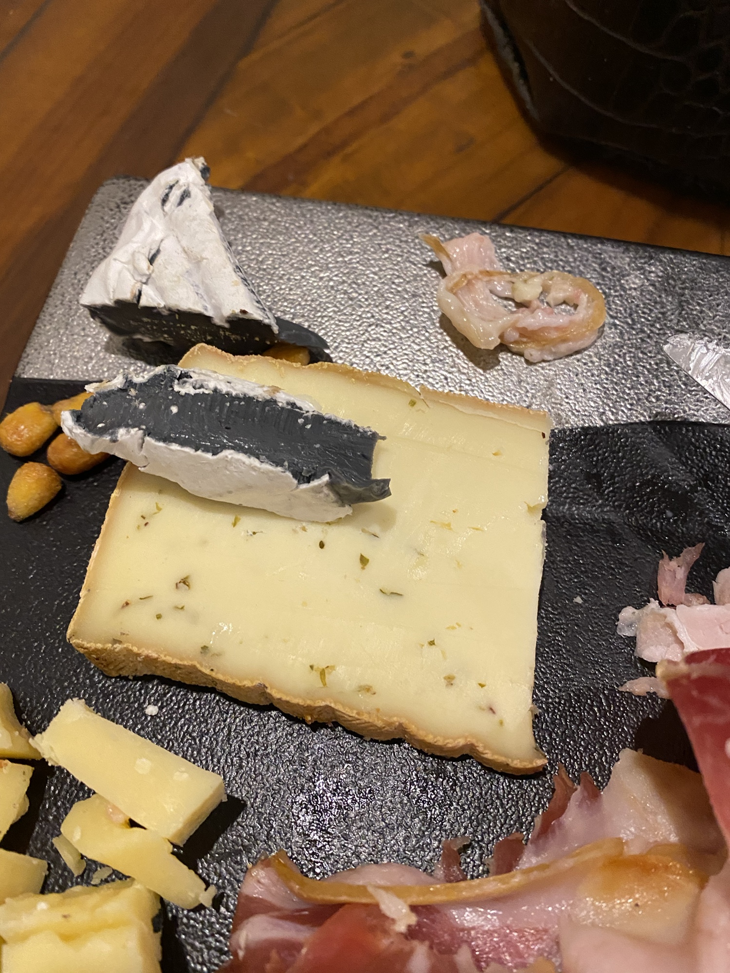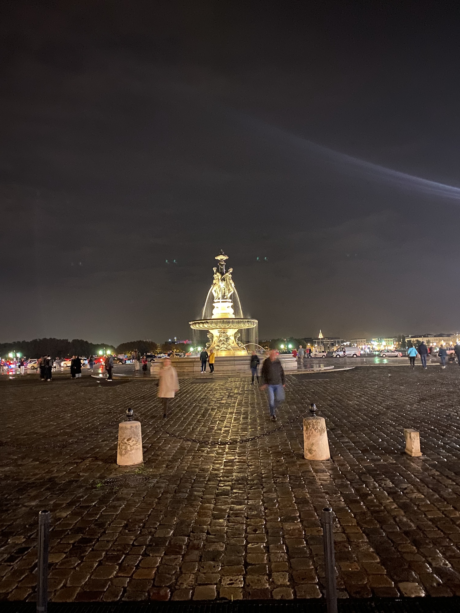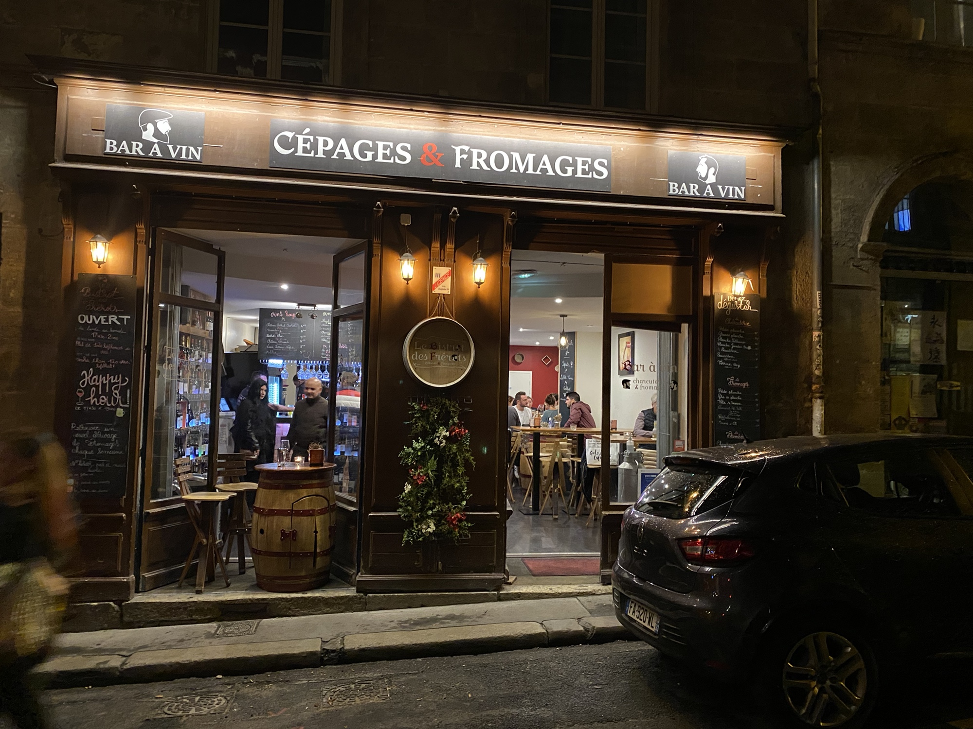Today I was fortunate to find that the scheduled train strike was canceled, therefore, my train was precisely on time. La Rochelle to Bordeaux leaving at 9:54 and arriving Bordeaux at 12:08. Bordeaux is much further south and as such is warmer than further north. On arrival, it was sunny and pleasant, and I took the tram and walked to find my AirBnb. This one is in a modern building, and is a a quite large one bedroom, but is very plain. In any case, everything works, the location is good and seems fine. Went out and found a crepe for lunch and spent some time reorienting myself to Bordeaux. It’s a big city, but the downtown core has lots of little restaurants and bistros. Went back to one of my favorite coffee shops, Black List, and they still make excellent coffee, and have super fast internet. After that, a little more walking around and then it started raining off an on with occasional vigor. Although google said Bistrot des Frerots would be closed, they were open since it is a holiday weekend here in France and Halloween seems to be recognized to some degree. I ordered a glass of Medoc and a small combination charcuterie plate, which turned out to be more than enough for dinner. Across the street was a Mexican bar with a full Mariachi band playing and there were enough costumes going on to think that it was going to be a wild night for the younger set.