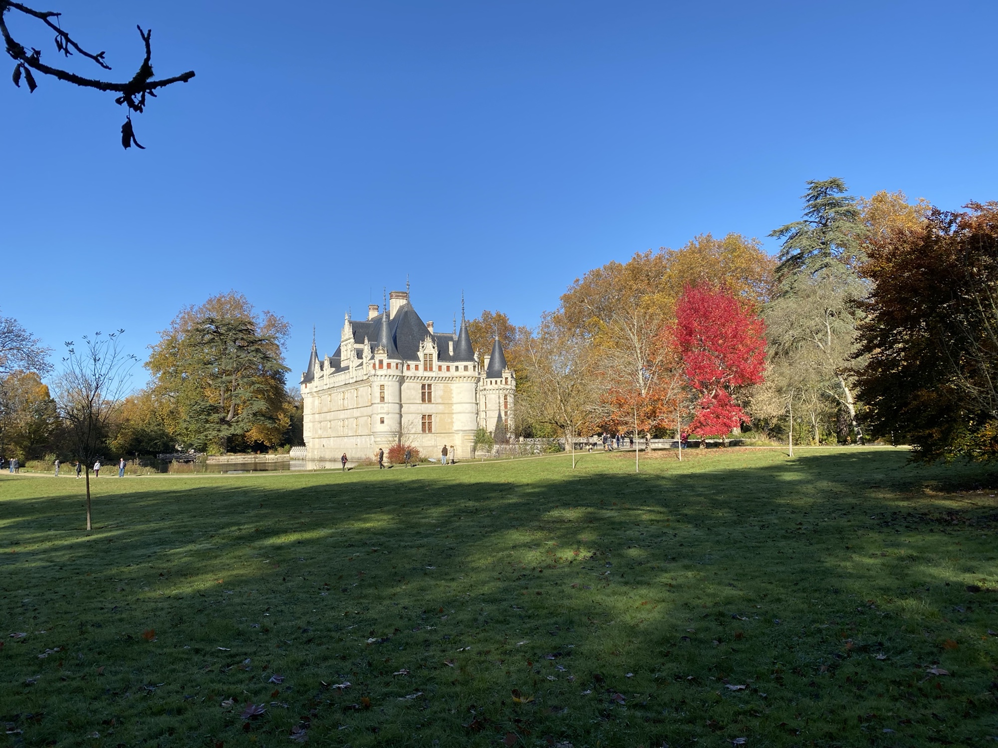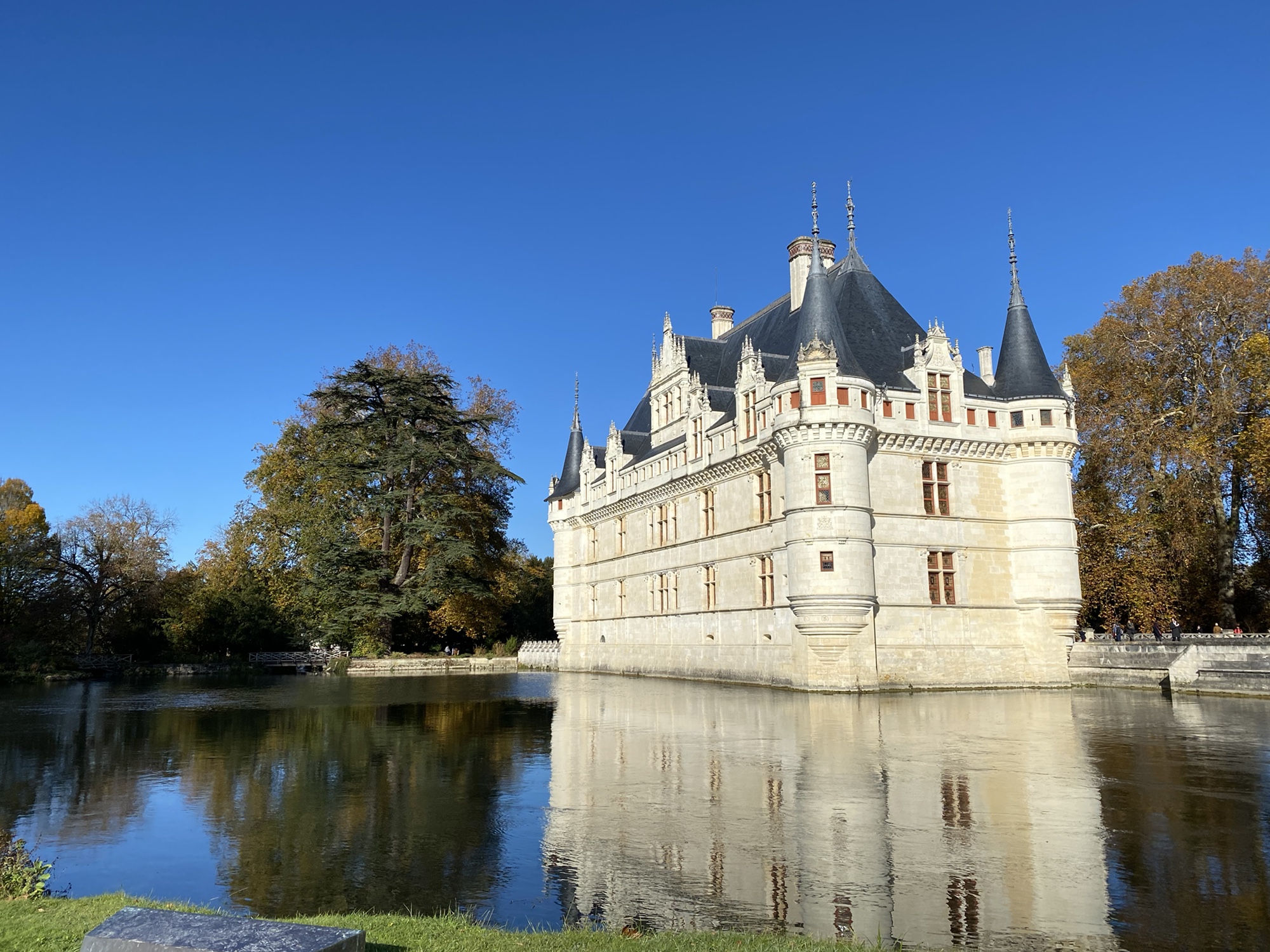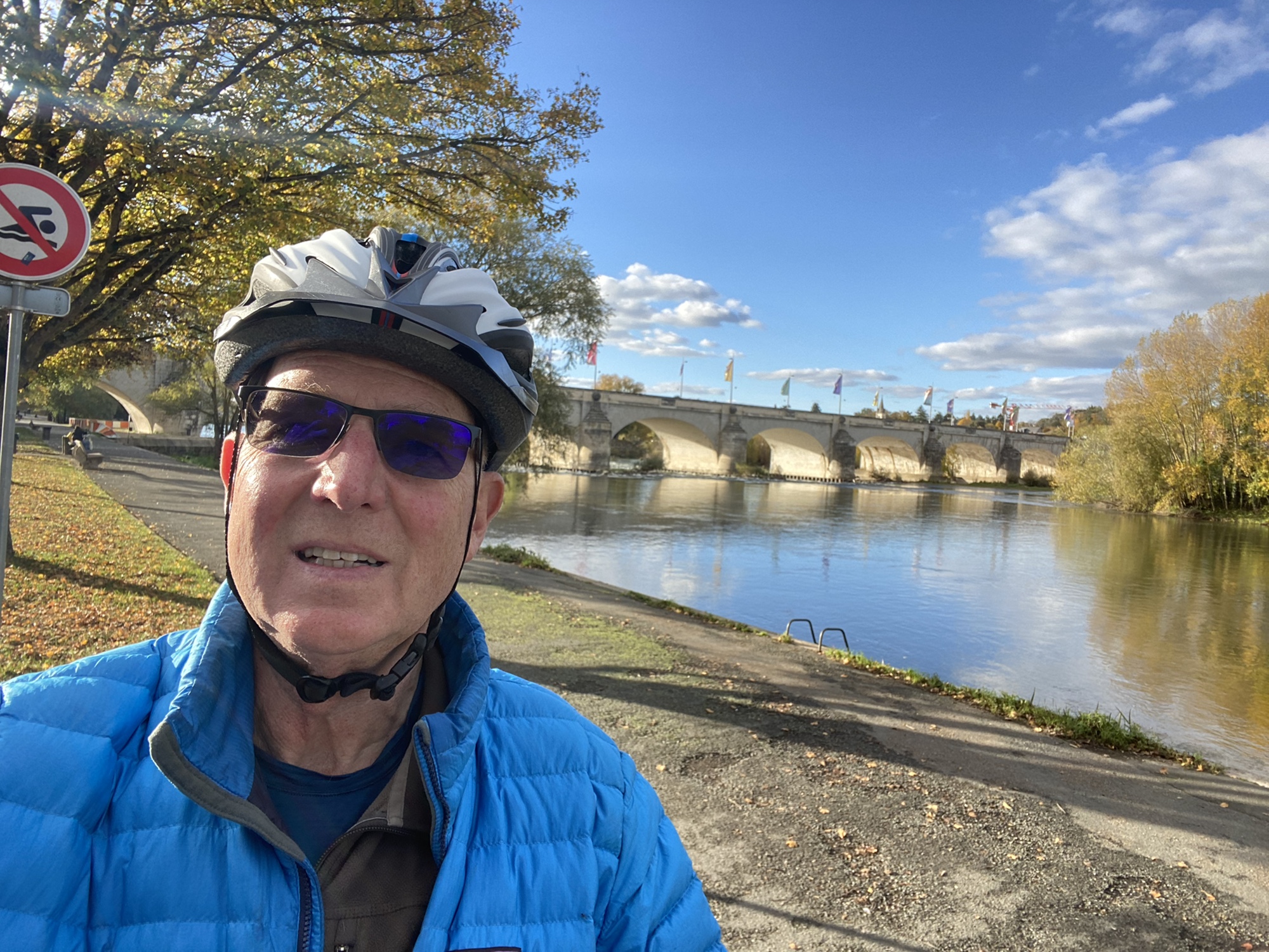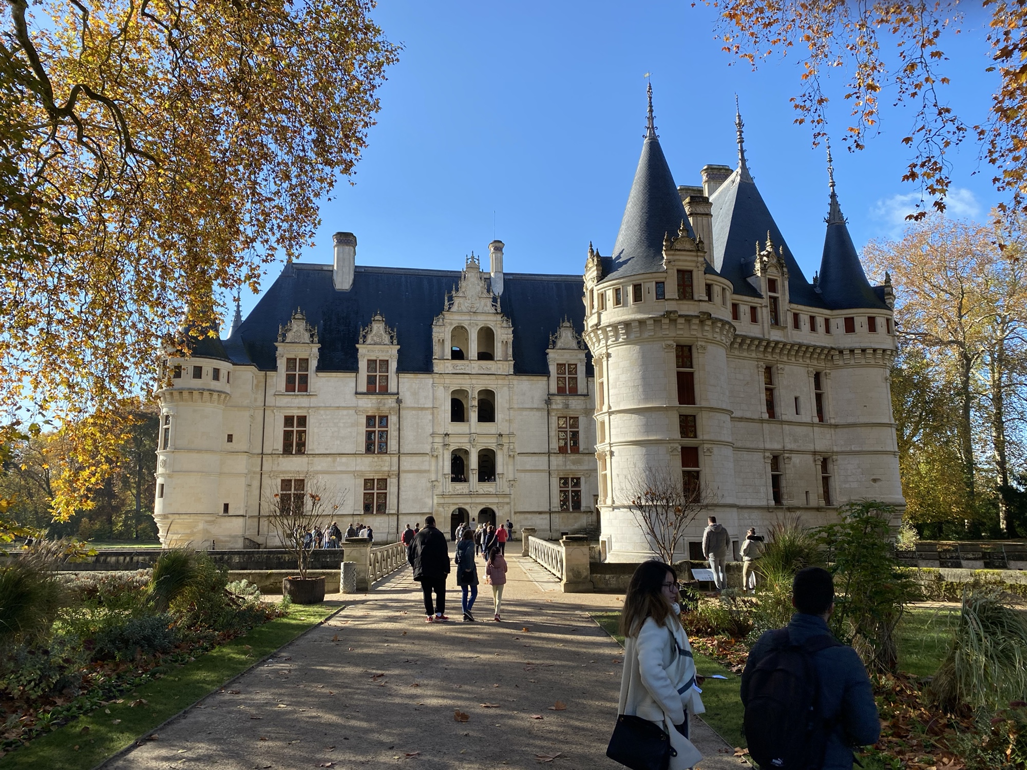 Today came together unexpectedly well. I got up fairly early, and decided to call another of the various small tour providers to see if I could get to some chateaus. The one I happened to call had a tour going and was happy to have me join them. They were going for a full day, but I ended up getting the guy to drop me off after the morning in Amboise. We went to two of the very classic Loire Chateaus, Villandry and Azay-le-Rideay. There are fairy tale type castles with amazing gardens, My original plan was to have lunch in Amboise and then hop a train back to Tours, but I realized that I could use a one way bicycle rental service and do it by bicycle. So, after lunch, I rented an electric bike and it was a good long ride, somewhat along the Loire River and somewhat inland to get back to Tours. The electric assist is nice but I mostly kept it in the lowest setting. Definitely a very solid day on the exercise front. It was one of those cool, crisp fall days, and fortunately by lunch time had warmed up enough to make riding feasible.