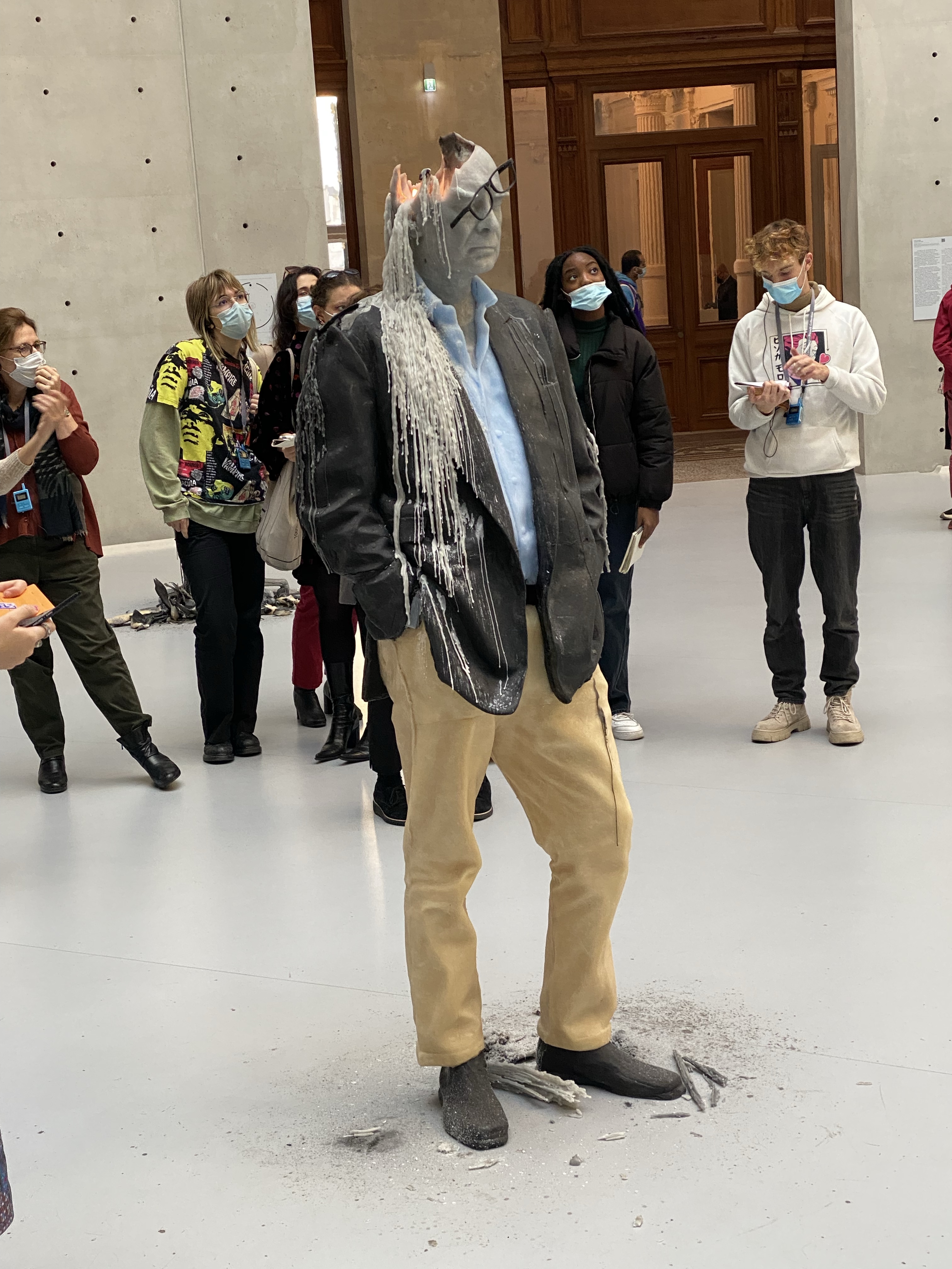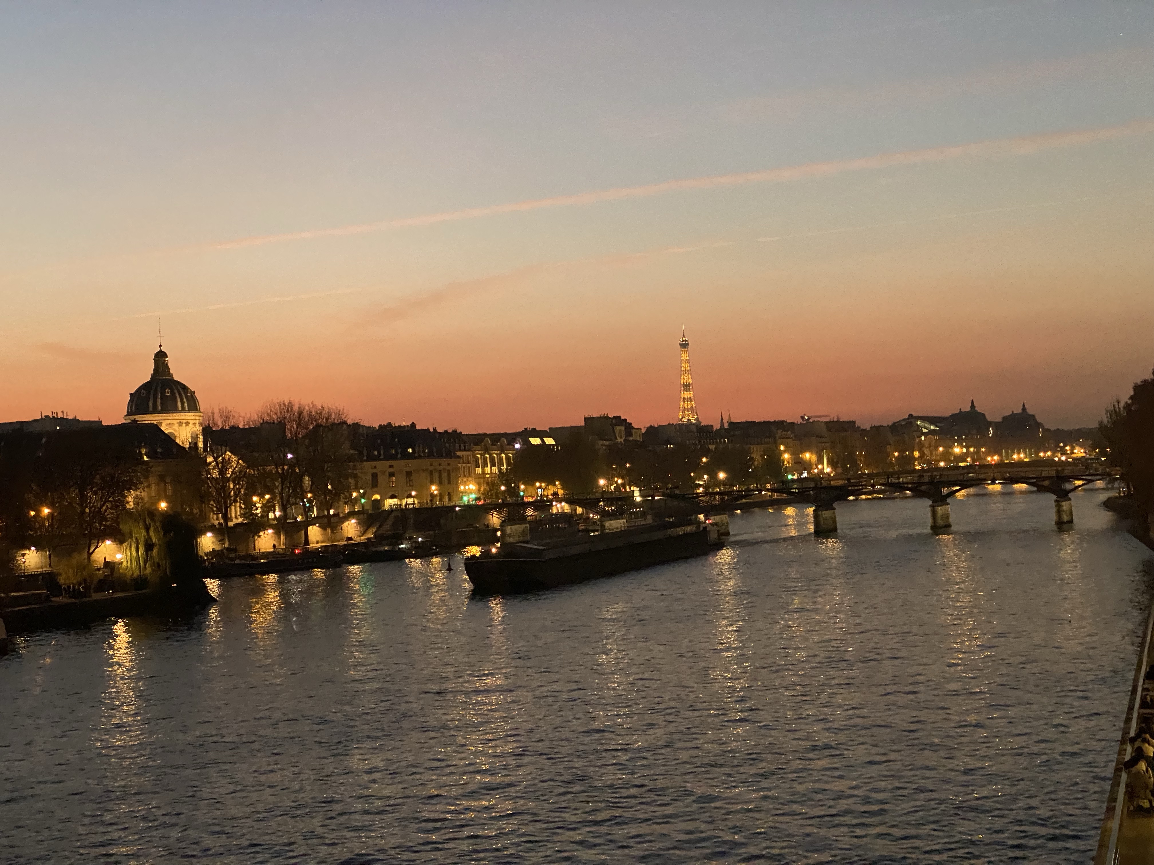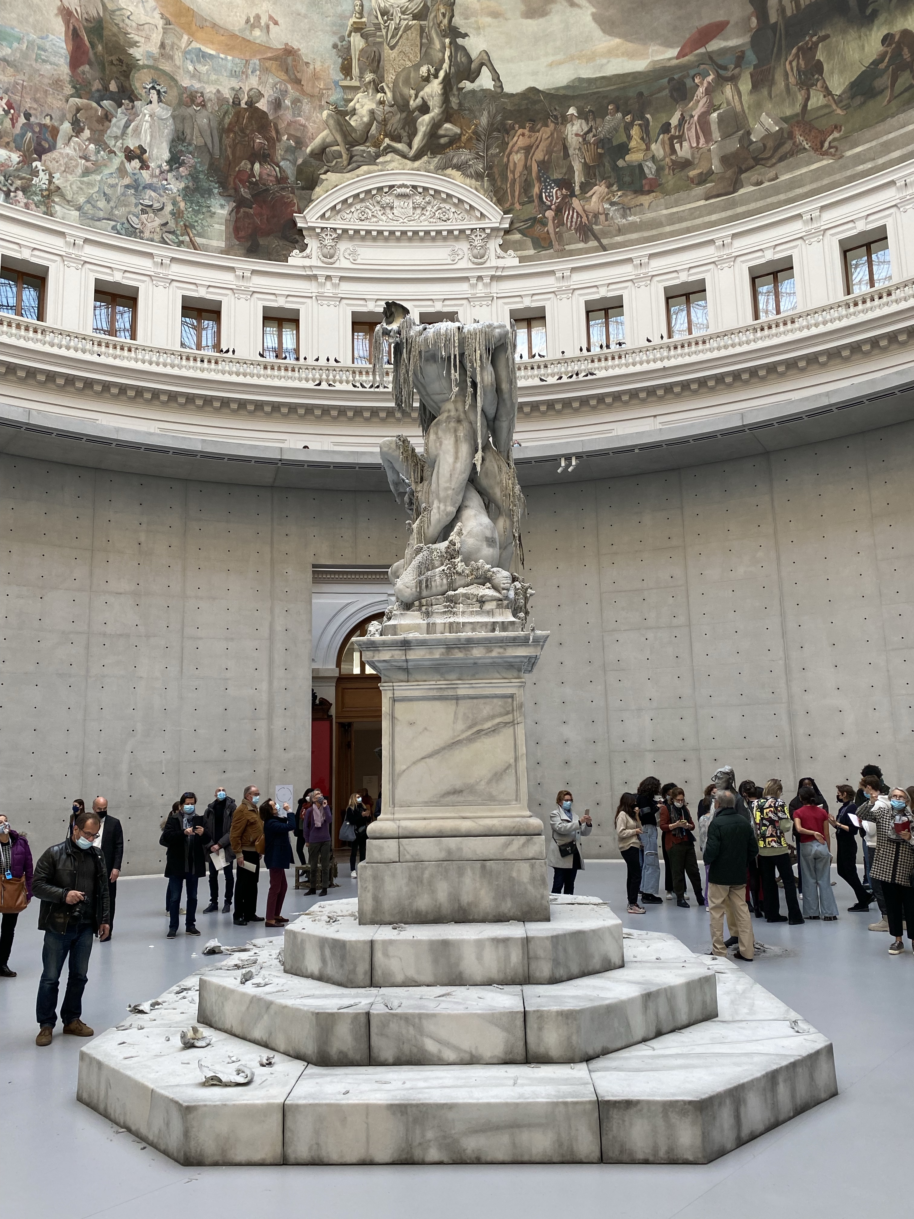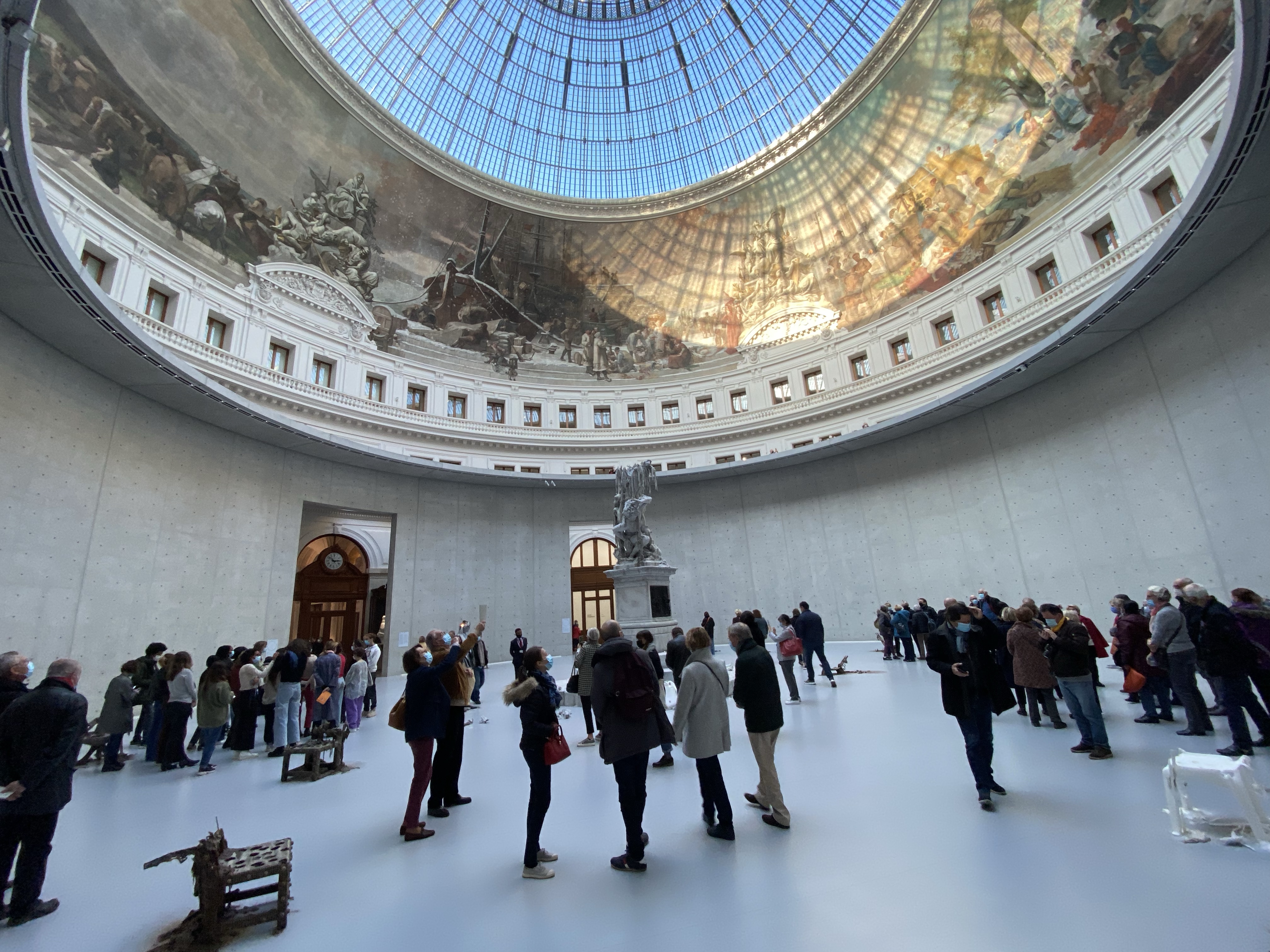Got up early today because I had a Covid antigen test appointment. Currently, anyone entering the USA needs to have a Covid test within that previous 3 days. I set mine at 2 days before departure, so if the flight gets delayed I have some margin. After a coffee at Cafe Flore, I headed up Rue de Rennes towards a pharmacy for the test. (Note if you need this, schedule on Doctolib.fr ahead of time). After the nasal swab and certain amount of waiting I was handed an official looking printout of things with various QR codes etc. Should do the job. Delta has a place to upload these and a copy of your VAX card, so hopefully I’ll be able to get an online boarding pass tomorrow and skip spending at least an hour in line at the counter at CDG. After uploading things to Delta I headed to Peloton for a coffee and then over to the Rodin Museum for a quick tour of the gardens. I bought an annual membership since that will get me in at will and was not very expensive. Took a quick walk to Coutume to meet Oliver Gee for lunch, they didn’t seem to have much GF, so ate at nearby cafe. After lunch it was off to the Bourse-Pinault museum, a newly opened museum in the restored Bourse building. After waiting in line (I’m coming to the conclusion that a timed ticket just gives you a time to start waiting) and then going through security (really one metal detector for the whole place???). Finally got into the museum. It’s circular, and the main “Art” on display was wax figures slowly melting with candles. Took longer to get in to the place than to circle around and get out. Imagine if the people who ran CDG ran a museum and you’ll get the idea. Other than a great ceiling, this experience can be skipped with no loss whatsoever. Did meet up with NH neighbors Tom and Leslie at their swank hotel for a cocktail on the roof top, very lovely. The hotel is in the newly restored Samaritaine building and is called Cheval Blanc. Great Eiffel Tower views. A few bites at L’Avant Comptoir du Mer and it was time to call it a day.