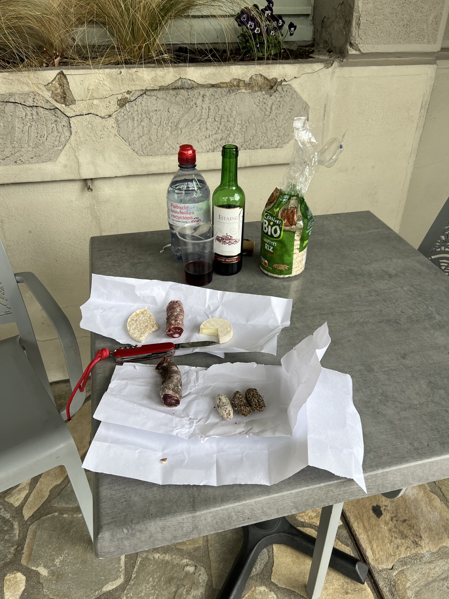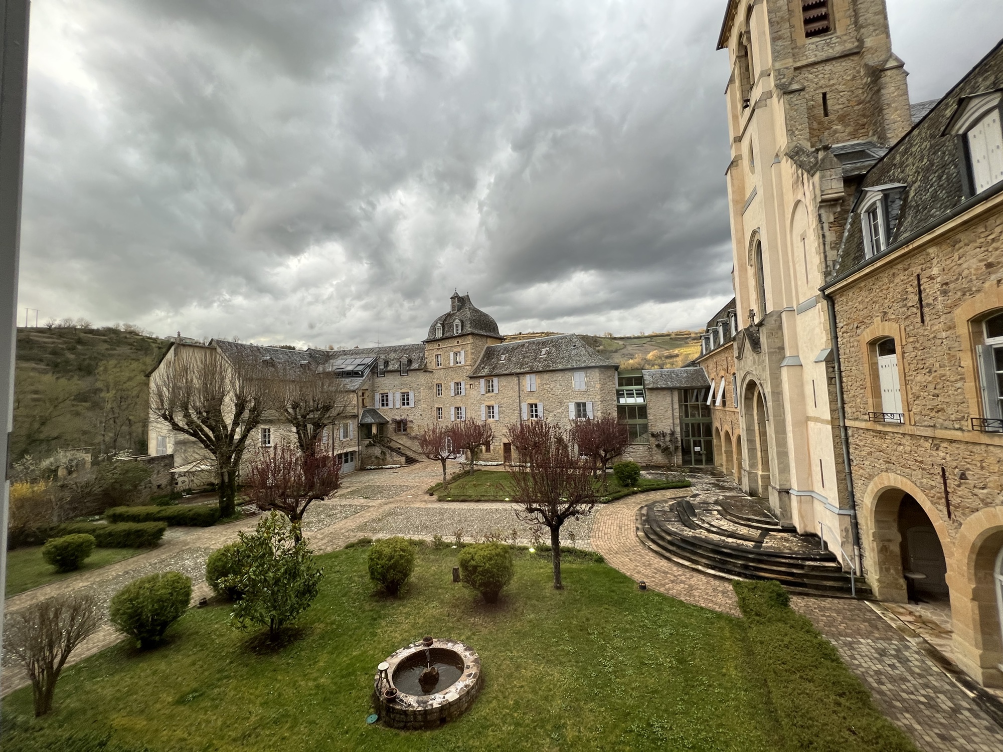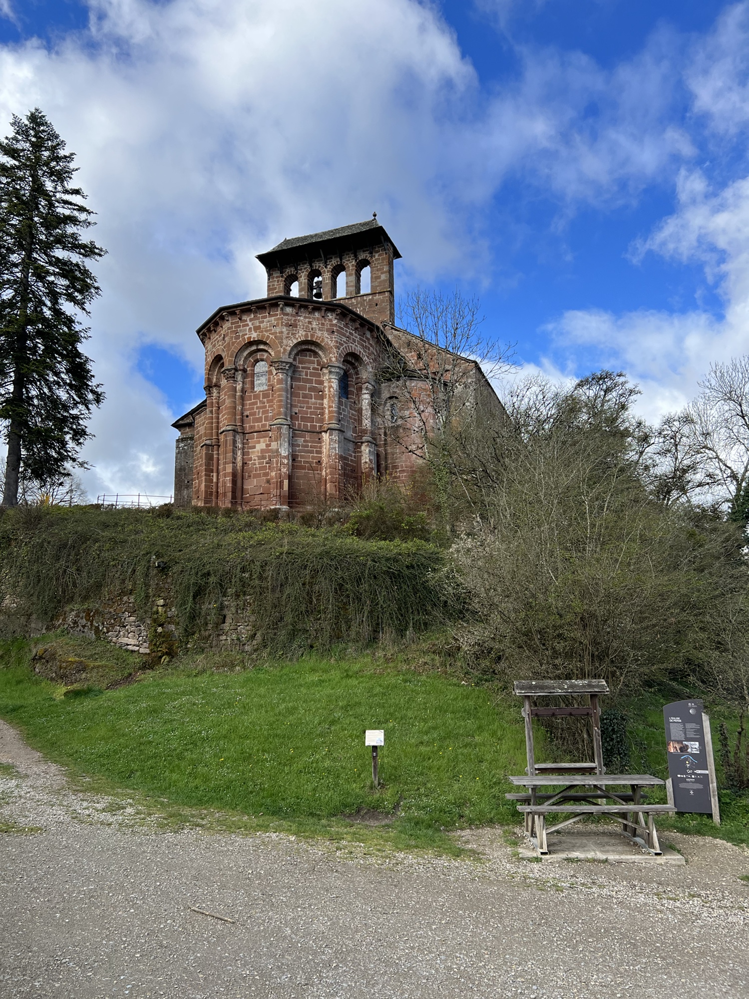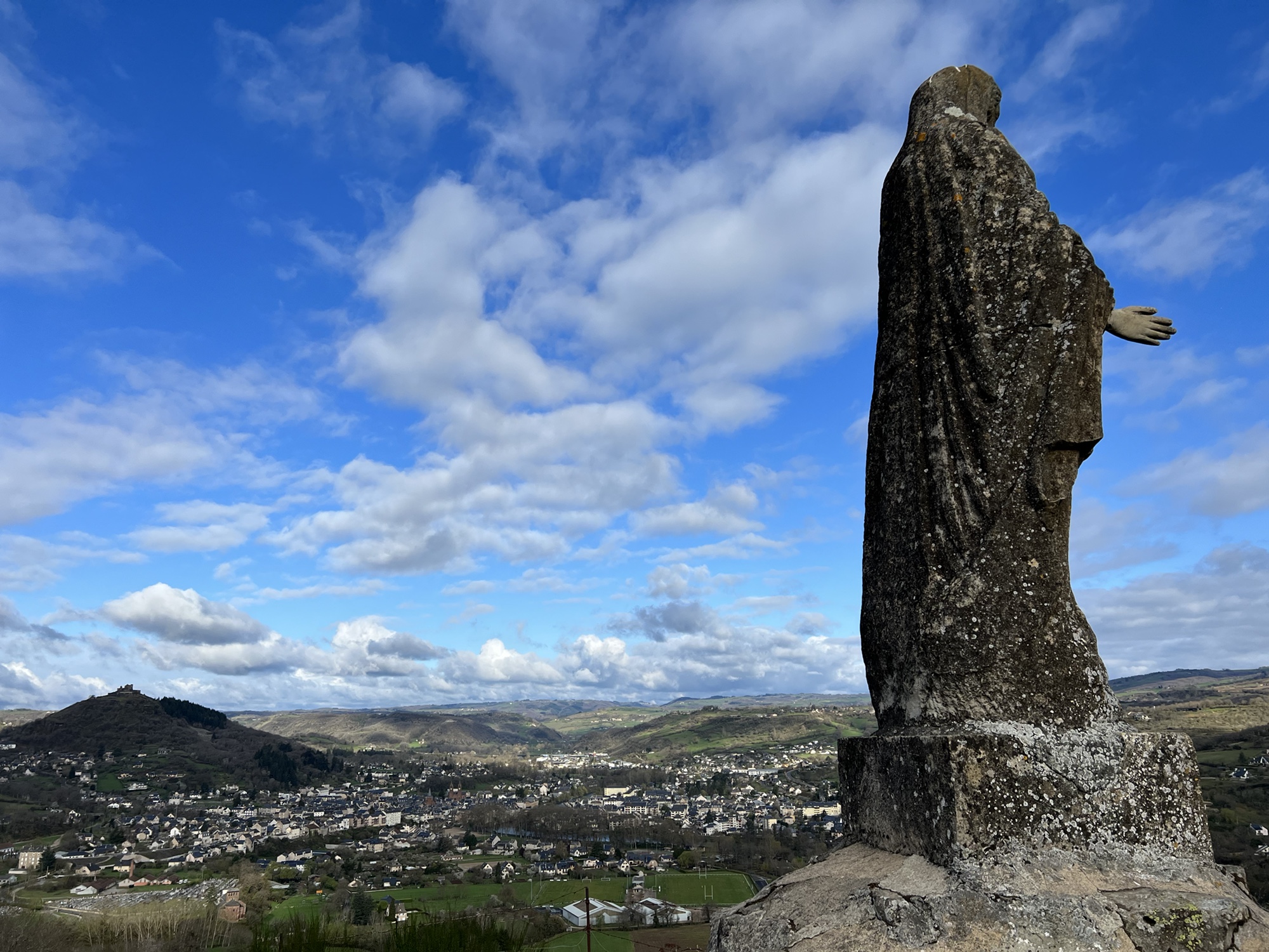 Had a pleasant quiet night in the Couvent, and abbey or monastery that has been converted to a hotel. Very quiet, a simple but good dinner. Was out the door just before 8:00am and walking through Saint Come. Although in total there was not much net change in altitude, there was quite a lot of up and down today. Weather, although forecast for rain, gave me a break and was actually quite pleasant. Basically a long walk through lovely countryside. Of course when I arrived around 2:30pm in Estaing, the hotel had a sign saying it would not open till 4:00pm, no restaurant would serve me because it was after 2:00pm. Luckily, the grocery store was open. So, today was the ninth day in a row of walking and definitely the easiest weather wise. It is interesting that after nine days of solid walking I still find it a challenge, lots of up and down, mud, rocks etc. Navigation is pretty straight forward, well signed and I have the Wise Pilgrim app to consult if I feel that I might be off trail. Somehow my pack is still heavier than 20lbs even though I’m having a bag transported. Walk the Camino, the company that made my reservations has done a great job and is very responsive to WhatsApp texts. My 3 different French Sims all seem to work, with Orange having the overall best coverage. Other pilgrims have been pleasant to meet, no other Americans encountered yet. Hard to believe only two more days to Conques where I end this round. I will plan to come back and walk another section, probably in the fall.