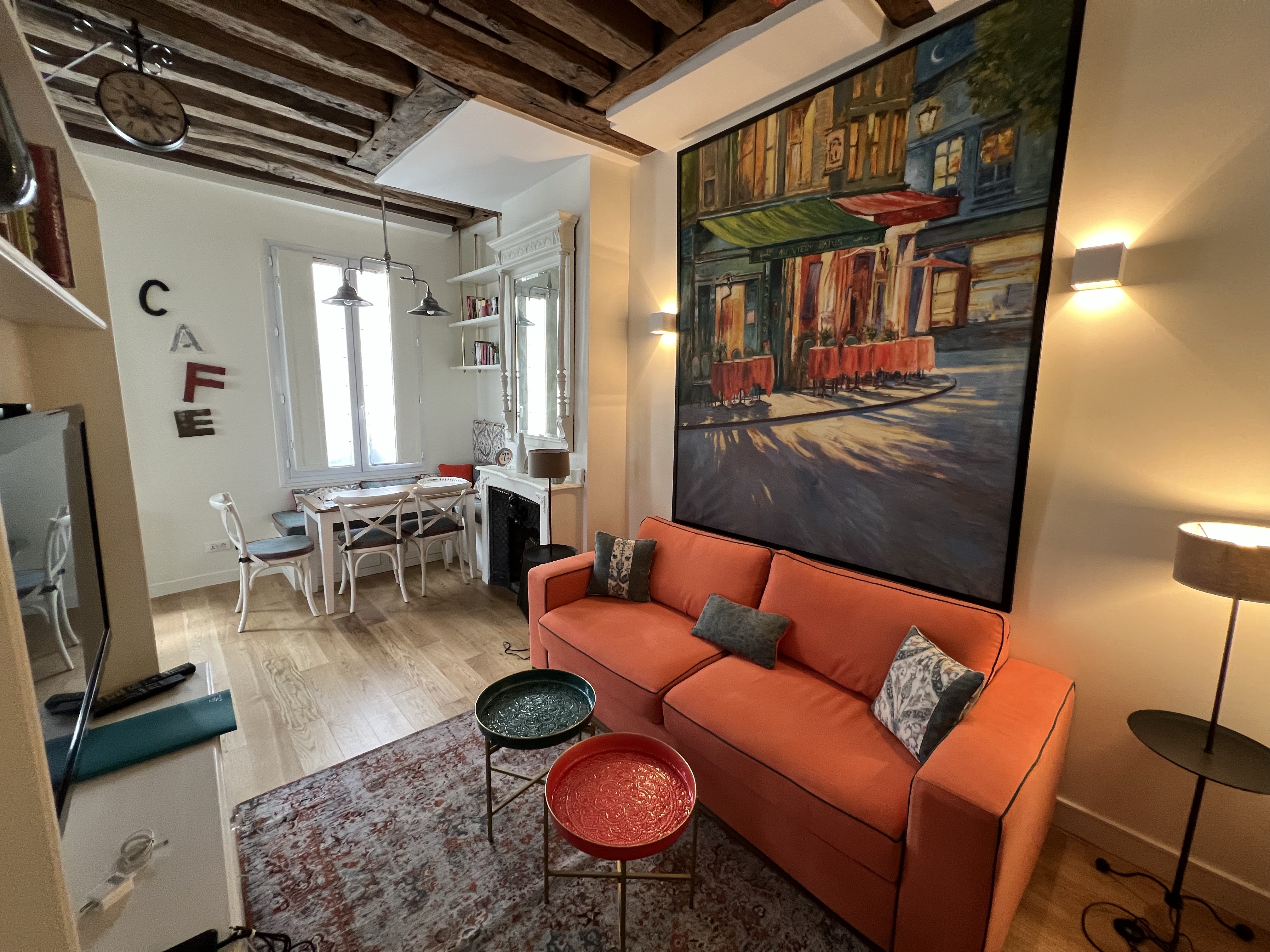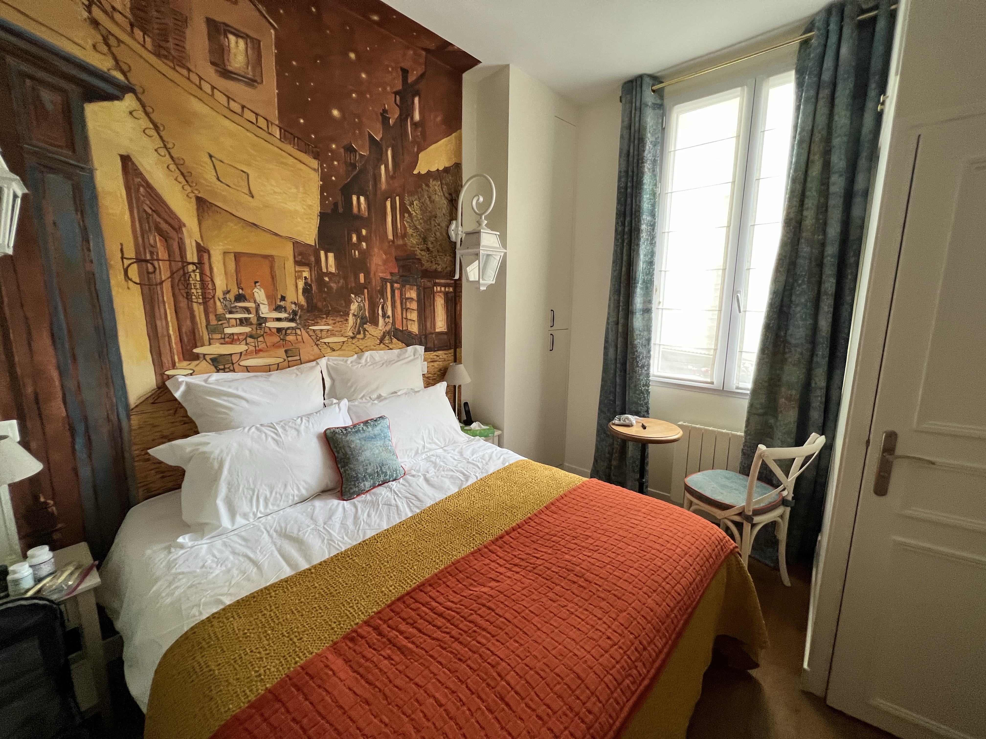 Today, I had a bit of time in the morning for a walk before heading to the train station for TER to Bordeaux and then TGV to Paris. Luckily I saw there was an earlier train, so took that, which gave me enough time for a quick salad in Bordeaux before taking the train to Paris. Nothing like blasting along at 200mph! Got to the apartment and, it was more spacious than expected. I bought a share in this sight unseen during the pandemic, and compliments to Adrian Leeds and her crew for doing a beautiful job of remodeling it and making it well equipped. Still figuring out where to put things and how things work, but wow what a perfect spot! Paris is having nice warm spring weather and everyone is out and about and sitting on the terraces.