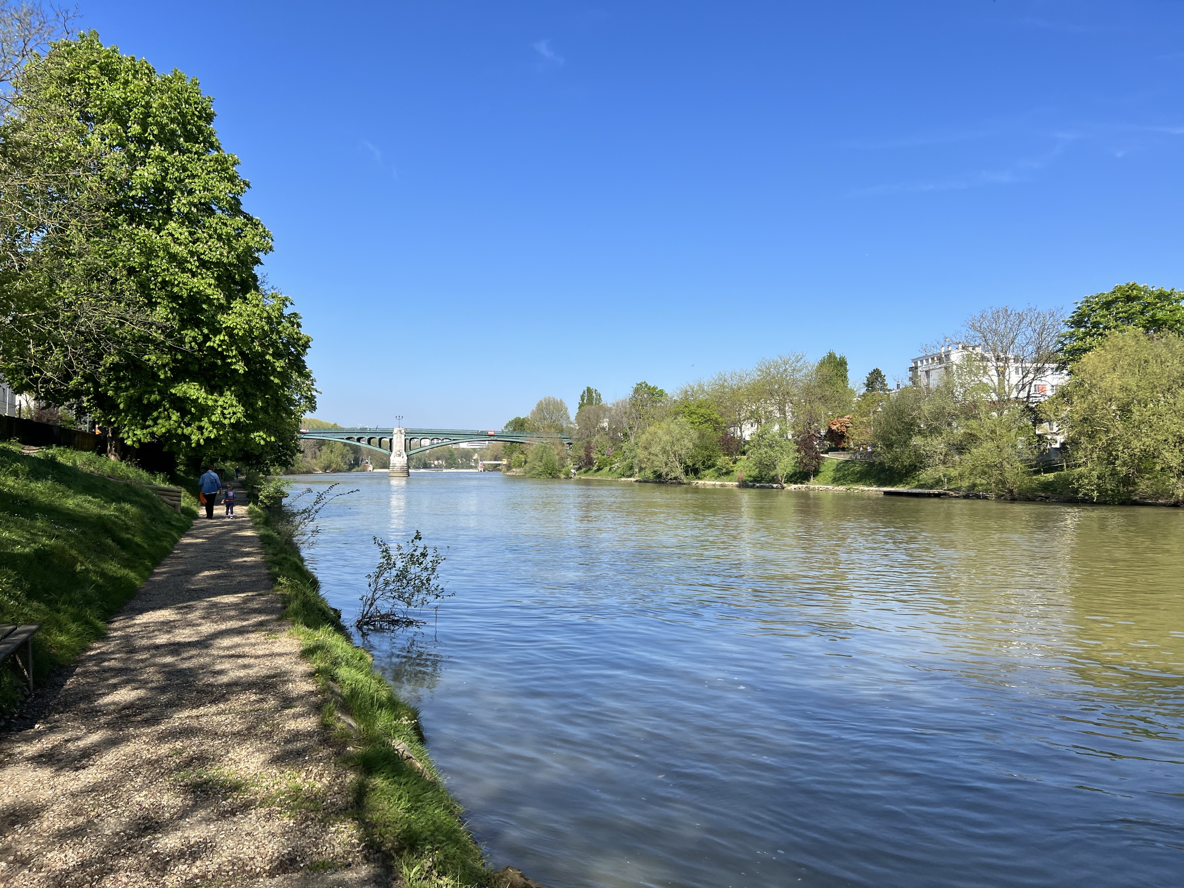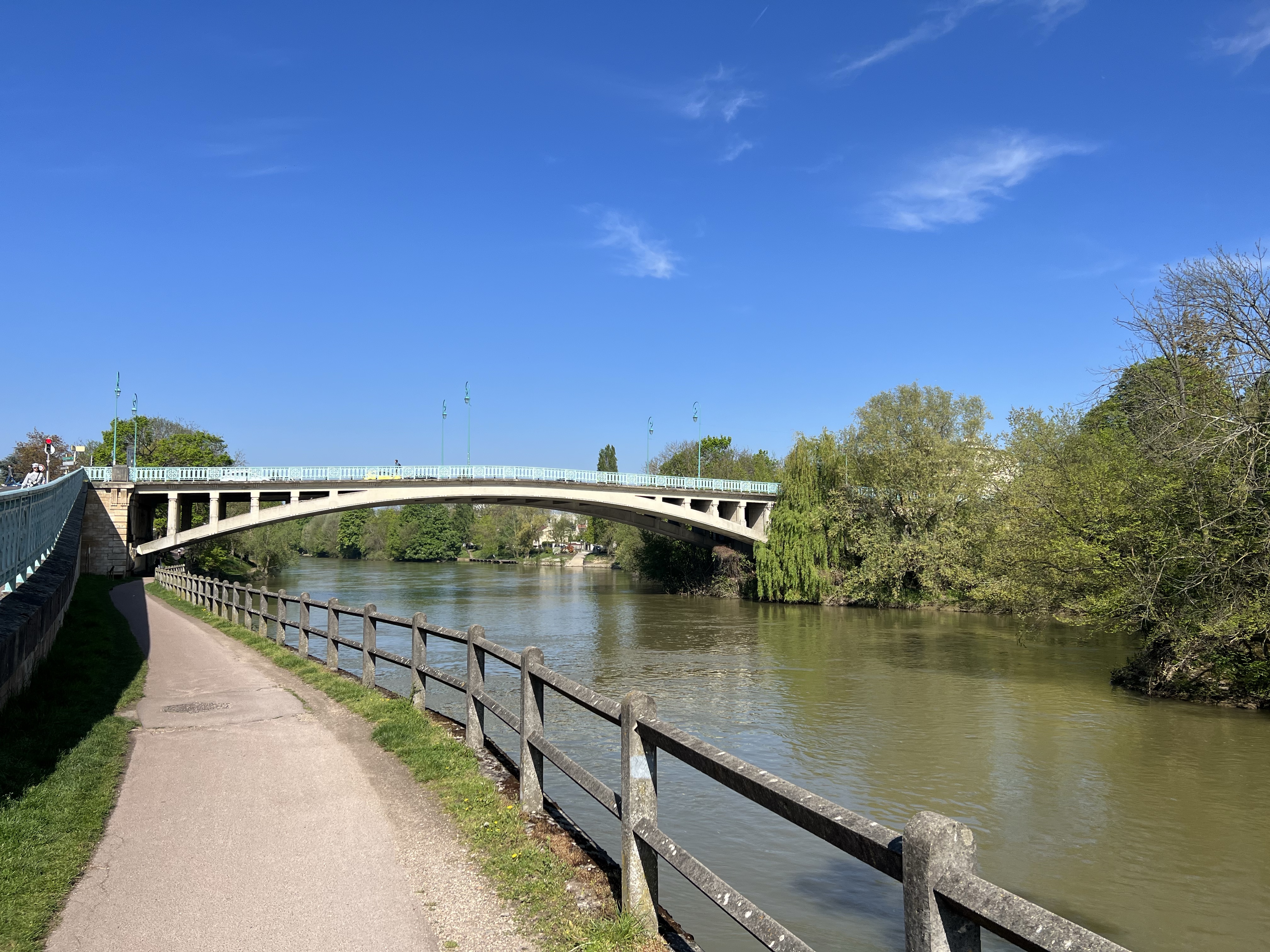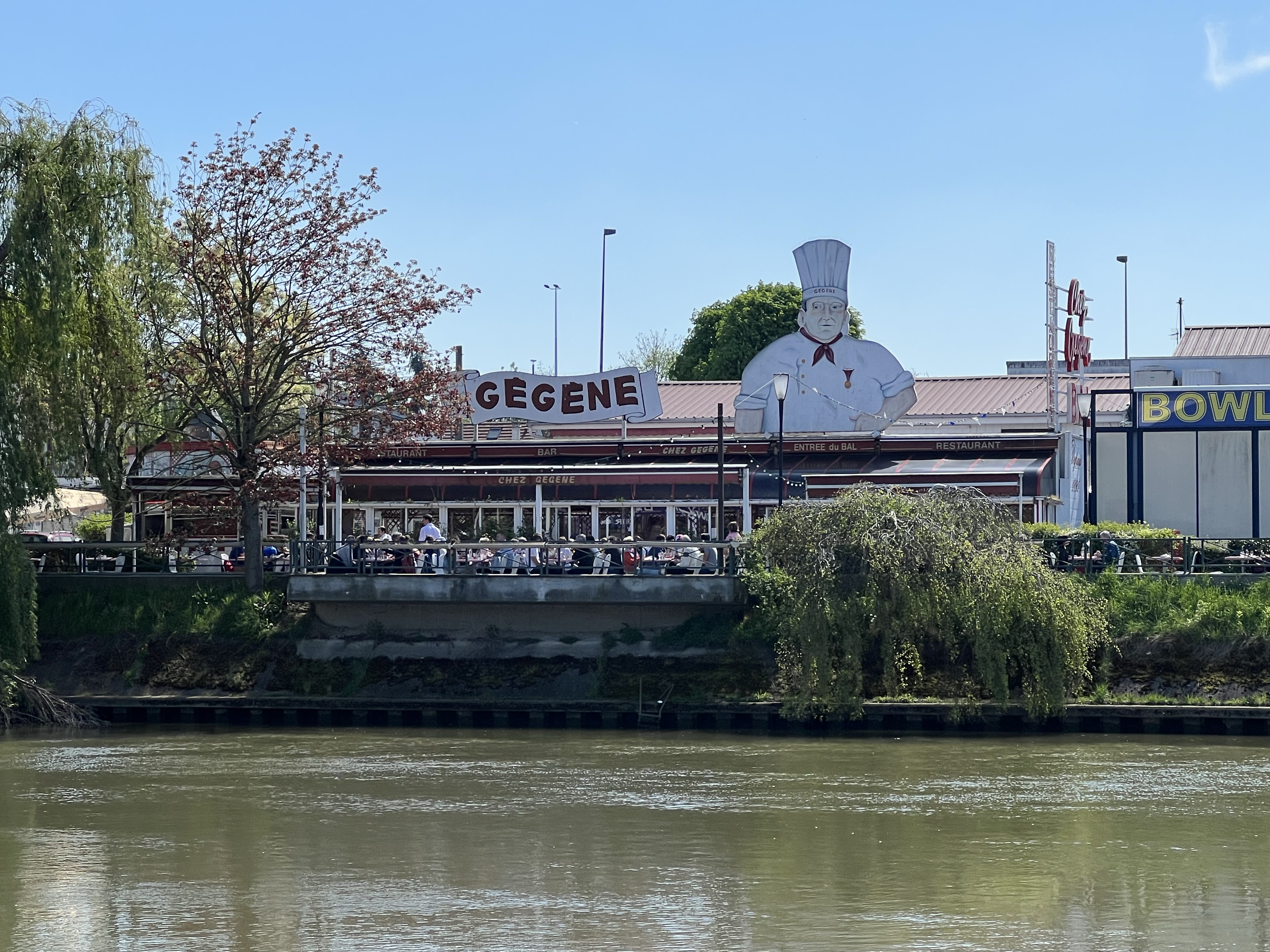 After a mornings coffee, I decided to do a walk that has long been on my list. By taking the RER A to Champigny, way east, you can walk along the side of the river Marne, and there are numerous places where you can bail out at an RER station. It took about half an hour from Chatelet, and my Navigo Decouverte pass covered the fare. Lovely walk along the river and stopped for lunch at a classic riverside place. Eventually ended up at the outer edge of the gardens near Vincennes. See photos, and here’s a weblink with directions for any of you who might want to do this: http://anhourfromparis.com/an-autumn-walk-along-the-marne-with-two-surprising-detours
