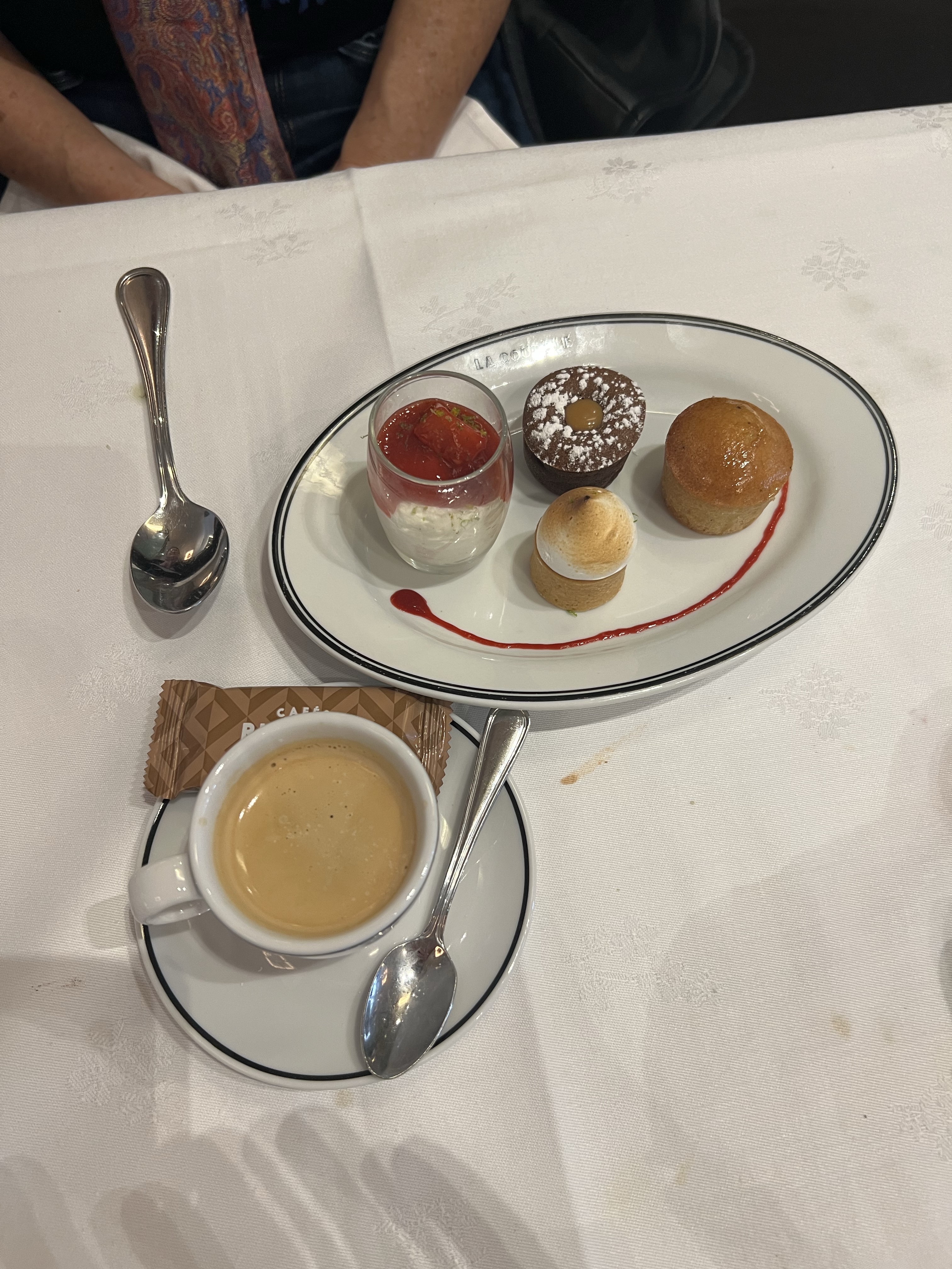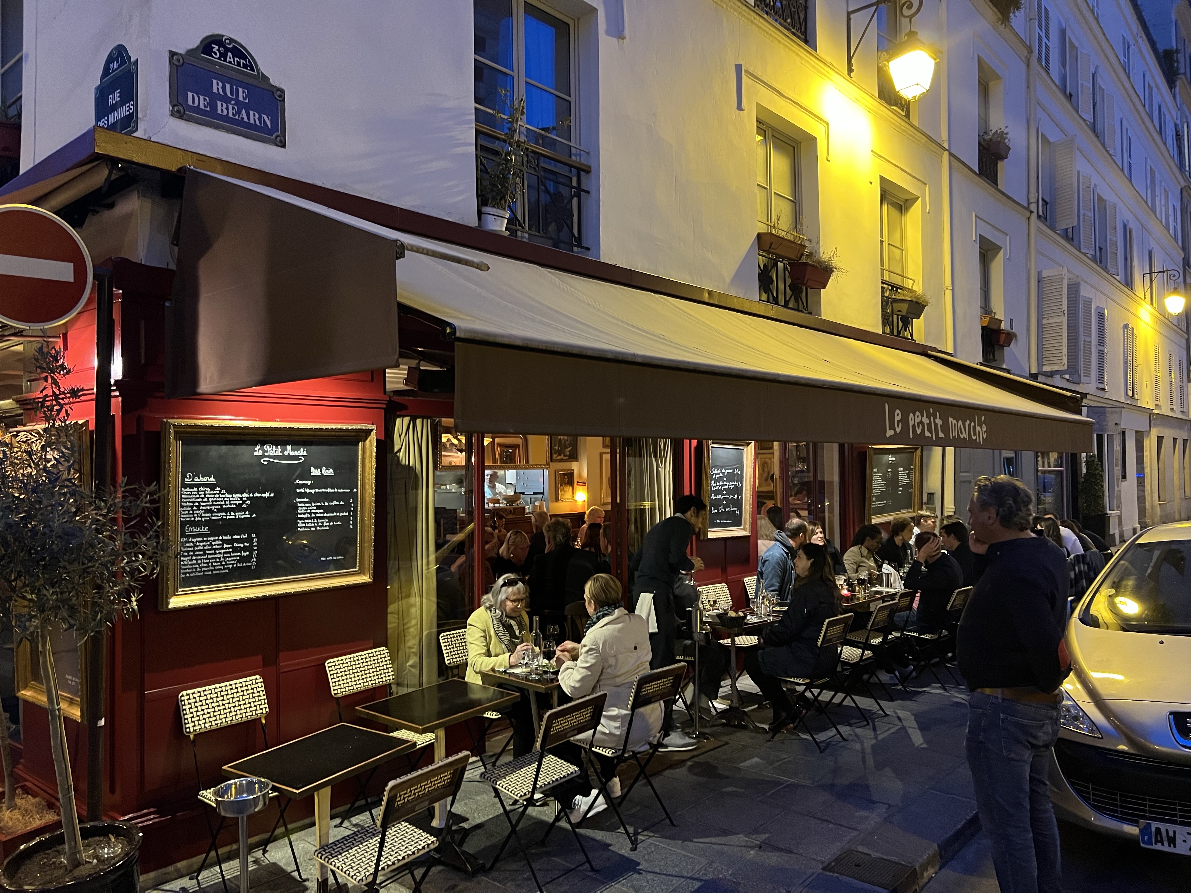 As many of you know, to re enter the USA at this point you need a covid test taken one day before your flight. I brought the BINAX now AG card proctored tests for us, and took mine more or less without incident the morning before departure, L took hers as well and we were good to go. Out the door at 6:15am, taxi stand a block from the apartment and, wow out at the gates within about 30 minutes of arrival at CDG, this is record time. AirFrance lounge would not admit me even with my fancy new AMEX card, so coffee in the terminal. Luckily I knew our documents needed to be verified at the desk before boarding, mine were fine, but L apparently hadn’t updated her computer or phone to Paris time and her test then showed 04/26, since Hawaii is 12hrs earlier. In spite of explaining that it was just a time zone issue the gate agent was having none of it. Panicked calls (4!) to BINAX ensued with long holds and then various redirects and elevations to Level 3 etc. The other option would have been to completely exit to the lobby and get tested at the pharmacy pre security, this was not going to work time wise. (Seems a little weird not to have some kind of testing option post security, but CDG is not one of the worlds better airports). About 10 minutes before boarding, the email finally came through with the test result shown in Universal Time, UTC, which then showed the date of the 27th, which was acceptable to the gate agent. This kind of thing is yet another reason that you need a working cell phone! A hair raising and nerve wracking departure, but we made it. Lots of empty seats, we were in economy comfort, so easy if long flight at 9 hours 45 minutes. Global entry came through for us and we sailed out the door and into a Lyft all in about 15 minutes. Anyway after looking like there was no way we were going to be on that flight, it came through in the end. Here’s some food pictures from the final dinner, at Le Petite Marche, near Pl. des Voges.