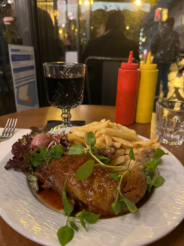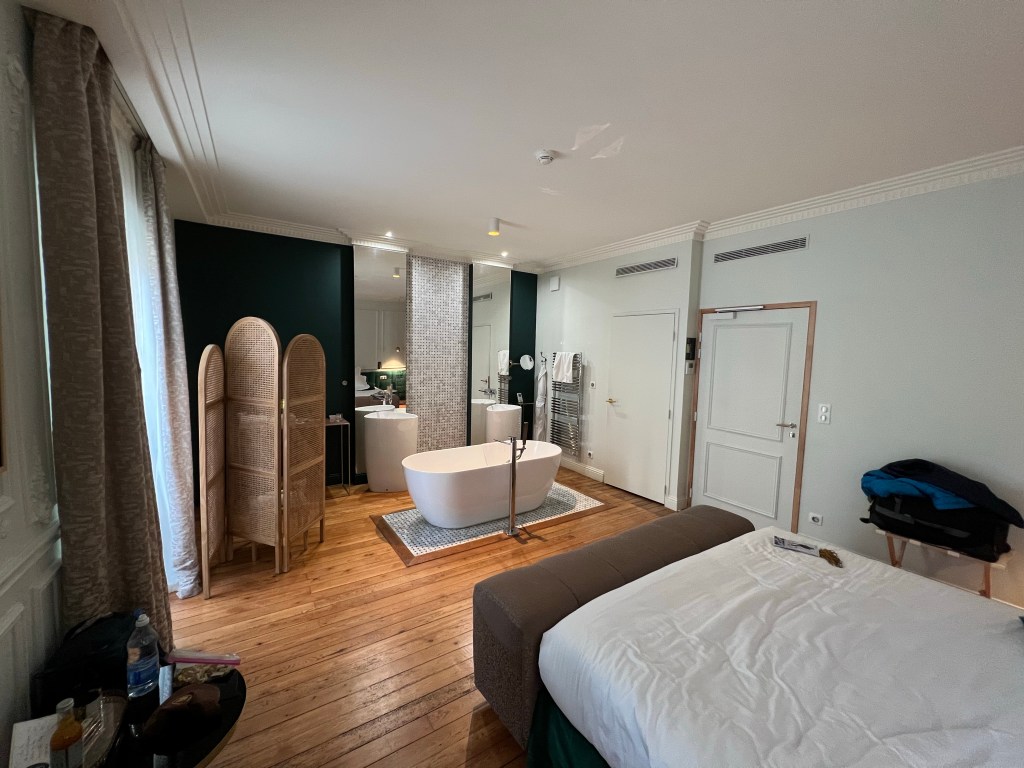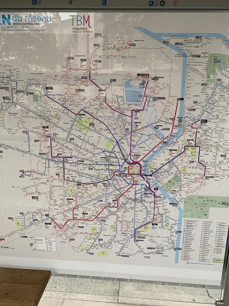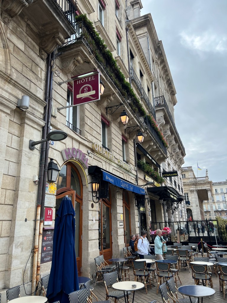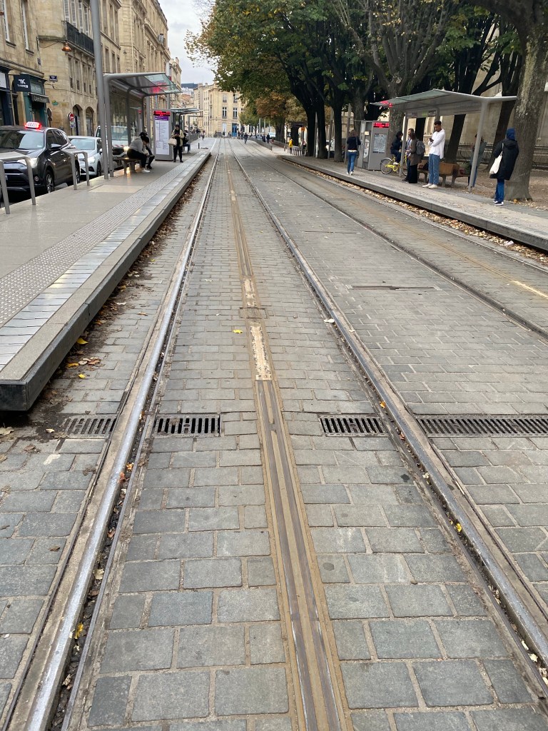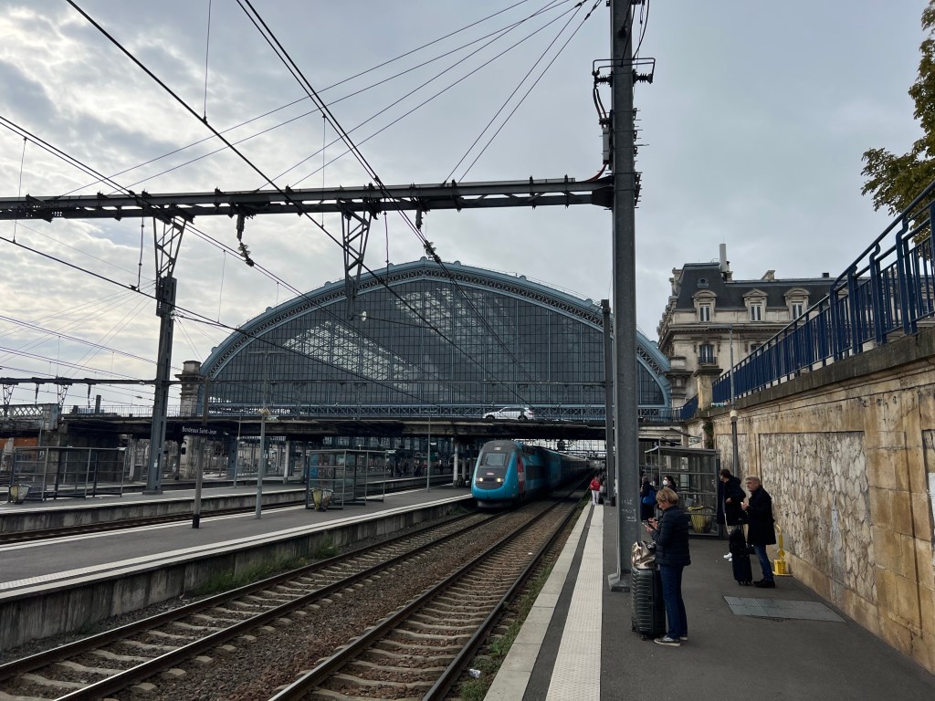Had a pleasant evening wandering around Bordeaux, with an appetizer at Vins Urbains wine bar and then some risotto on the terrace of the Intercontinental. Stayed at a somewhat fancy hotel, but apparently got the one room in the hotel with no real shower, not exactly what I was after. Nevertheless, quiet, comfortable temperature and slept well. Got up fairly early and packed and then went out to find a breakfast crepe. After that, Tram to the train station and then the super high speed train to Paris, about 2:20 to go almost 600km! 15 minutes from Paris it started raining and the forecast is for rain all week, a definite contrast from the sunny cheariness of Bordeaux. Apartment seems to be in excellent shape and is truly a pleasant and well located space. Did a load of laundry, picked up some groceries etc.
