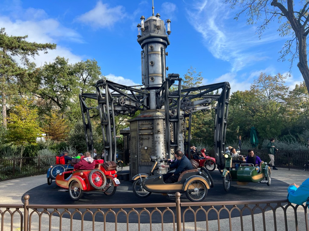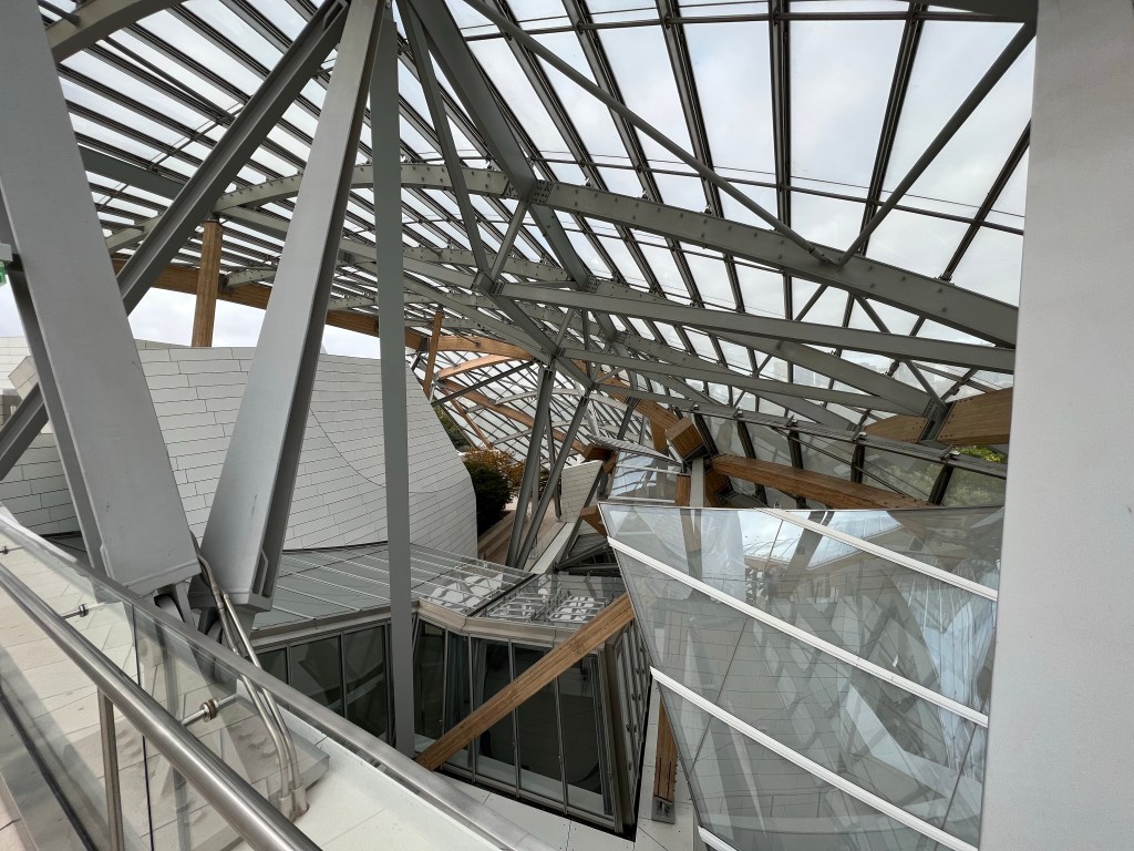 I managed to get 10:00am reservations for the Fondation LV exhibit combining paintings from Monet and Joan Mitchell. While the exhibits are interesting the star of the show is often the Frank Gehry building. It looks sort of like a fanciful sailing ship. I’ll let you judge the paintings, it is an interesting juxtaposition. After the museum visit a walk around the Jardin d’Aclimitissation, a combination garden, park and very old school classic amusement park type venue. Lots of sort of vintage rides, being enjoyed by kids of all ages. After a long walk and exploration, we landed on a classic neighborhood restaurant for some shellfish and other goodies, Sebillon near Port Maillot. Finishing lunch it was back home to regroup and then dinner with friends at Le Petite Marche, an excellent restaurant of Pl. De Voges run by the same ownership as Chez Janou. (Since Emily in Paris, forget about getting into Chez Janou).