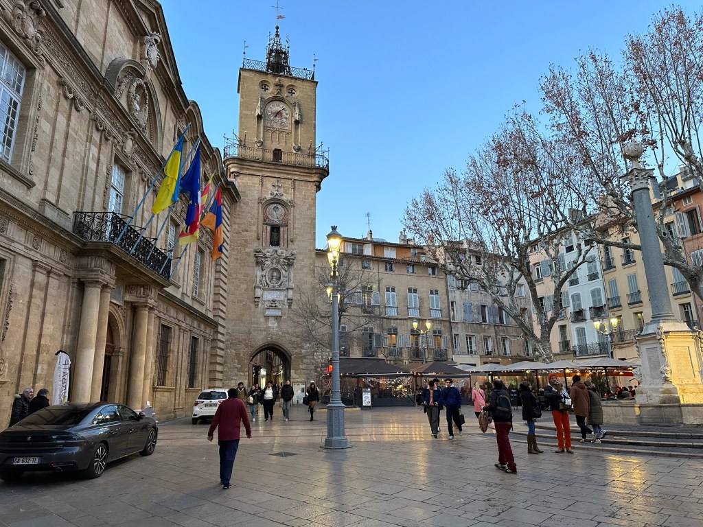 A long return to France today with 10hrs. Of Delta flight followed by 4 Hrs. Of killing time at CDG and the 3.5 hrs on a crowded train. But, ended up in Aix en Provence for the first time and just as the sun was setting. Interesting light and a beautiful place. Famous for being where Cezanne did a lot of his work. AirBnB is nice, top floor corner studio with lots of double pain windows. That’s good because it is really chilly outside. In the 30s this evening and predicted to have a low of 24f tonight! I did a preliminary walk around, and there are lots of little restaurants and cafes etc. will head to the visitor center tomorrow, but with only 2 full days, will stick to in town exploration including the Cezanne museum and whatever markets are going on. One note if you do come here, the TGV station is quite a ways out of town, there is a shuttle bus that goes back and forth, but I was pretty much done, so grabbed a taxi in. Aix has a population just short of 150,000 so a decent sized city.