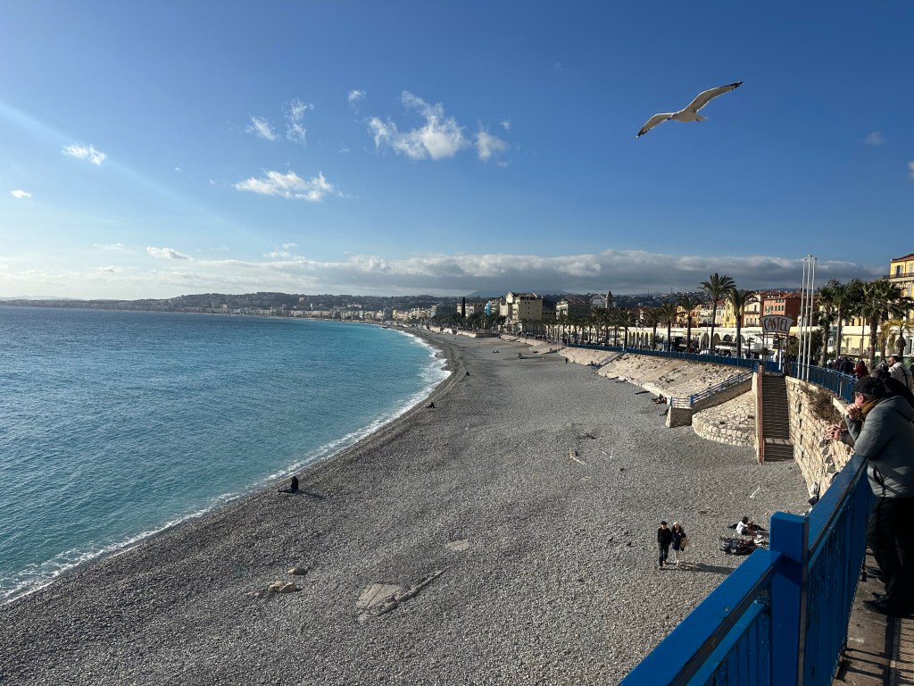 Looks cold—-nobody is sitting on the beach or in the water—–but the sky is blue and the sun is shining, so enjoy this Mediterranean winter weather.