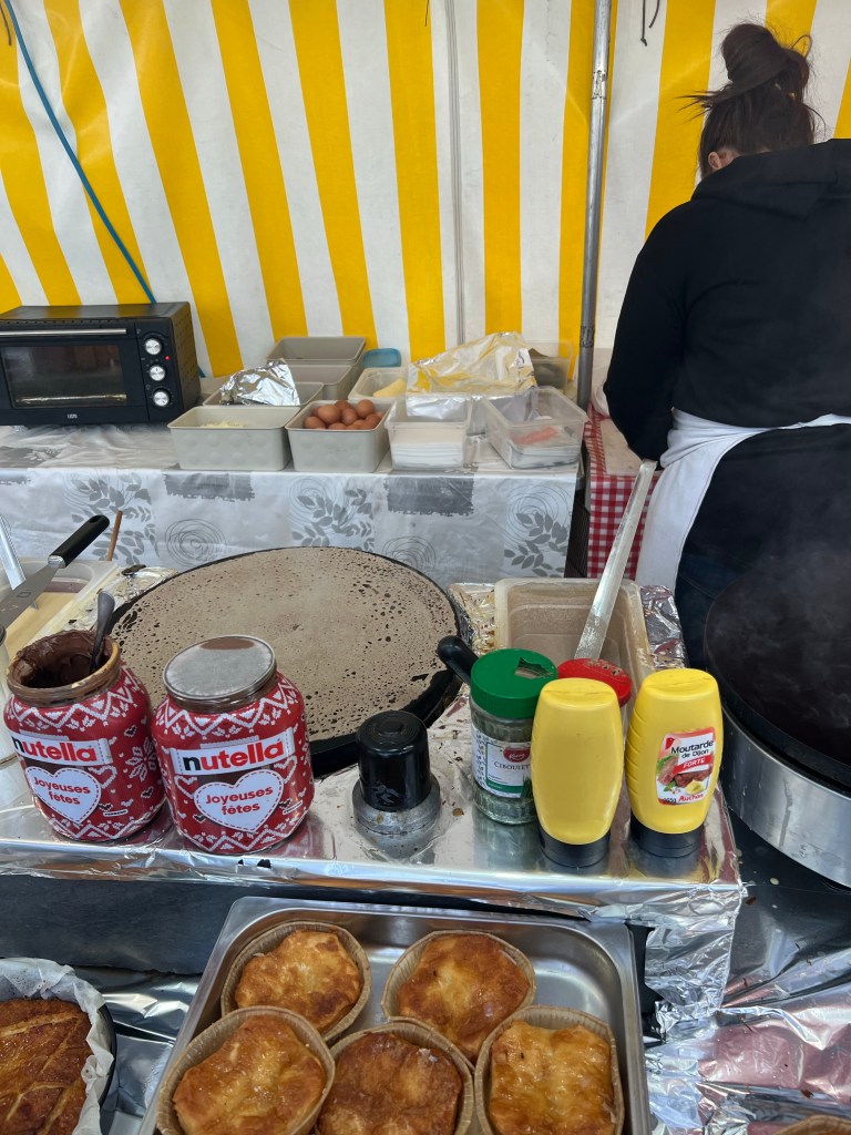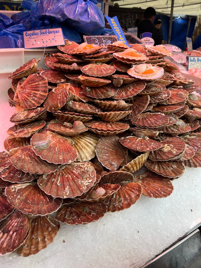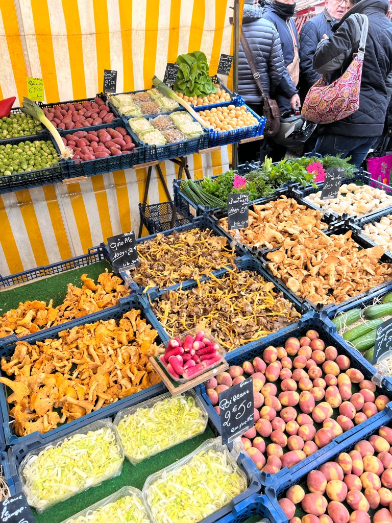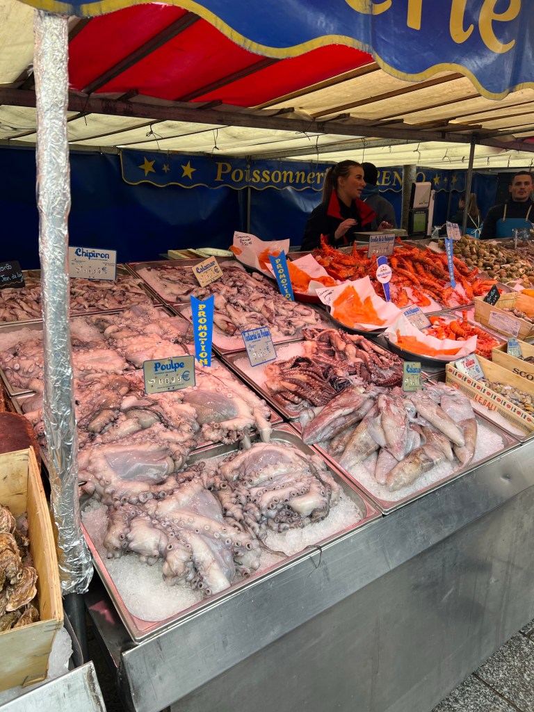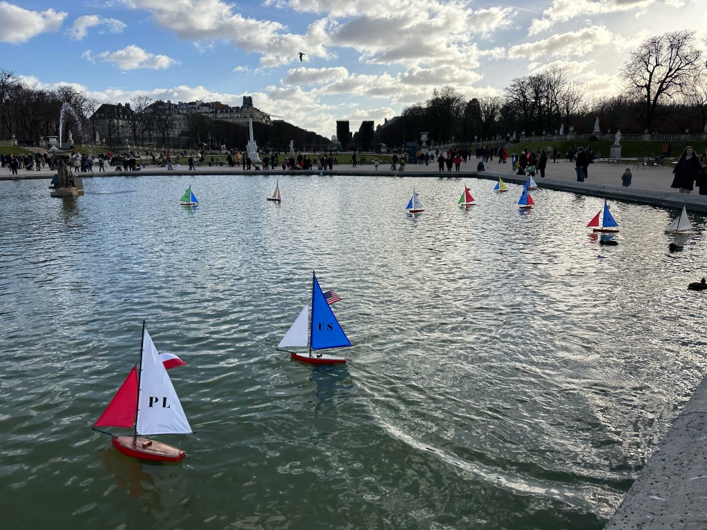 Off to the traditional Sunday Bastille market today, one of the bigger open markets in Paris and conveniently only one metro stop away or a 15 minute walk. One of the best crepes I’ve had comes from the Breton booth there, and even though my stomach has been out of sorts for a few days I decided that I should have one. Sausage, cheese and a little mustard….yum! Continued on to John R. Favorite wine purveyor and sure enough he was there as well. After that, headed rapidly home for a quick pit stop and then over to the Tuileries for a stroll followed by the Luxembourg gardens and a cup of tea at Deux Magots.