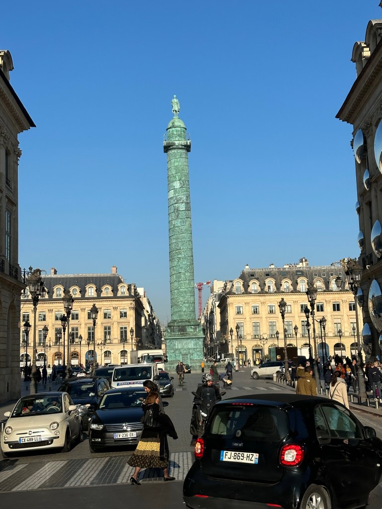 The best thing about Place Vendome is the victory column in your picture. Atop it is, of course, France’s equivalent to Mussolini, Stalin, Hitler, and Putin, none other than Napoleon himself. What I didn’t realize when I was a student in Paris —–too busy with school & girl friend is my excuse—–is that the column itself, with its carved relief spiraling upward, is a copy of Hadrian’s victory column in Rome, depicting scenes from his conquest of Dacia, present day Romania.