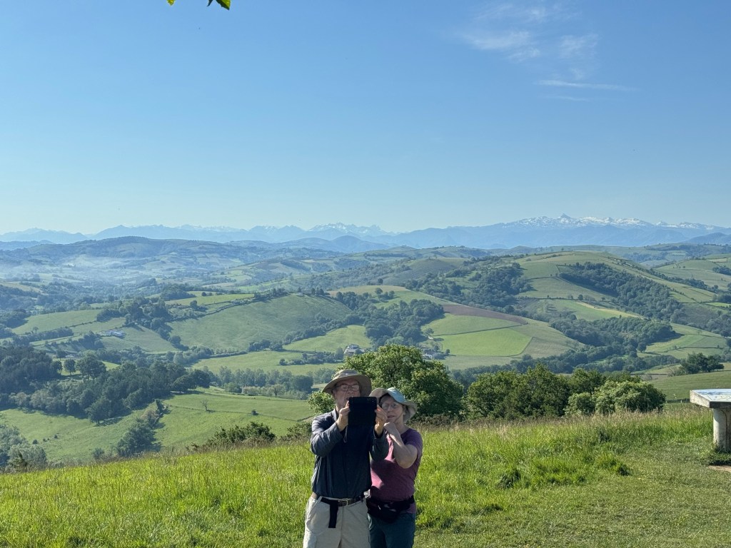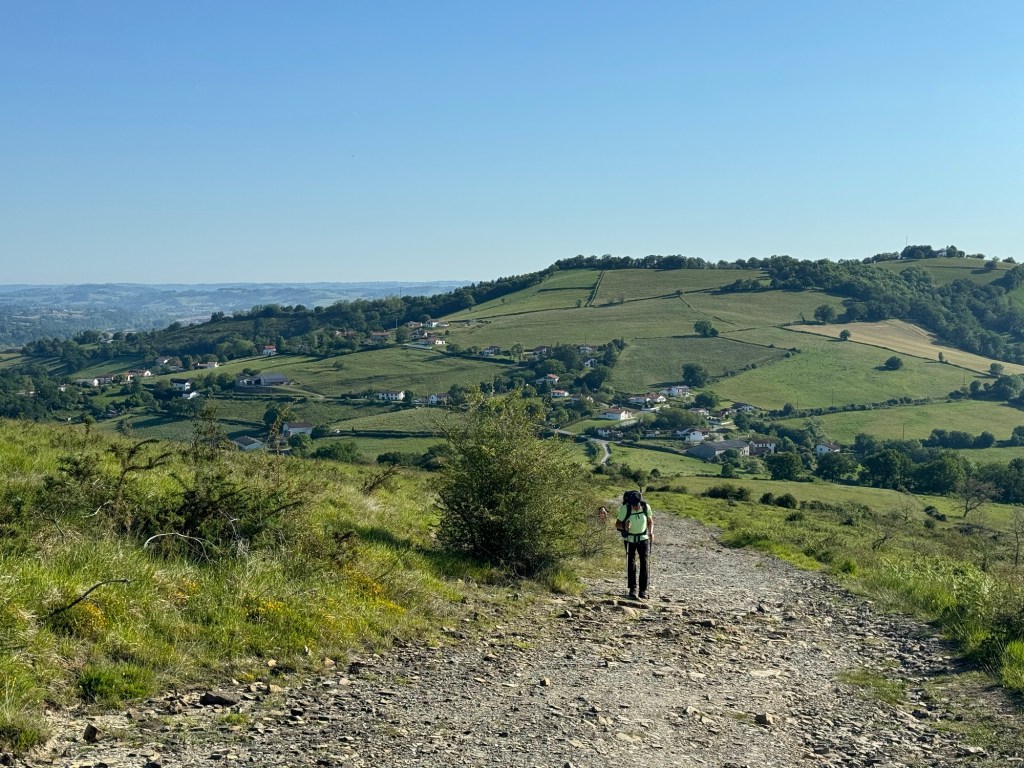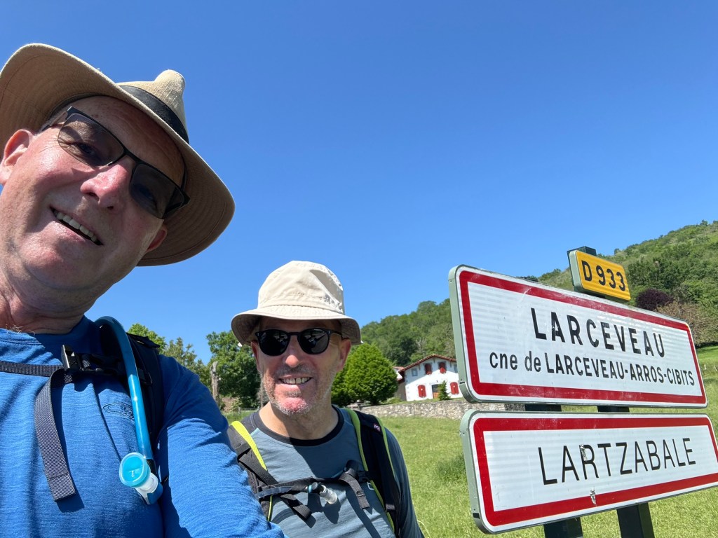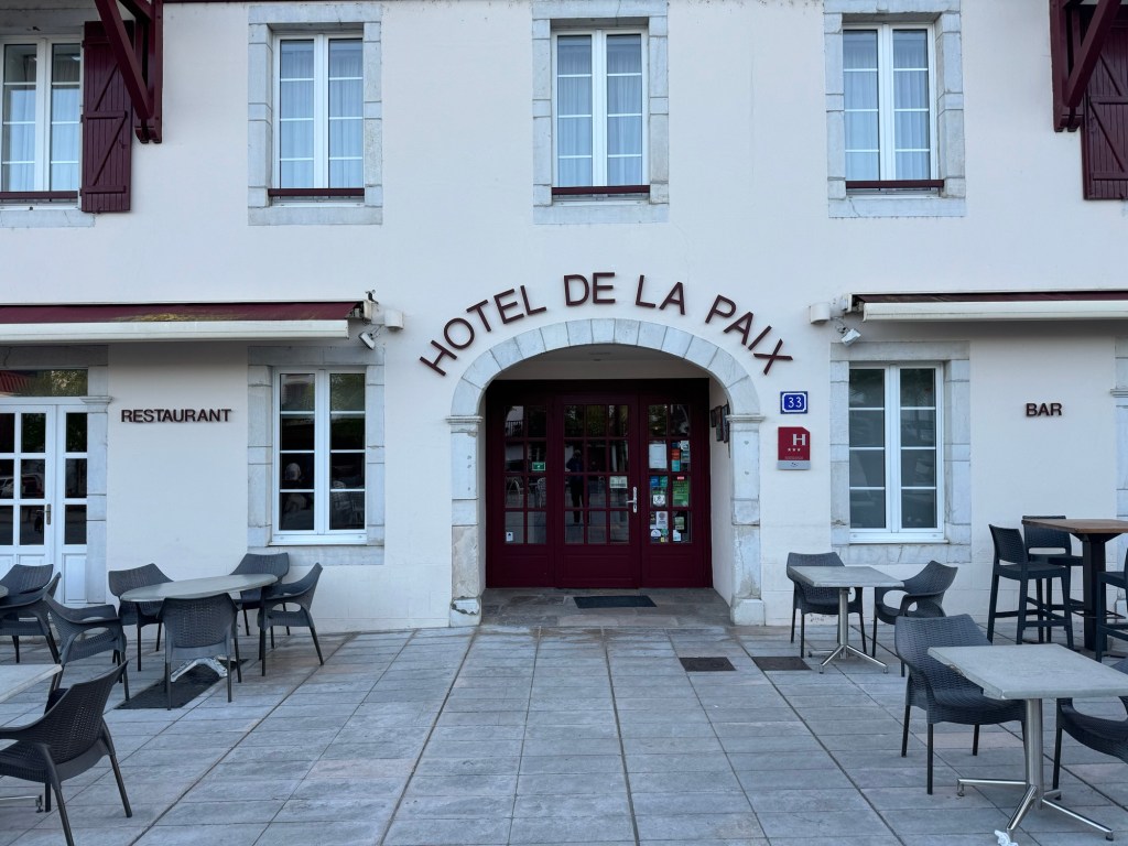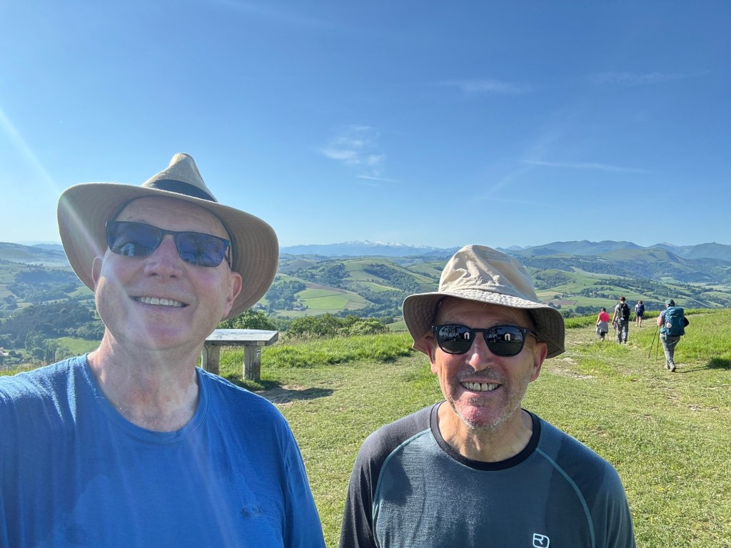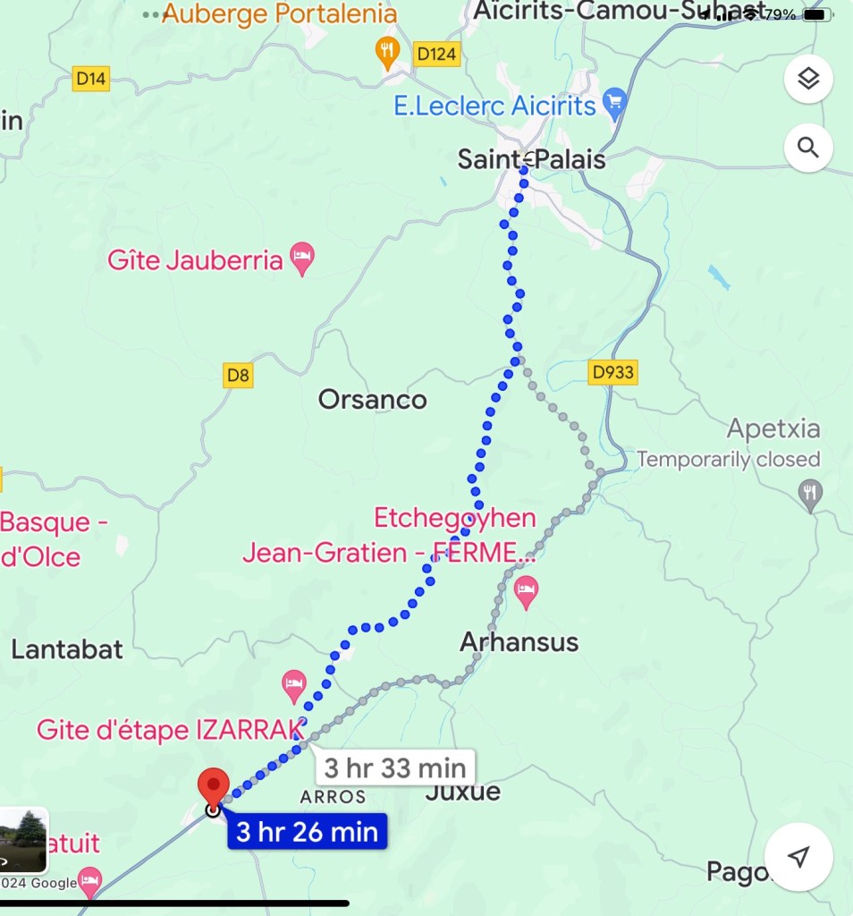 Very pleasant evening at Hotel de La Paix in Saint Palais. A nice town with a central plaza. Good dinner, shared with Daniel, a physician who has been walking the same route and generally staying at the same places. Got an early start today as it was going to be hot. After about 45 minutes there was a gigantic hill that took most of an hour to climb. Another pilgrim, Eric, joined me for most of it and it was pleasant to have someone walking the same pace and some conversation. Turned out he was a McDonalds Franchisee and had 8 of them in France at one point. Anyway after a solid walk we arrived at our hotel shortly after noon, and tucked into a fairly solid lunch after that, our rooms were ready and by some luck the baggage had been delivered. Nothing like a shower and a nap on crisp white sheets to make for a nice afternoon! Tomorrow to Saint Jean Pied de Port, where most people would be starting the Camino Frances, where I will be ending this walk. 21,000 steps.