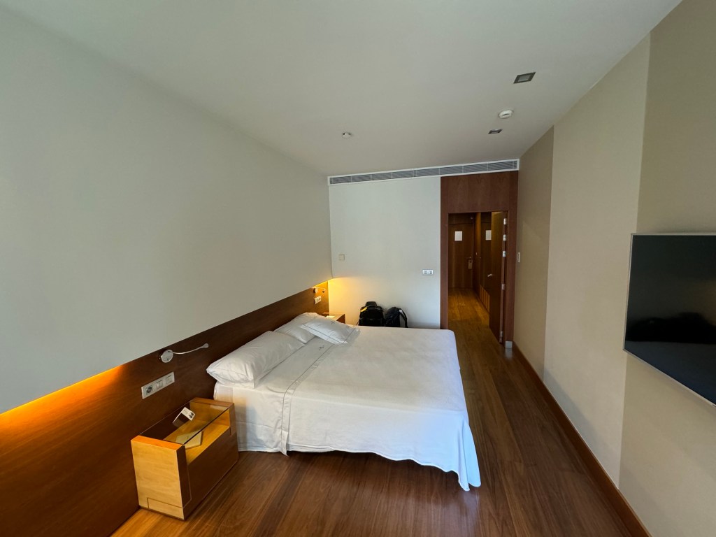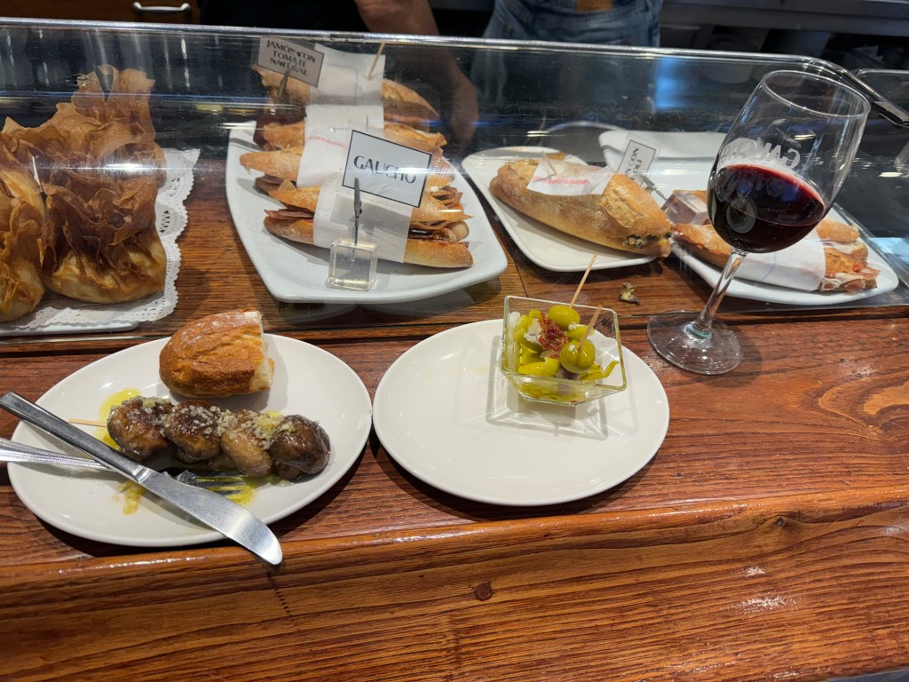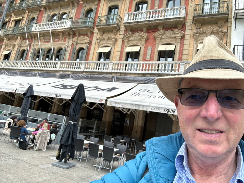 Got quite the early start today as I wanted to leave the AirBnb in pristine condition. Although it was small, it was very well done and the Murphy bed with integrated couch worked well. Probably would have been a little tight with two of us, but for a solo traveler it was perfect and very economical. I drag my stuff down to the Halte Routiere, the bus stop and got on the Blabla bus to San Sebastián. Fortunately there was plenty of time to make the connection as we were a good 25 minutes late on a 40 minute trip. Switched to another bus and then about and hour and half to Pamplona through the most beautiful country of rolling hills. Looked almost like Vermont. Hopped a taxi out of the Bus station to my hotel. Let me say that I’m not really a 5 star hotel guy, but this one was on sale for a great price, was right on the main square and Hemingway used to stay here. I think the shower stall is almost as big as the apartment I was staying in last night. Anyway, room not ready, but they took my stuff and I immediately launched into a basic tapas crawl, eat a few things, drink a glass of red and then move on the next place. Spain is so much more relaxed around food and food culture than France. Pamplona has a wonderful feel of vibrancy, but is car free in the center. Spent most of the afternoon walking around and revisiting where I came into Pamplona for the first time through the French gate, on my camino in 2014. By some odd coincidence, Nancy Reynolds, who at the time ran an outfit called “Just Get Me Started” is here guiding a group. We had plans to Tapas crawl later, but she has too many moving parts, so will visit I tomorrow.