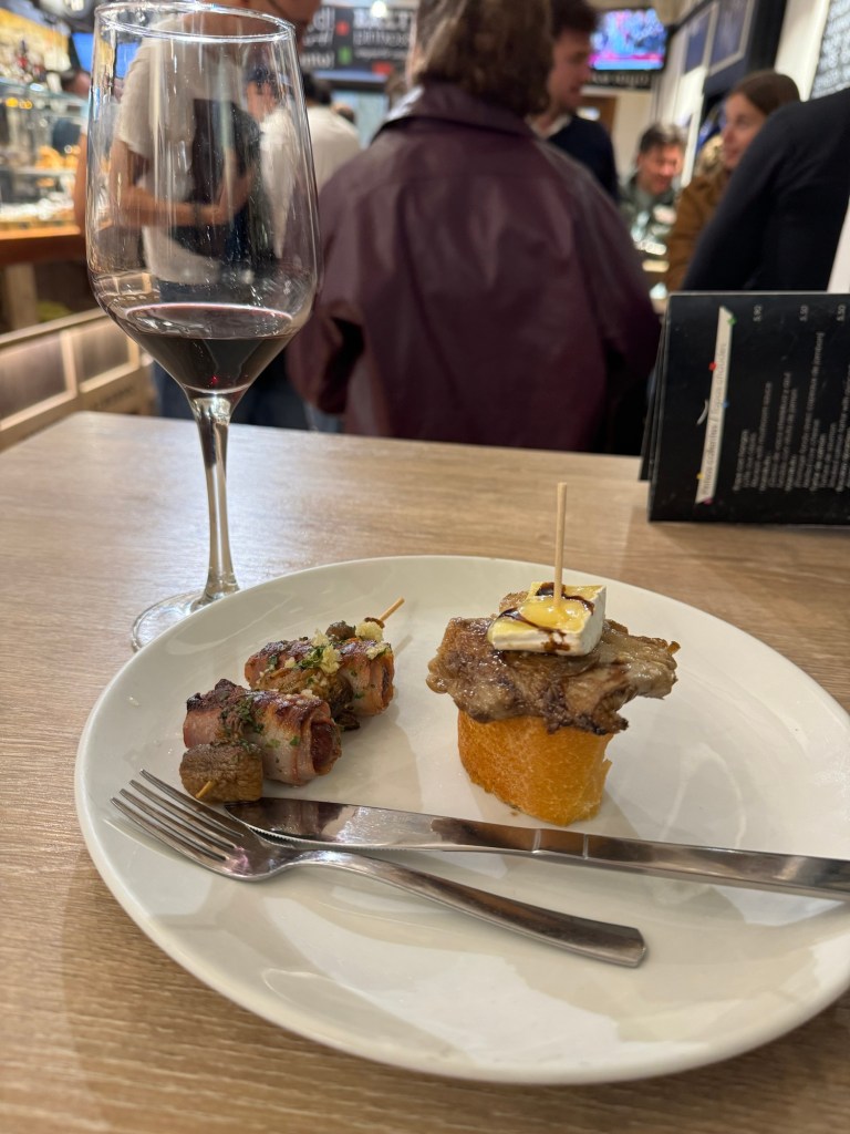 San Sebastián has a big hill at the top of the old town with a fort, museum and chapel on the top. So, for today, decided to climb to the top. First headed to Simona a nice coffee shop and when I came out there was huge running race going on with 1000s of people running by. Managed to skirt that and make the climb. After descending it was time for a lunch snack, the place I ended up near my hotel had Albariño for 2.40 a glass and a free serving of paella came with it. Can’t really argue with that. Took some down time this afternoon as was dragging a little, then out for a few pinxtos for dinner. As usual, started raining late evening, but it does seem to pass in about an hour. Off to Bordeaux in the morning.