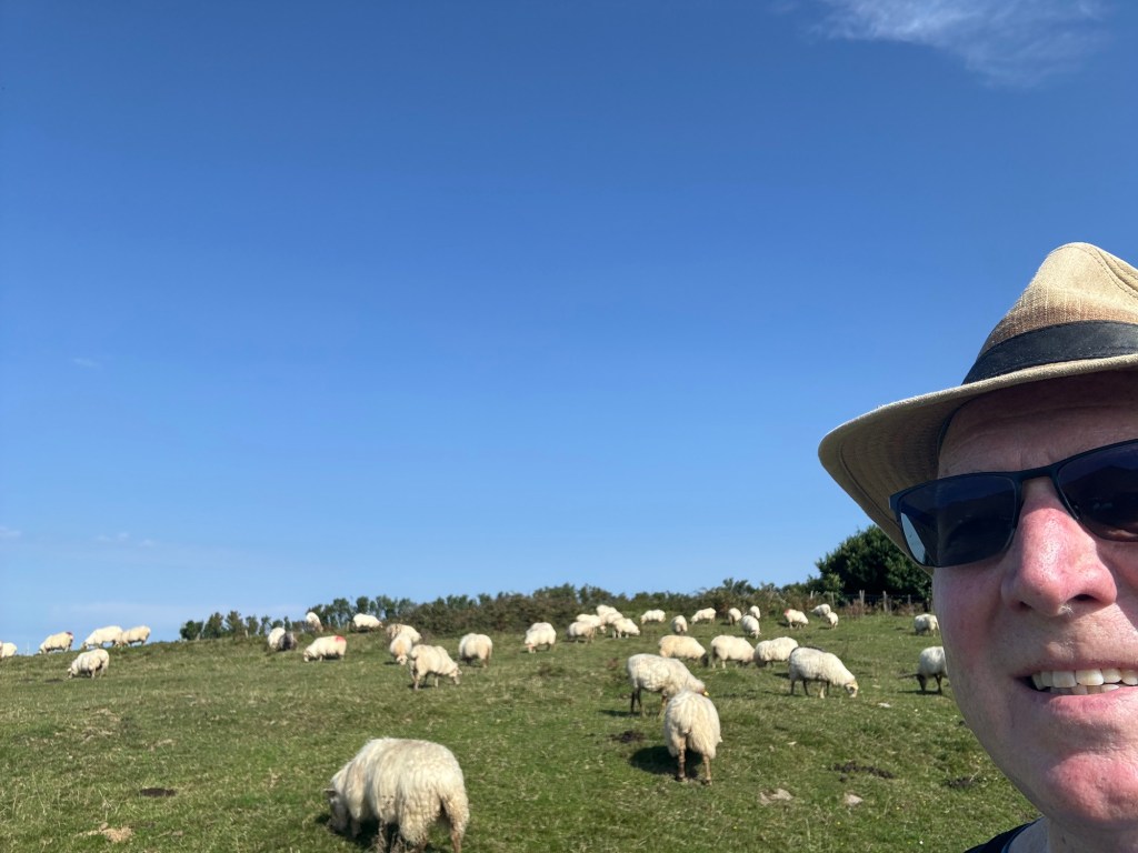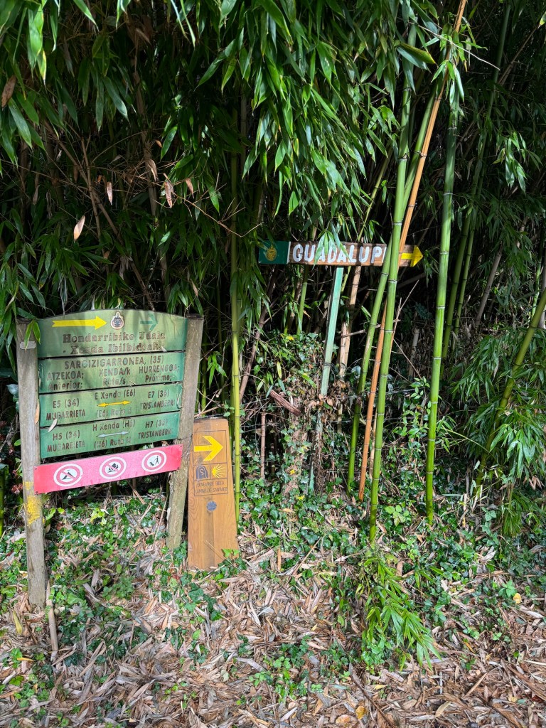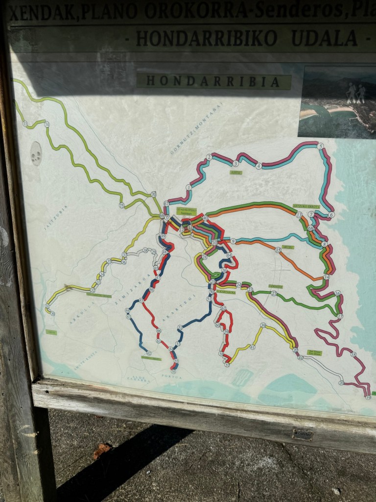 So, the plan was to spend a few days in San Sebastián using it as a home base while hiking the first two legs into San Sebastián and then continuing on to Bilbao. Woke up early this morning and took the bus to the town of Irun, which is the first town across to border from France. After a coffee, found the trail and immediate steep hike up the sanctuario de Guadalupe. From there the trail option that I took, called Purgatorio, followed the top of the ridge over a few steep mountains etc. Felt like a very solid first day and I was glad to have my base in San Sebastián to return for a hot shower!