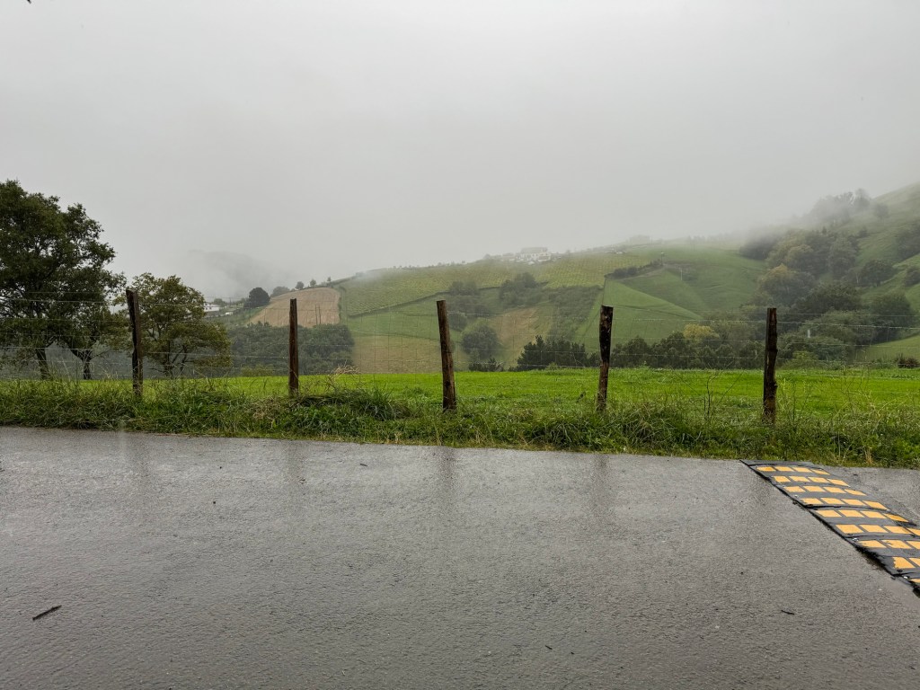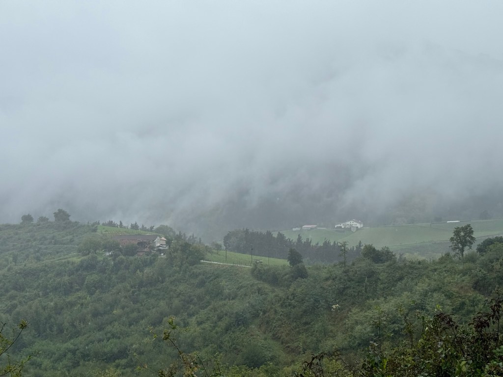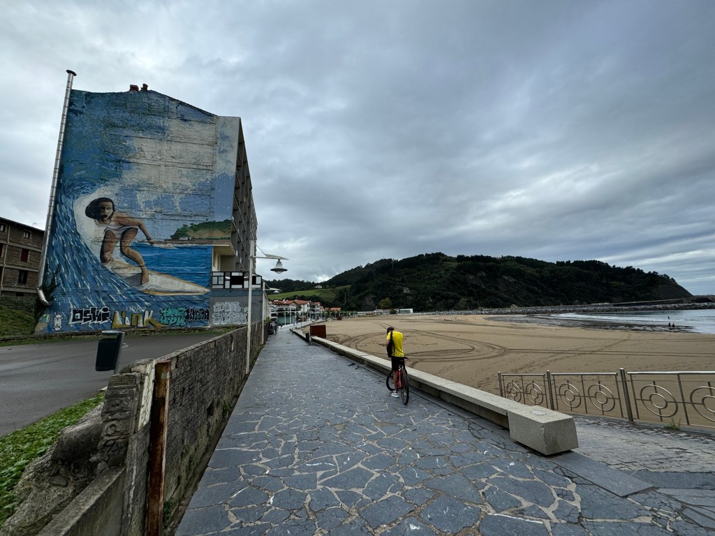 My prediction of weather change came true as I woke up to solid rain. Not super heavy, but definitely a solid rain, not a drizzle. Decided to gear up and walk in any case, supposed to be a shorter day, but with all of the ups and downs in volved, it didn’t feel like a light day. I started at 9:00am and other than a quick stop for coffee didn’t reach Deba until 2:00pm. Found a nice spot for lunch and had the menu of the day, Mixed Salad and Bacalao. Tasty and hit the spot. One thing I’ve learned about walking in the rain, is that regardless of what rain gear you have, you will be thoroughly soaked if you walk for long enough. Today was no exception to this rule. Any Goretex type rain gear is good for a certain number of hours but will “wet through” after some period of times. Waterproof boots are pretty much the same and will eventually end up wet. After lunch found my Pension and washed all of my already soaking wet clothes. Interestingly the transit remains so good in this area, I could cross the street, hop on the Euskotren and be in San Sebastain in 55 minutes! This seems to be a surf town with a beautiful beach as a central feature. The town is so steep that there are municipal elevators and escalators to get you up the hills. 22,000 steps.