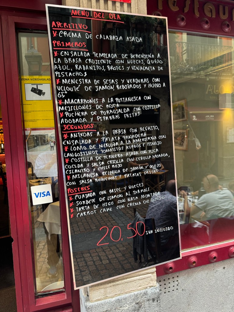 Sure felt longer than 10Km! Last night was in a funky guest house, but perfectly fine. The only restaurant anywhere near that was open was in the next town, so I took the Euskotren one stop over. Of course the kitchen didn’t open till 8:00pm even though the chef and the staff were all around. No matter, ended up with a very good Salad with Jamon, duck and goat cheese, then caught an Uber back with a couple from Canada that were staying in the same place. The walk today looked to be short, but the vertical profile showed an intense climb followed by an intense descent. Both proved to be true. Still managed to get into Bilbao by noon ish, after many stairs and elevators down into the old town area. Little bit of culture shock after being in the countryside to get back where things are moving quickly and there are lots of people. Headed nearby to the local market building which has a tapas food court area. Definitely sore from all the walking, but that was the last day for this trip of Camino walking. I have tomorrow in Bilbao, then bus and train combo to Bordeaux on Thursday.