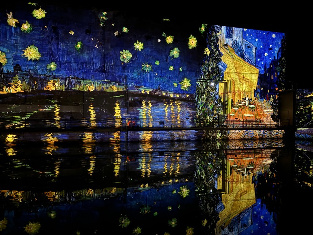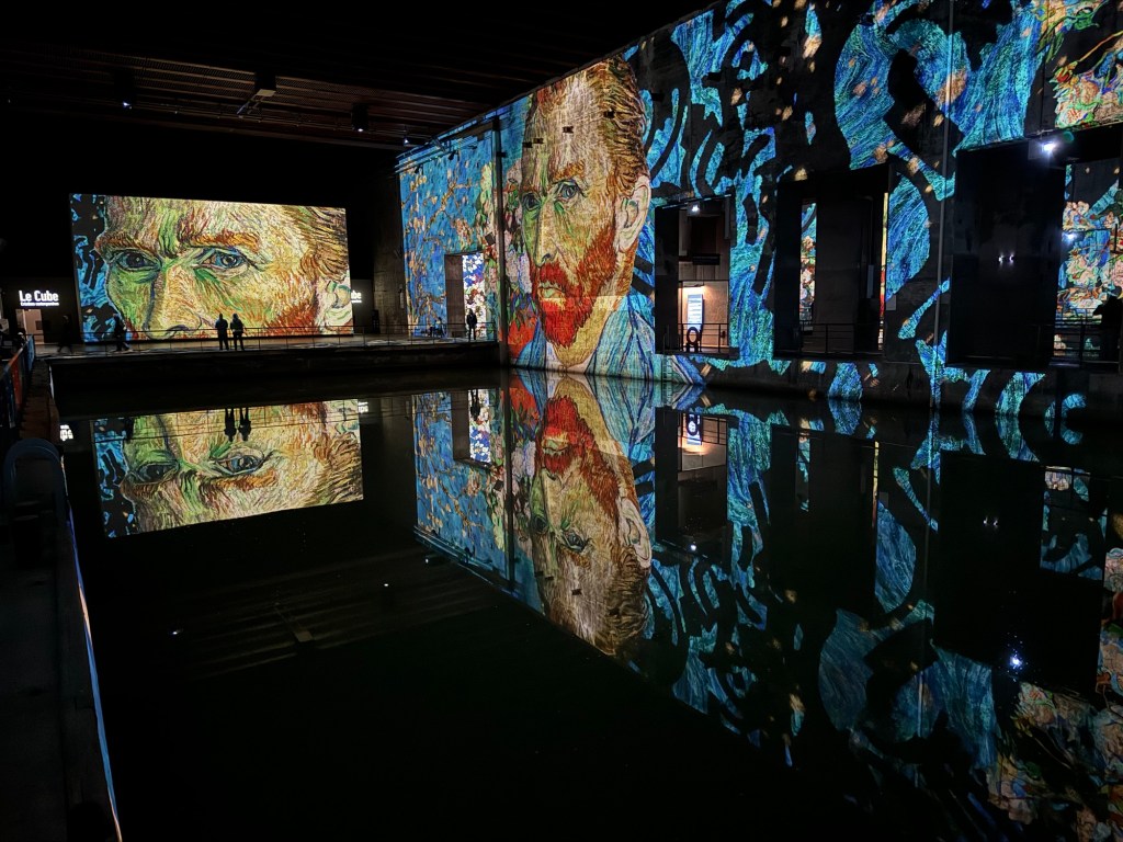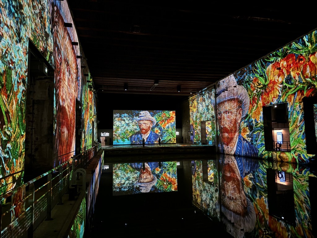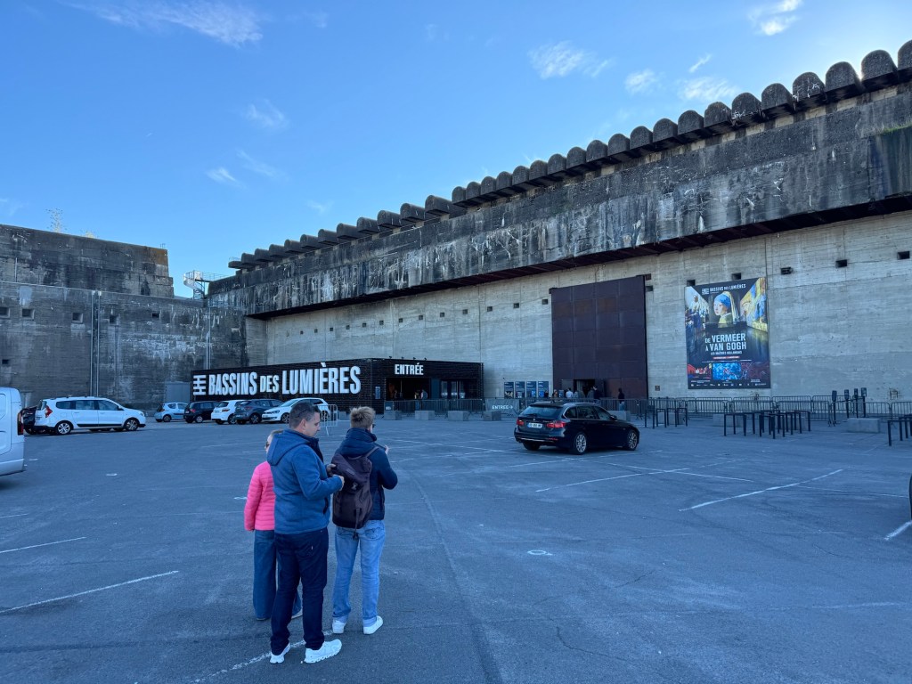 Woke up to a lovely sunny day today. Headed out to the Bassins de Lumieres. This is a WWII Submarine base that was converted into an art space. Built by the Germans to service Italian submarines it somehow survived the war. The submarine pens are still there and full of water so you can see interesting reflections in the water. The current show was Vermeer to Van Gogh. Really nice and the scale of the place is really huge. After the show it was off to the Halles de Bacalan, a huge food court near the the wine museum. From there a coffee at Eriu and then some down time.
