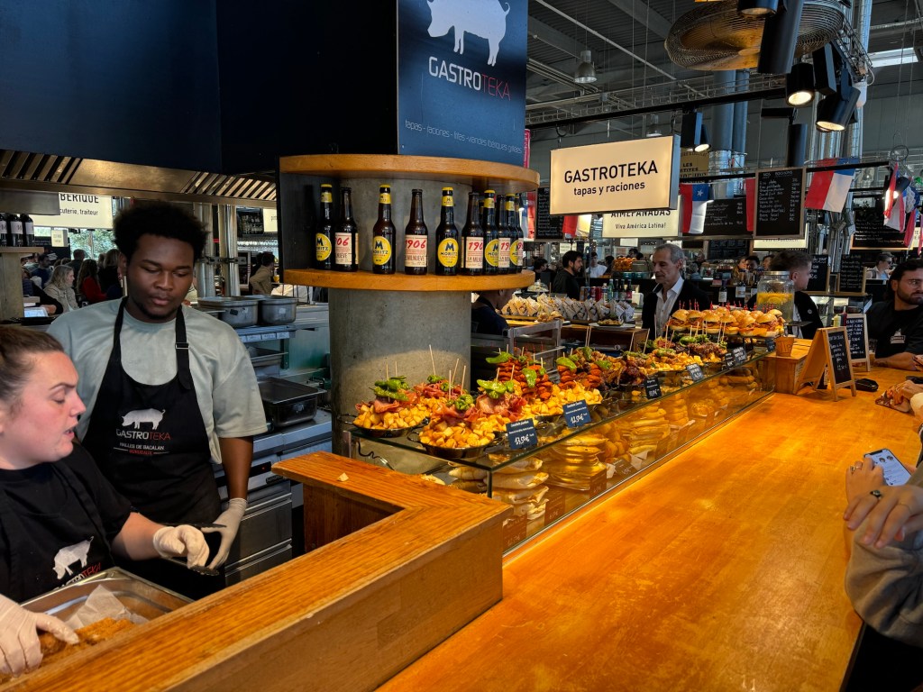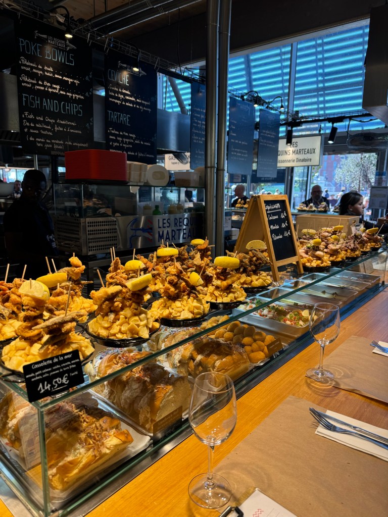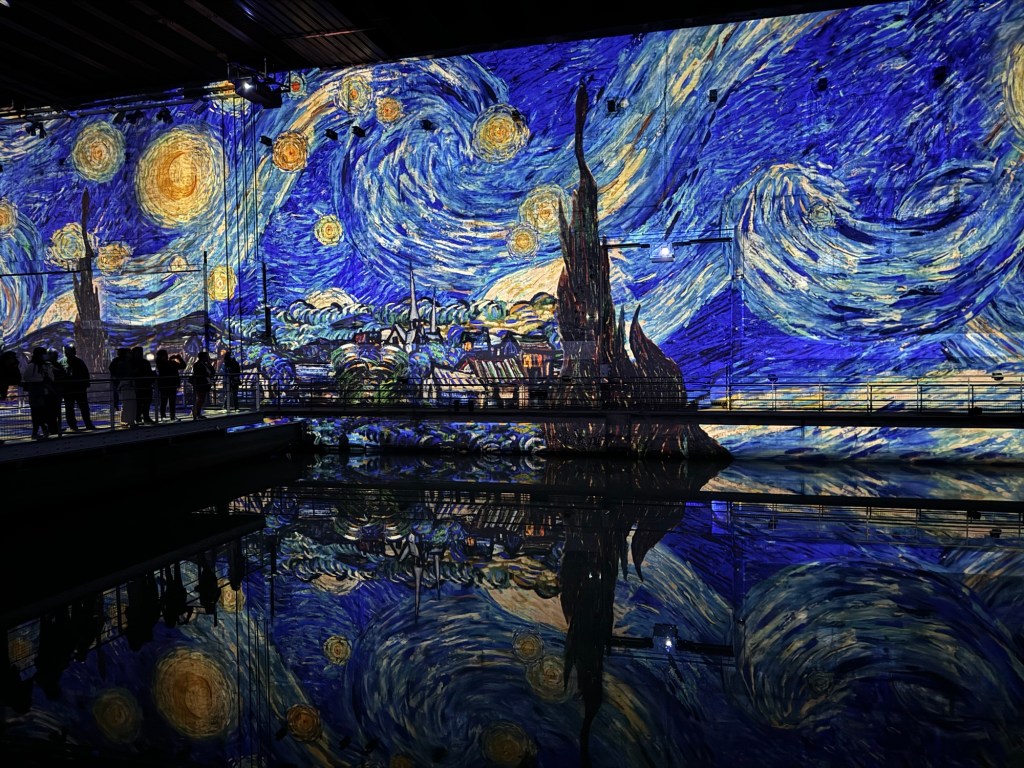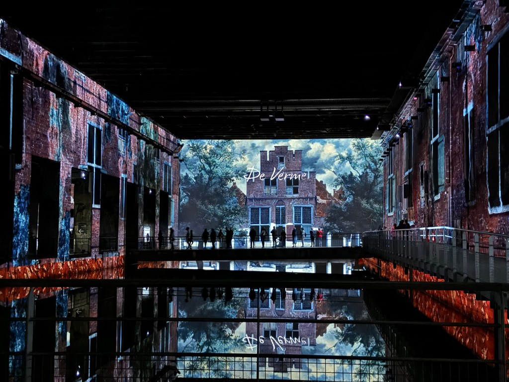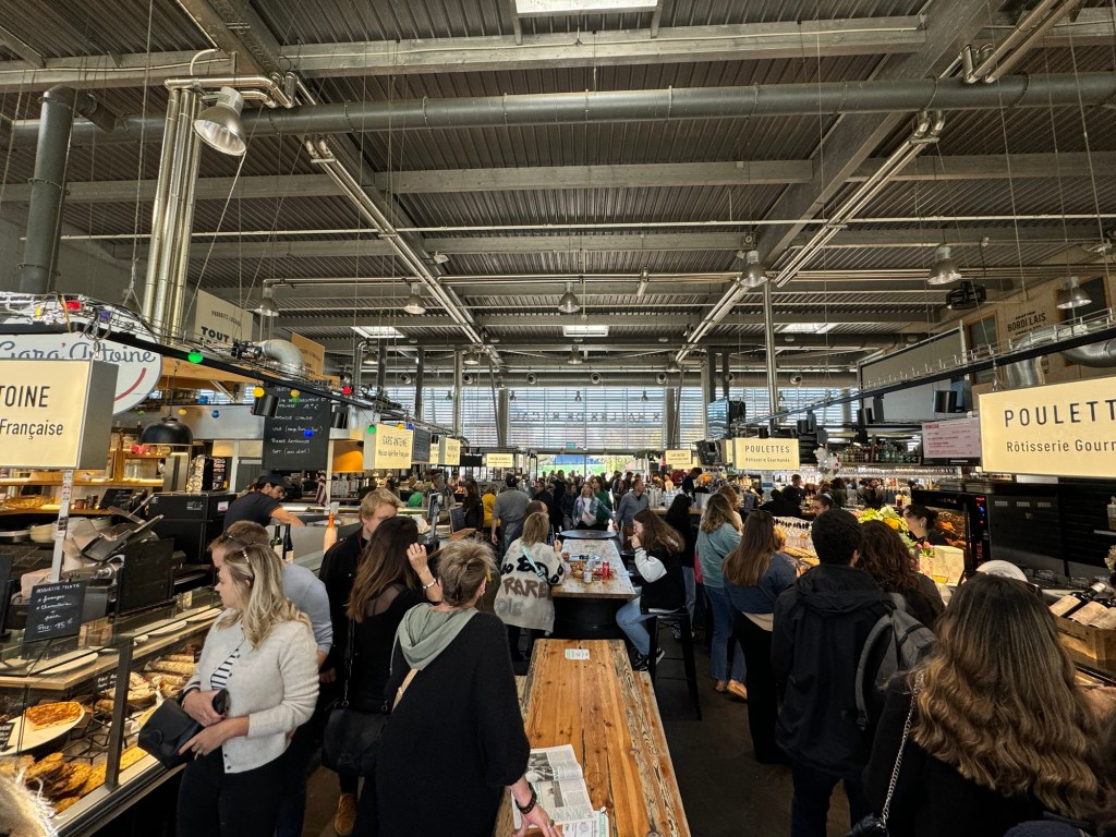 Woke up to a lovely sunny day today. Headed out to the Bassins de Lumieres. This is a WWII Submarine base that was converted into an art space. Built by the Germans to service Italian submarines it somehow survived the war. The submarine pens are still there and full of water so you can see interesting reflections in the water. The current show was Vermeer to Van Gogh. Really nice and the scale of the place is really huge. After the show it was off to the Halles de Bacalan, a huge food court near the the wine museum. From there a coffee at Eriu and then some down time.