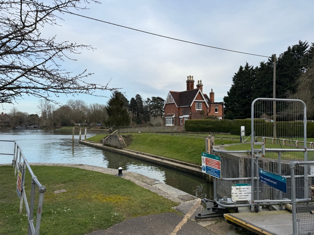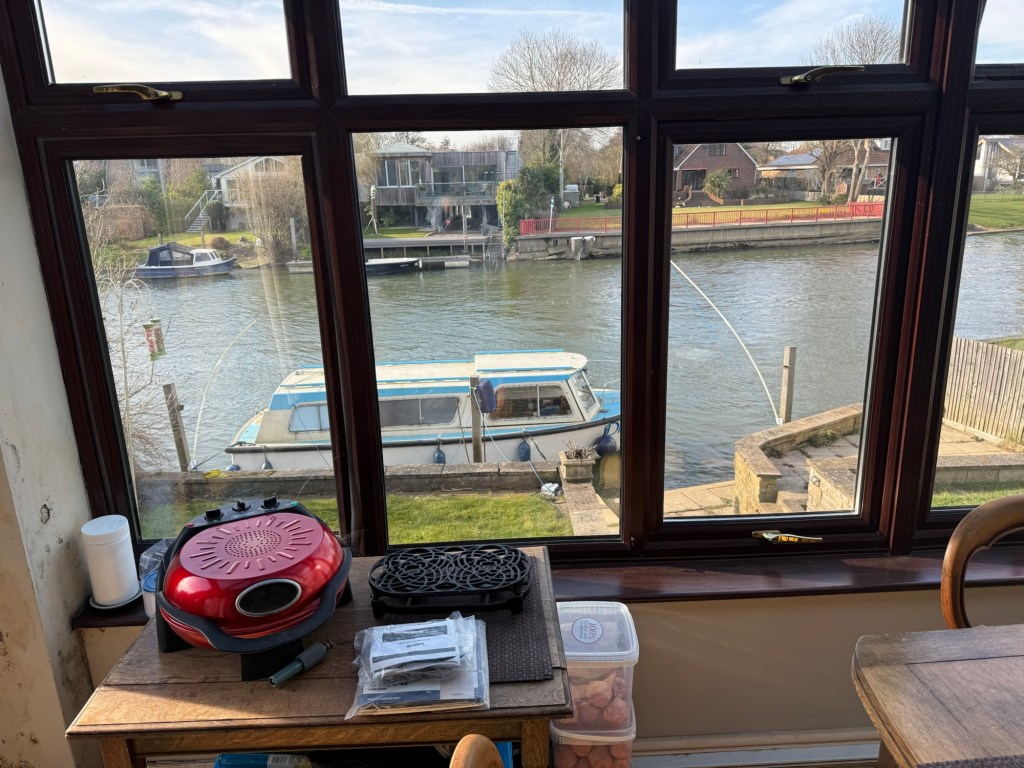 Started today by heading for Buckingham Palace to try to catch some of the changing of the guard. Did see a group of horses go by, but that was about it. Then it was a quick train to Vauxhall station for a longer train out to visit college friend Kathleen in Shepperton. After slightly over an hour on the train followed by a mile and half walk through a lovely little town, met up with Kathleen and saw her little cottage that is over a lock and on a pedestrian only island. Very charming with a great atrium and views of the water and many boats. She has her own small boat tied up in front of her house. We had a nice lunch and then a major walk around the area. Following that, she dropped me back at the train station and then it was a good hour plus back to Waterloo station followed by a Change of trains. The Tube is very crowded at rush hour but I only needed to go a few stops. All in all a full day and Kathleen is working on some interesting monetary/central bank projects. GF pizza for dinner.