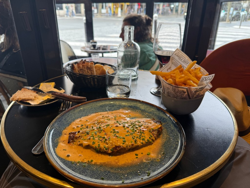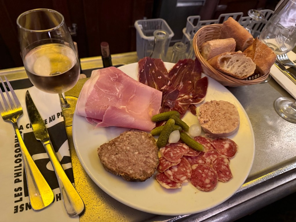 Bit of a low key day to day. Got up to a light but persistent drizzle, headed over to the new Copains location on Rue de Rozier just a few blocks away. Decent GF croissants and good coffee. Then to Bastille for the Sunday Market. Over to BHV to find a light bulb, then home for awhile and a late Steak Frites for lunch at Relais de L’Odeon. After that a little down time and evening walk with come Charcuterie for dinner.