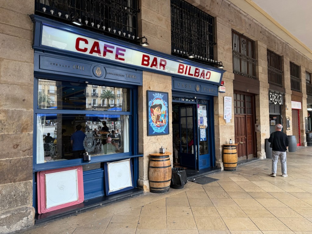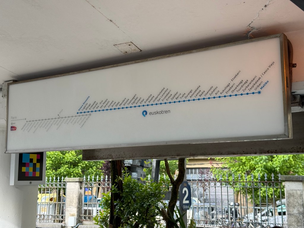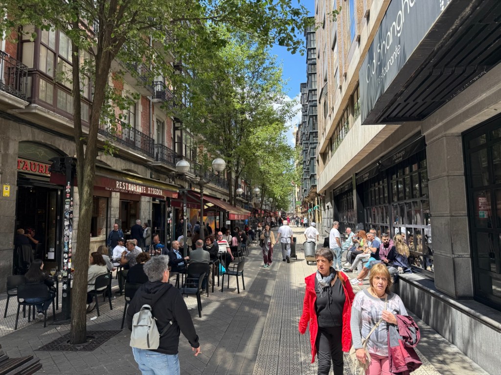 I took the Eusoktren from San Sebastián to Bilbao even though I knew it would be a substantially longer ride than taking a bus. This is the coastal train that runs all the way from Bilbao to Hendaye in France. It was fun because it passed through a number of places that I had walked through and stayed in on my first stage of the Camino del Norte. Got in to Bilbao shortly after noon and walked from the station to my hotel. After checking in it was off to lunch at one of the local eateries. Bilbao has a very different vibe from San Sebastián, but still has a lot of Tapas/Pintxos bars etc. I am struck by how important where you stay is when you visiting a city. Make every effort to stay in a prime location, your impression of the city will have a lot do with where you are based. Tomorrow is my first day of walking on this trip, although I have averaged about 15,000+ steps per day over the last week.