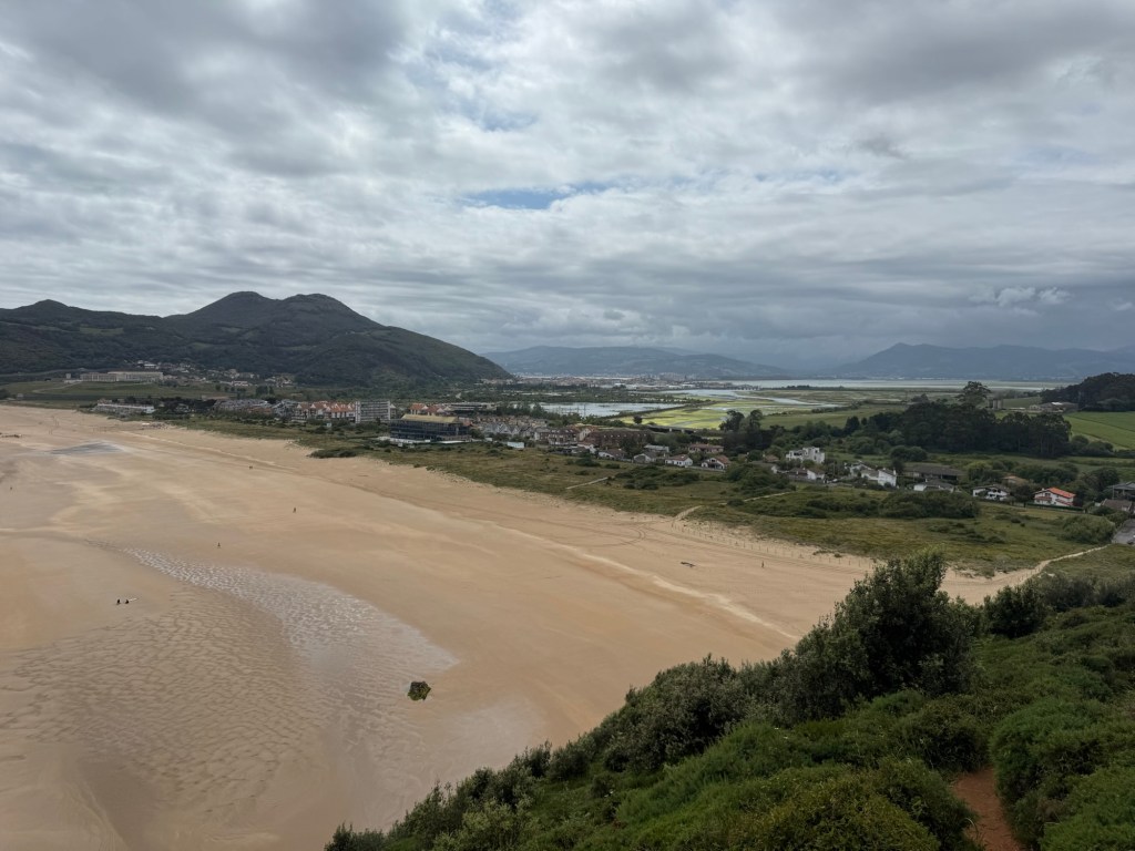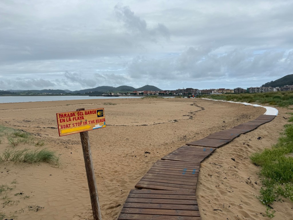 Woke up this morning to rain!! Ugh…but a quick look at weather forecasts suggested it would stop in about an hour, so I waited and sure enough, it did in fact stop as forecast. A short day today that wasn’t all that short. First about an hour walk to the end of the peninsula that Laredo is on, then small boat across. Then coffee with some other pilgrims and then took a somewhat sketchy route around the ocean side with some serious scrambling involved. Beautiful scenery. Noja is apparently a resort town and mainly populated in the summer. While it has a huge number of buildings, all the shutters are down and almost no one is here. My arrangers put my in a nice hotel but a good half hour walk from the camino and the town center. It is near a beautiful beach and I did find an ocean side bar for an Apero. But, wow this place is a ghost town. Hope I can get some dinner, and it will be more than half hour walk just to get back on the trail tomorrow. 23,000 steps.