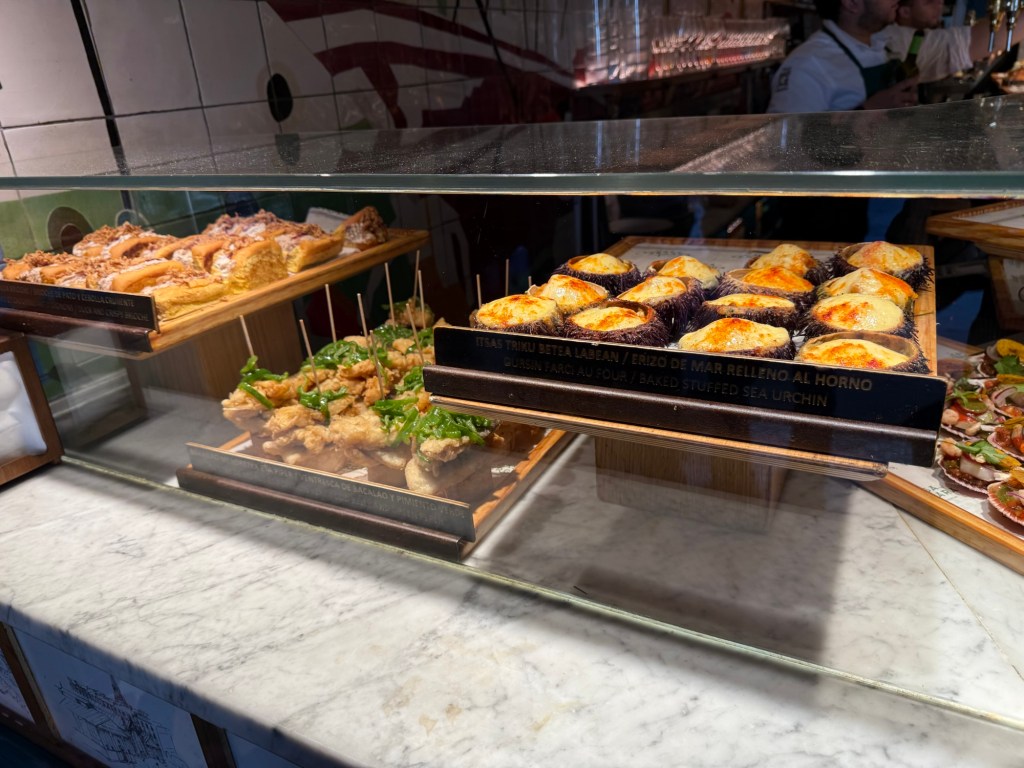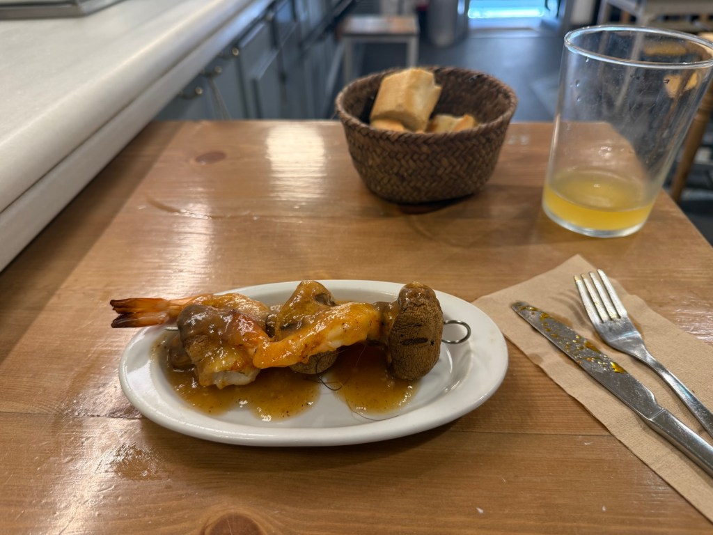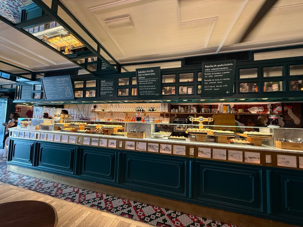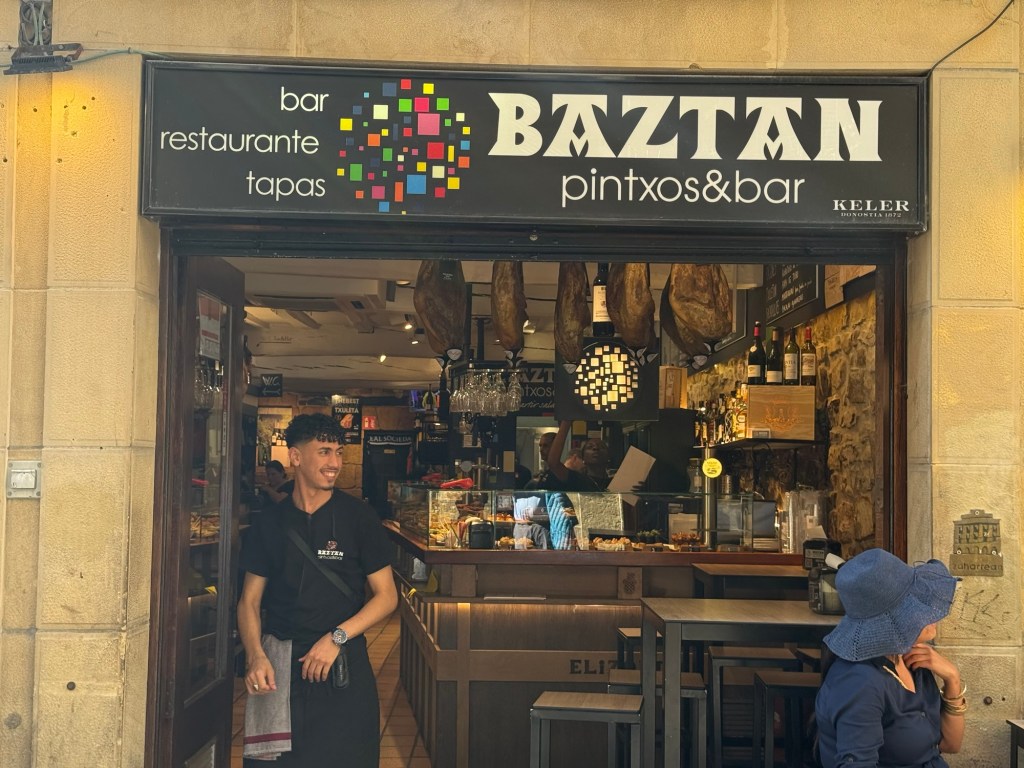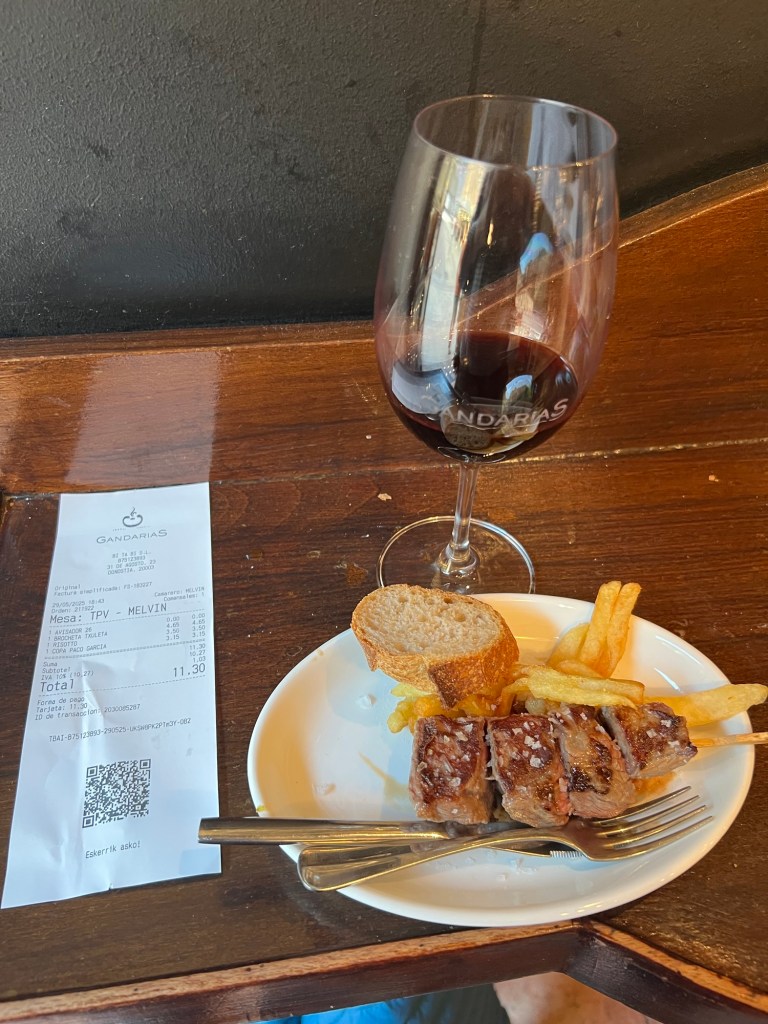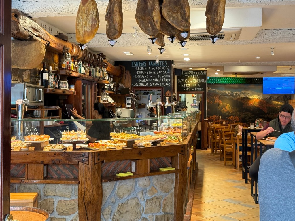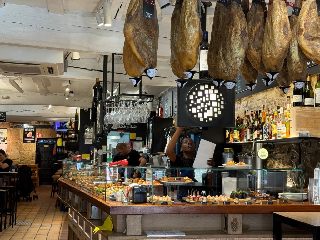 Had a nice breakfast at the hotel, went out for some additional coffee and then headed to the bus station for ride to San Sebastián. This involved changing buses with a 15 minute layover. First bus was apparently an upgraded service, only 3 seats across and luxury leather seats. About an hour and 15 minutes to Bilbao, then onto another bus. This one had two levels and the driver said it could hold 82 people. My seat was the first row, so I had a great view and a few chats with the driver, very cool bus, about an hour and 20 minutes from Bilbao to the San Sebastián bus station. from there about a 10 minute walk to the hotel. Unfortunately lodging can be quite expensive in San Sebastián but I did end up with an enormous duplex room. Went out after installing myself, around 4:00pm to find some lunch. Pintxos available so I strolled around and grazed for the next few hours. Tomorrow the local Euskotren for about 35 minutes to Hendaye and then a local train to Bayonne where I will spend a night.