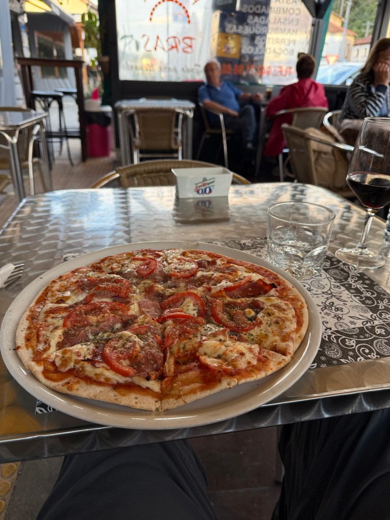Urquena was a very small town, but by some miracle the pizzeria had GF pizza. I was so happy I ate a whole one! Walked around a bit and caught a spectacular sunset picture. Slept well and didn’t wake up until 6:00am, first time on the trip I wasn’t wide awake at 4:00am. After breakfast, decided to catch a bus to the halfway point of my scheduled day, that meant a 16km day instead of about 28km. That worked well and the scenery today was fabulous and included blowholes! Even though it was only 16km there was a lot of up and down and it was hot, so it felt like a very solid day. Llanes is a slightly bigger town with multiple restaurants.