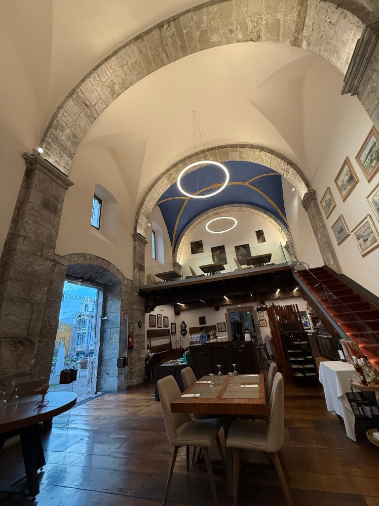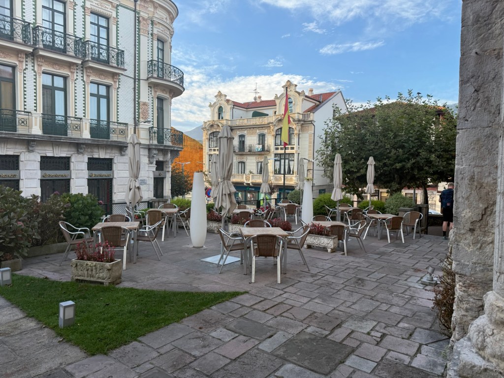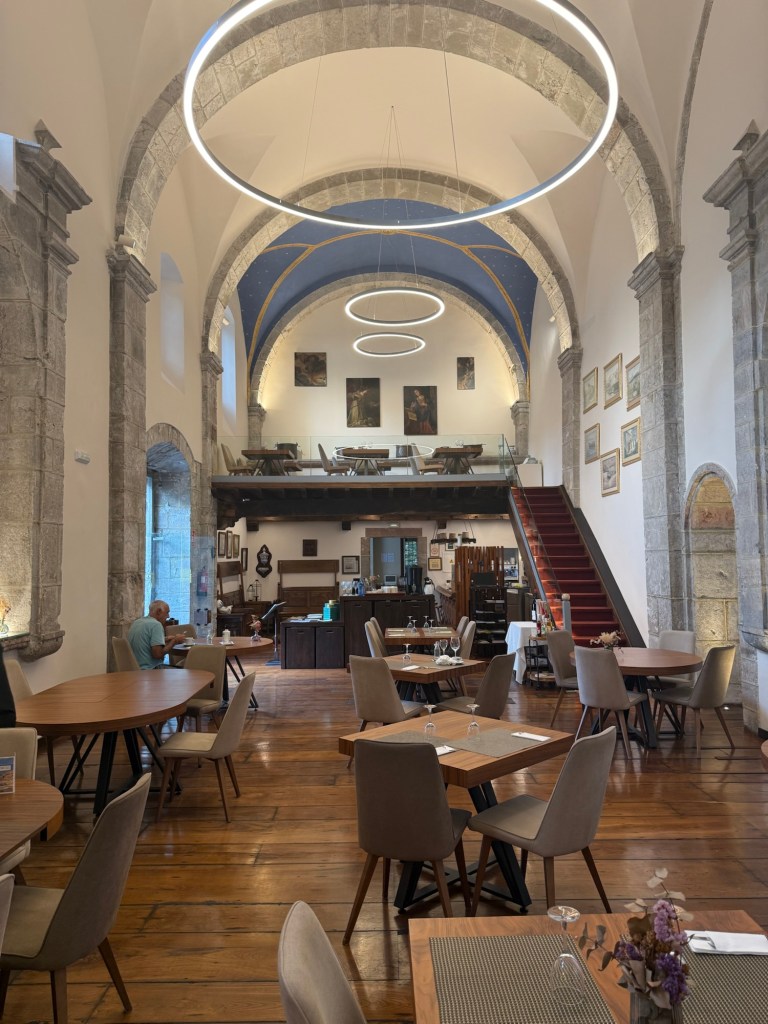 I can highly recommend the Hotel Don Paco in Llanes is you are ever that way. Lovely breakfast this morning in what was an old chapel at one point. Off walking out of town shortly after 9:00am and caught up to by American couple. They, of course, turned out to be from Seattle, Queen Anne. So we walked together all day and stopped for a terrific lunch at a Sidreria that was on the way. Even though it was a mere 17km, it was about 4:00pm when I got to the hotel in Nueva. They took the bus to the next big town where I am headed tomorrow. Nice scenery today, lots of good surf. Nueva typical small town, but nice hotel with limited dining options around.