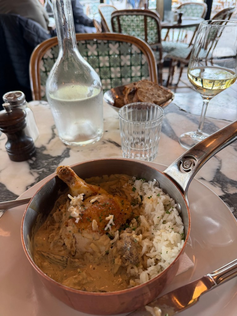 A low key day today, grey but not raining. Started with a stop at Le Peleton for coffee, then waiting around for a new owner to come to the apartment. Eventually it turned out their flight was a few hours late, so headed over to the Bastille market for a walk around before returning to the apartment. Gave them a good orientation and then headed over to the Ile St. Louis to find some lunch, ended up back at the Louis Philipe a solid bistro and had an excellent chicken with a morel mushroom cream sauce. Then back to hotel for a solid nap. After that a stop at Deux Magots for some people watching and then dinner at L’Avant Comptoir du Terre.