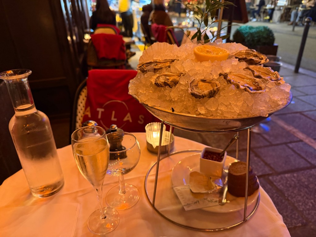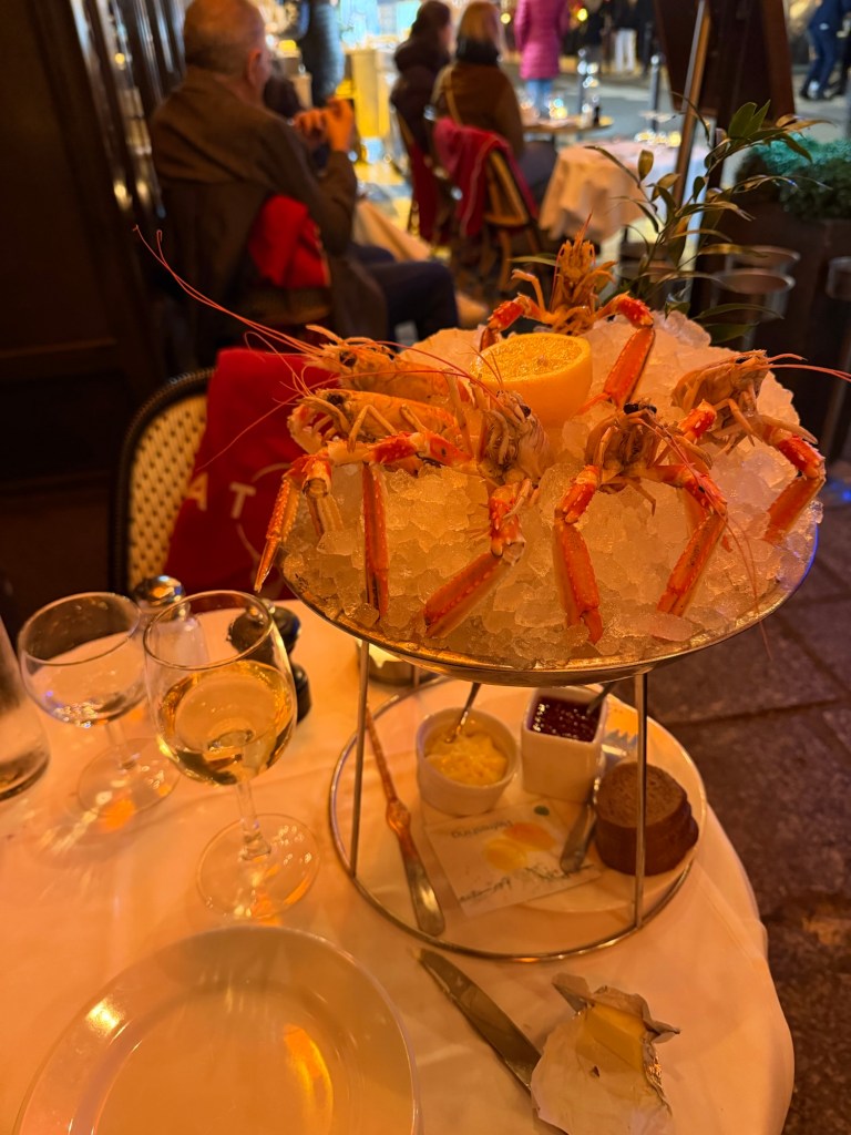 After coffee at Le Peloton, it was off to the Grand Palais to see about getting in to the Matisse exhibit, which has been sold out for awhile. Usually, you can join the museum as a member and skip the lines and reservations, and that worked well this time. Straight into the building, bought a years membership, discounted because I have other memberships and straight into the exhibit. As it turns out this membership includes a large number of other museums so it works out well. Nice colorful exhibit. For those of you who visit Paris frequently, joining the museums you like is the best hack for going whenever you want without waiting in line or making reservations. Then a walk through the Tuileries followed by a bus to the 3rd to try a new Crepe place in the Marche des Enfants Rouge. Way too many people in line for that, but had a good burger instead. Back for a nap and some organizing and then put my storage stuff back into the storage space. Dinner at Atlas, lovely oysters and Langoustines. Train tomorrow down to Spain!