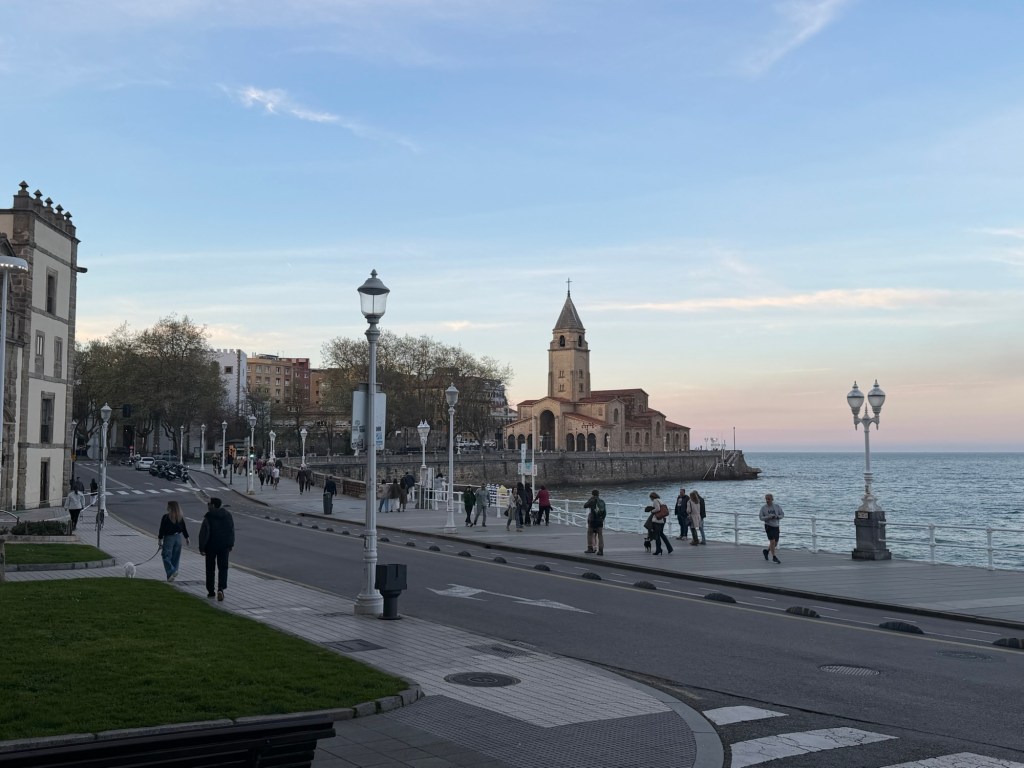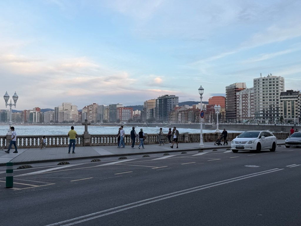 A long bus ride today. First bus to Bilbao, which has one of the nicest bus stations ever. Then an hour and a half until the next bus, so a decent lunch was found. From there a 2:30 bus to Gijon with multiple stops arriving on time in Gijon at 7:20pm. Short walk to hotel, then a shower and off to find some dinner. Lots of places around, but ended up with a mediocre pork loin type dish. Gijon is beautiful with a lovely curving waterfront. Fortunately a day off tomorrow to recover and dinner with MP relatives.