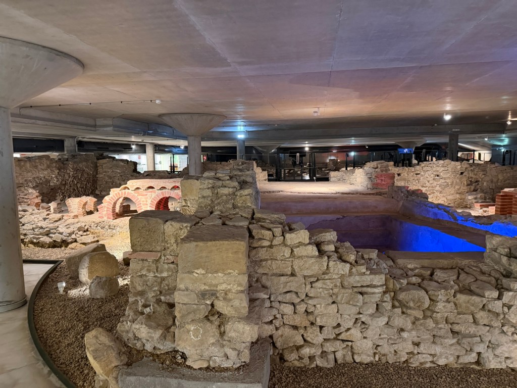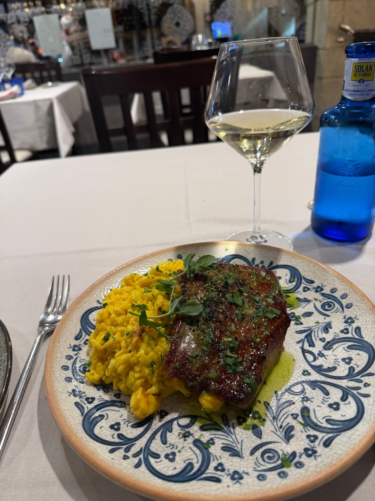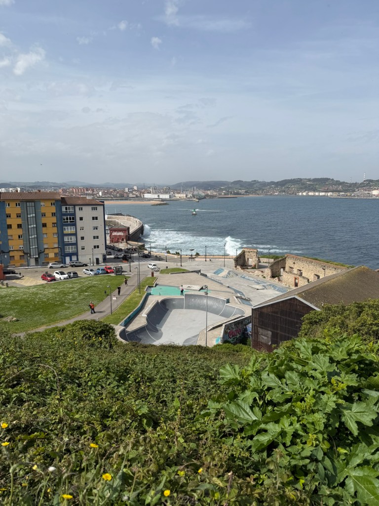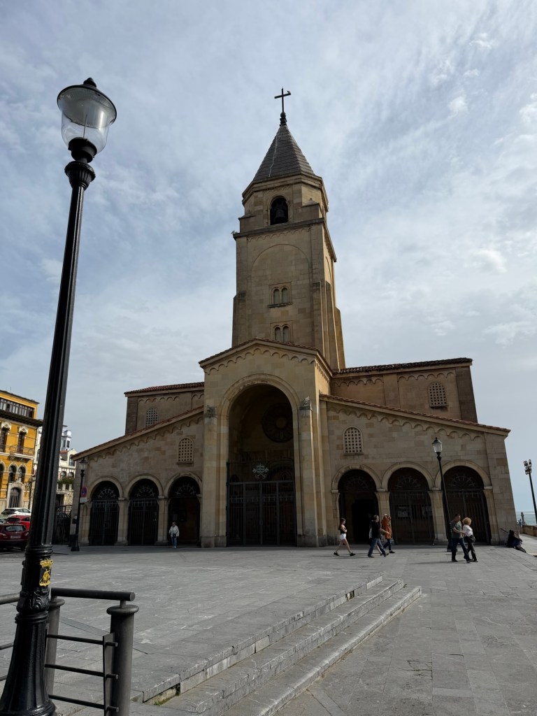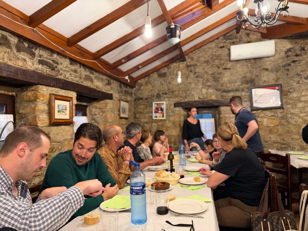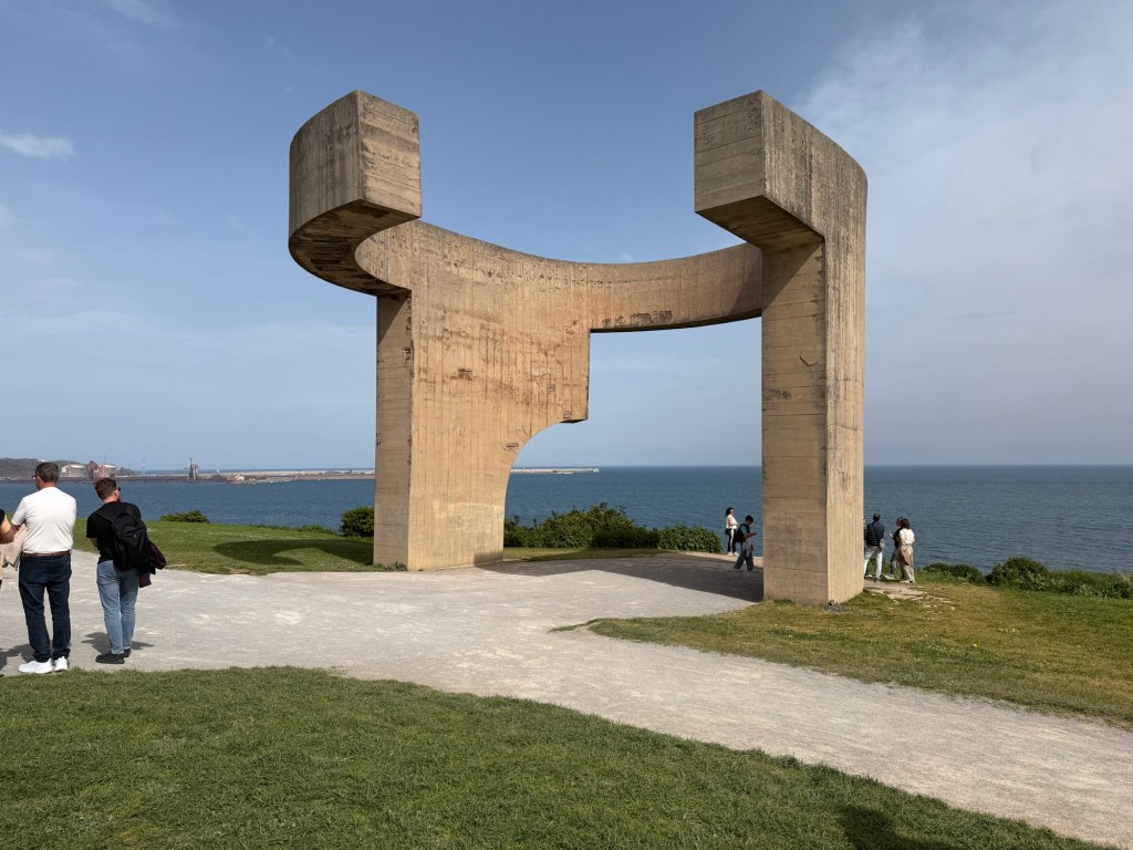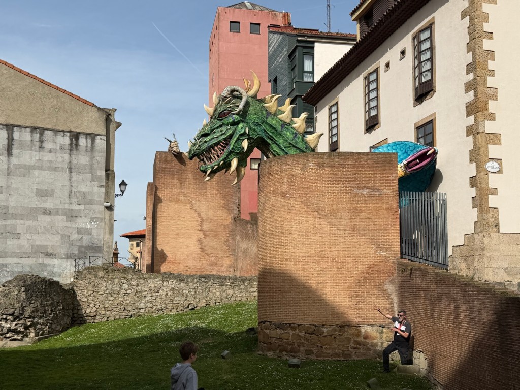 A solid day in Gijon. Went and found the central market this morning, then off to the Roman baths, nearby church and up the hill to a park and famous sculpture. Then a delicious lunch at Taberan Zingara. Some down time and then a major fun dinner with the Regales family. My New Hampshire neighbor, Michael Purves married in to this family and they are a lot of fun. I think we had around 16 people for dinner at a cider house type place. Much fun was had by all!