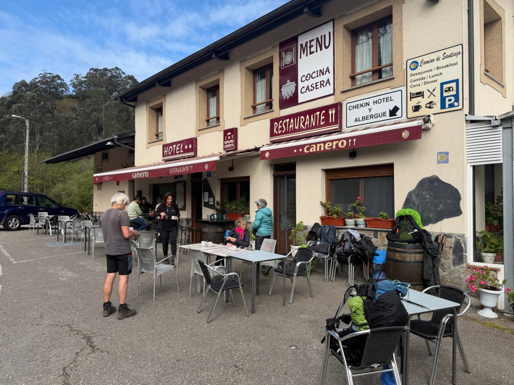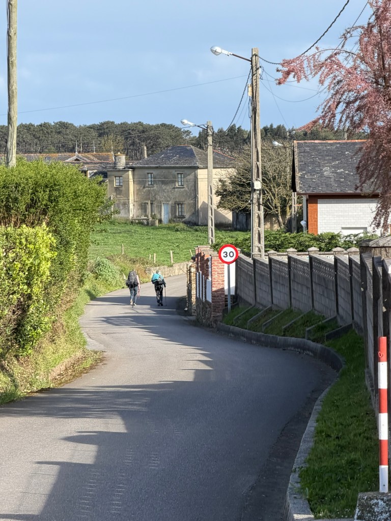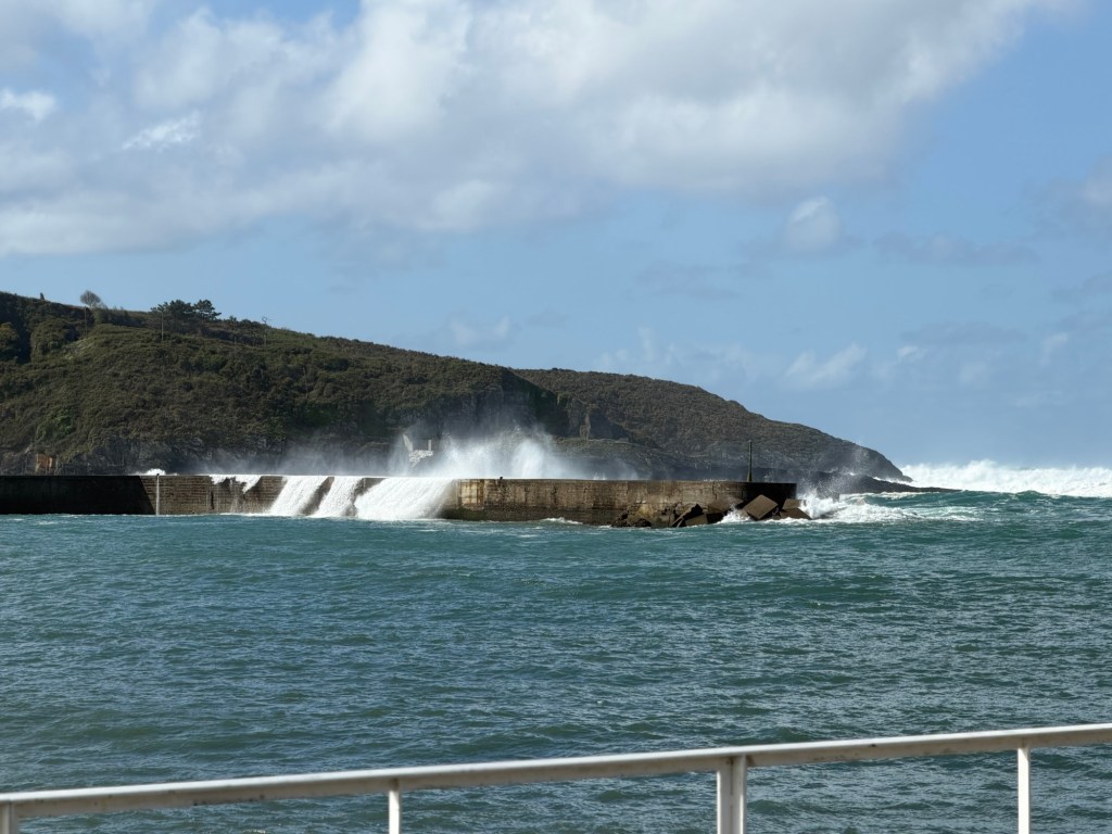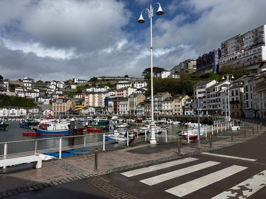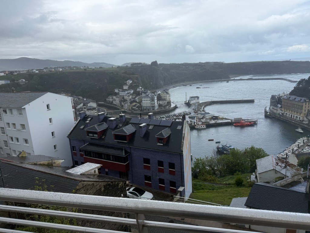 A very brisk morning which made for good walking, and not too many big hills today. The forecast rain held off for the most part, but came down hard in the last 15minutes before arriving at the hotel. Still took a solid 5 hours to get here! Last night had serious camino magic as I ended up sharing dinner with a retired psychologist from Belgium, his partner from Madrid, and then we met a couple of locals, a retired cop from Wales and his wife, a retired prosecutor from Amsterdam. Many languages spoken and much fun. Today’s walk was mostly on backroads with some trail. Luarca is a town wrapped around a harbor full of fishing boats. Huge waves offshore and a good sea wall. Made it in time for lunch at 3:00pm which was the meal of the day. Met Juan who is originally from Barcelona but lives in Australia and has worked at the Sydney Botanical Gardens for 20 years. I was able to help Juan get an esim going on his phone as the one he had was not working. Took a little doing but in the end, UBIGI for the win! He was very happy as not having a working phone was challenging. Off and on rain, but was able to walk around town a bit. 28,725 steps for the day.