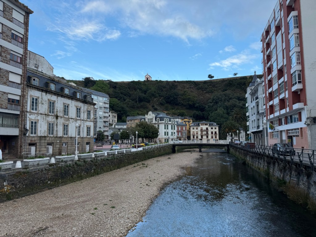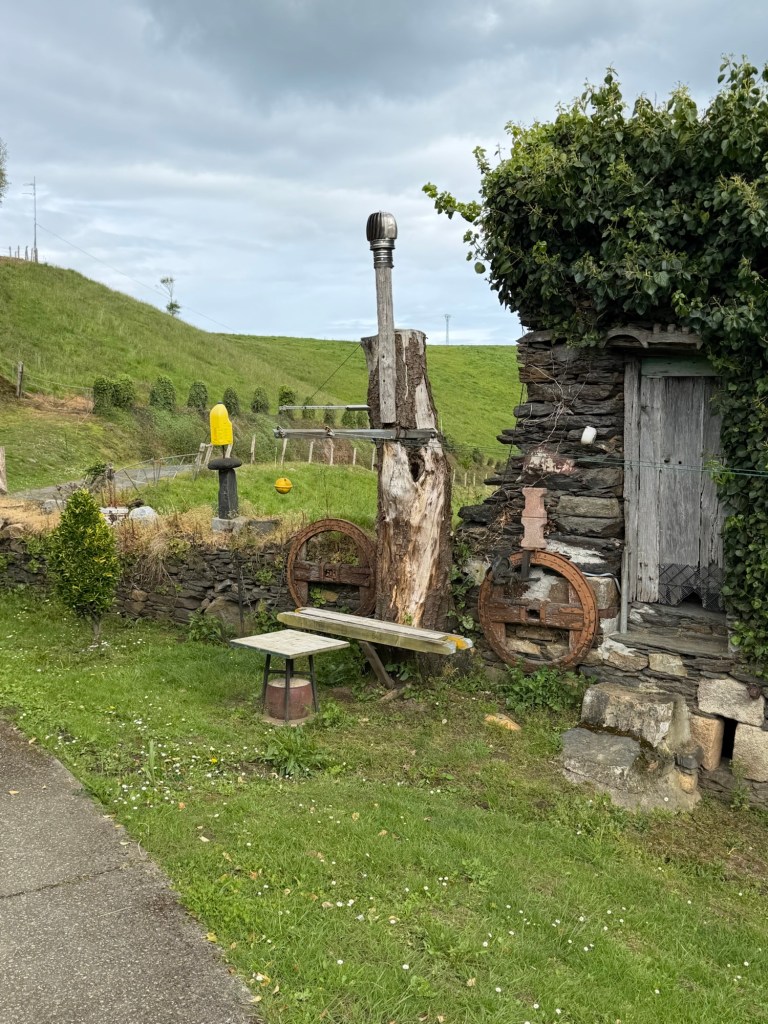 I didn’t end up eating dinner last night as my 3:30pm lunch was big enough to tide me over, some Paella, then roast chicken and fries and a dessert and some wine all for a Prix fixe price of 20 euros. A steep climb this morning out of Luarca, then largely country roads for miles with lovely rolling terrain and some hills. Around 1:15pm came out near a little cafe and ordered some lunch. After a rather tough but tasty burger walked out and turned out a bus was due at the bus stop, it was late, but saved another 2 hrs of walking and considering I had 4hrs already in, I was happy. The Palacio de Arias hotel is quite nice, and managed a clean up and a nap. Then out to explore the town. Not a lot going on. Interesting smell prevalent of barnyard with maybe a hint of cider.