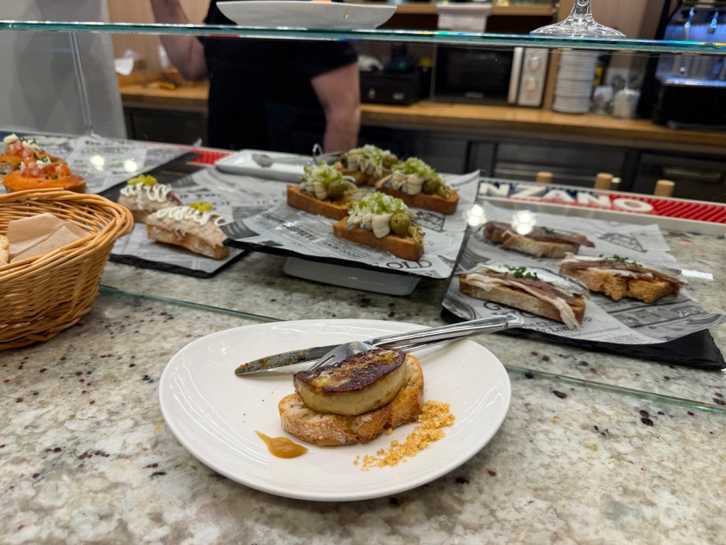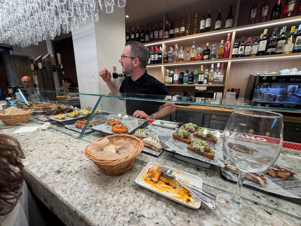 Today was a long day on the bus. Something like 4.5 hours from Oviedo to Bilbao then an hour break then another 1.5 hrs to San Sebastián. Spanish buses are quite good, exceedingly punctual and often the best way for certain routes that are not served well by train. For those planning a trip to Spain be sure to download the ALSA app. This is the main bus company in Spain. For longer trips, look for the “Supra” designation as these buses are much more luxurious with only 3 seats across and generally more direct. I had a Supra for the first part of my trip and it made it substantially more comfortable. Checked in to my Pension in San Sebastián, and then headed out for some Pinxtos as I hadn’t eaten all day. For whatever reason the place is crazy crowded, but fortunately you can still get into some places without too much effort. Not sure why it is this crazy, but possibly related to soccer game tomorrow.