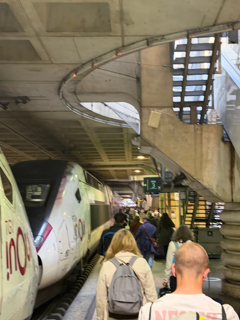 Long day of trains and buses, but all went smoothly. Out the door in San Sebastián at 8:30 this morning then bus to a Euskotren station. Euskotren to Hendaye, which is just across the border in France. Then an hour wait for train to Paris. 5hrs on the train to Paris, then a bus to the apartment. I must admit it felt great to walk in the door of the familiar La Lanterne apartment and feel at home! I have stayed in 12 different hotels in the last 19 days! It will be nice to wake up for the next 10 days and not have to pack every day! Nice warmish weather in Paris, I stocked in some groceries and bought a nice chunk of aged Comte!