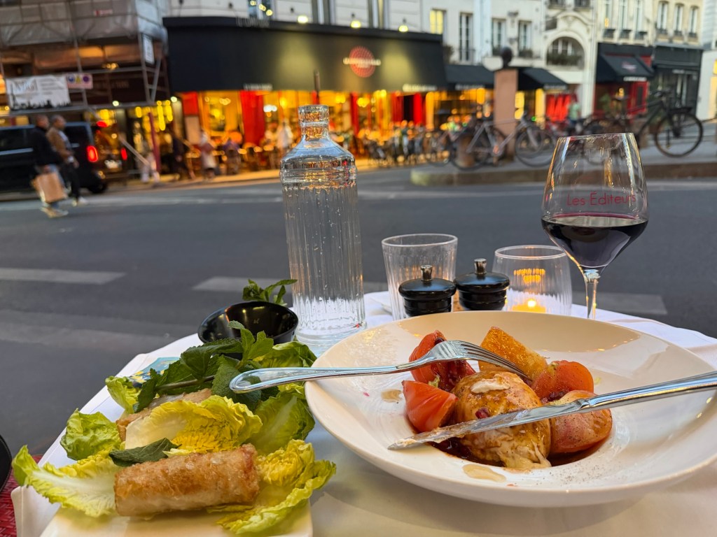 Always bitter sweet coming to the end of a Paris trip. Walked around Pl. Dauphine and Notre dame this morning, then lunch with fellow Apartment share holders at Louis Philipe. Apero with Lilly from Je T’aime me neither. Light dinner at Les Edituers and back to apartment. Some wash, packing organizing etc. but not a super early flight so time to finish up in the morning.