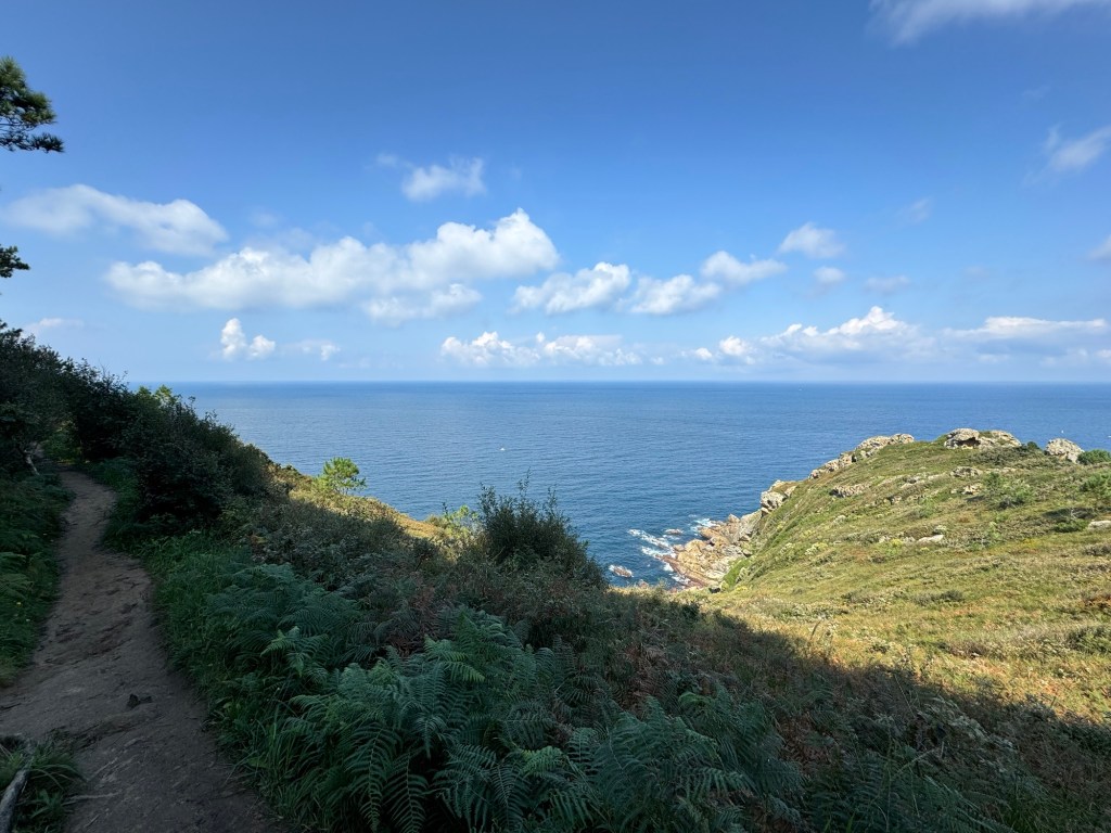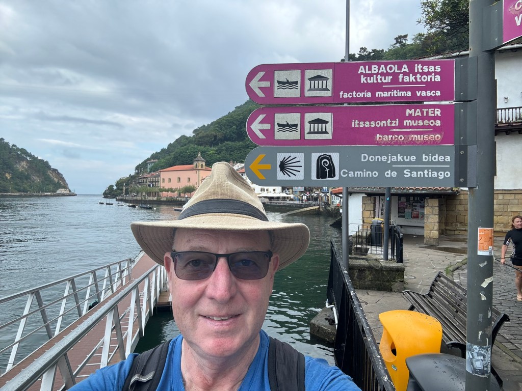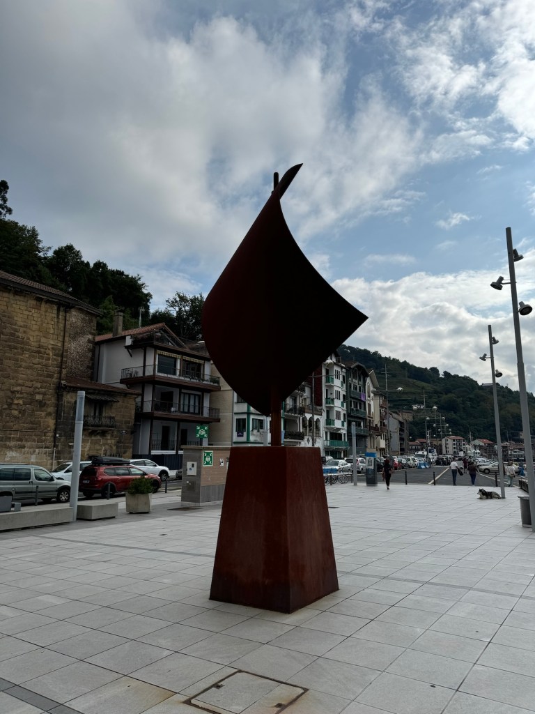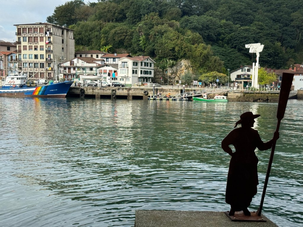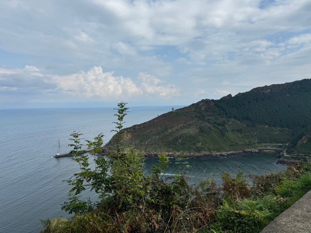 On to the day, which was excellent: Started with coffee and GF Avocado toast at Simone Coffee Club, a great place that I knew of from previous visits. Then a little walking around town before taking the bus over to Pasaia, near where I left off yesterday. There is a cute little ferry that runs back and forth continually, so I took it over to the far side for an exploration before heading back. Although today was much shorter distance wise, my app shows almost the same amount of vertical. So, walked along the ocean towards the lighthouse and then many many stairs, Rather nice road for awhile and then on fairly well traveled trails. All in all I think I was walking for a solid 3 hours. Came down in the Gros district and ended up with a very reasonable Prix Fixe lunch at Nam, Mushroom risotto and a burger and flan and half bottle of red for 23 Euros! Step count: 21,500 and 60 floors climbed.