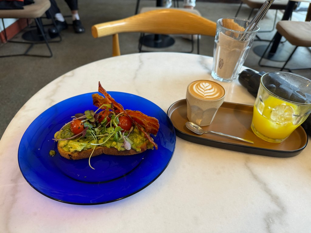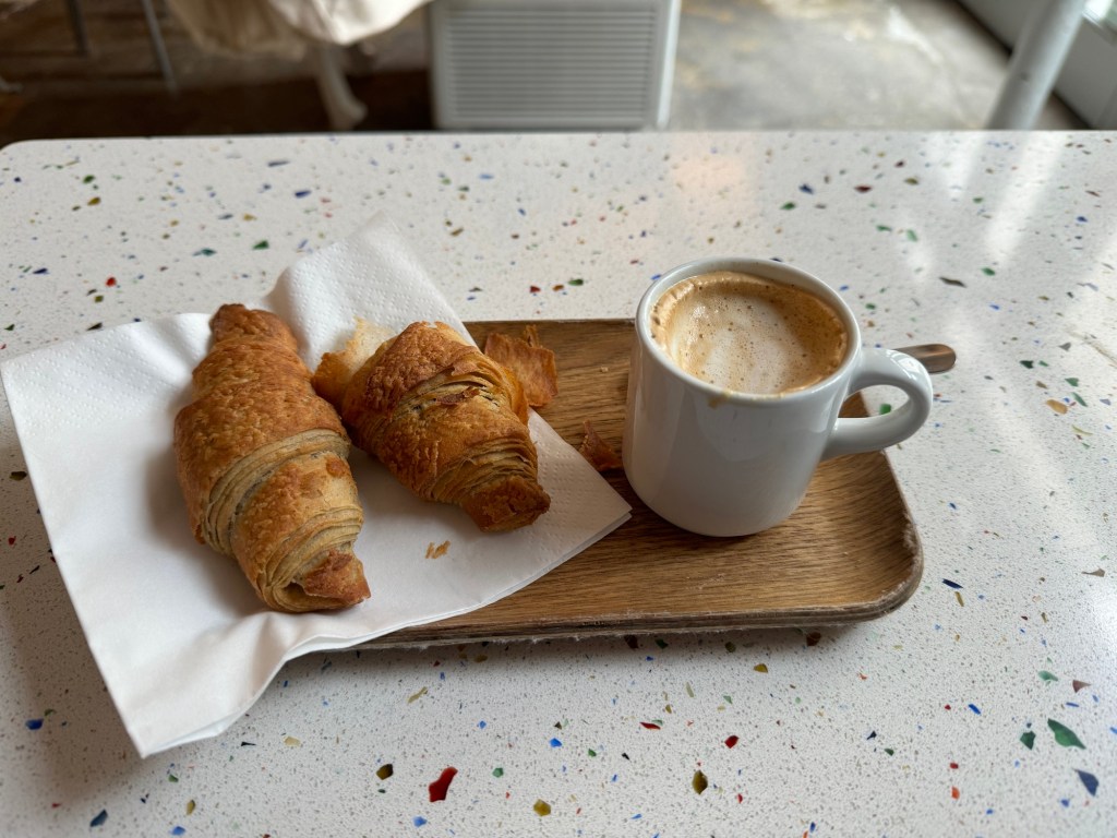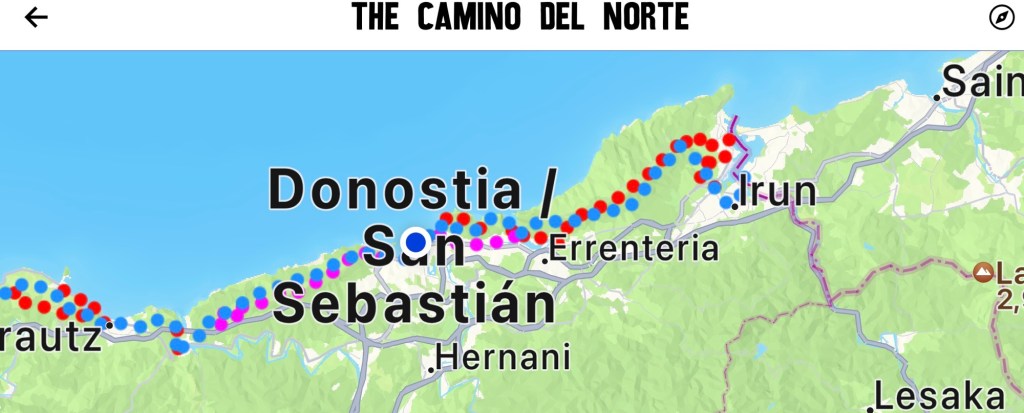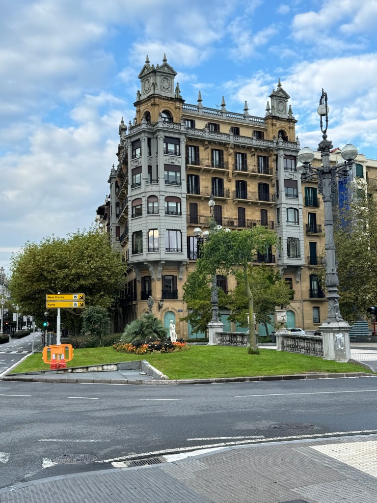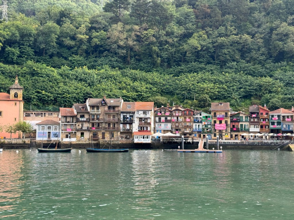 On to the day, which was excellent: Started with coffee and GF Avocado toast at Simone Coffee Club, a great place that I knew of from previous visits. Then a little walking around town before taking the bus over to Pasaia, near where I left off yesterday. There is a cute little ferry that runs back and forth continually, so I took it over to the far side for an exploration before heading back. Although today was much shorter distance wise, my app shows almost the same amount of vertical. So, walked along the ocean towards the lighthouse and then many many stairs, Rather nice road for awhile and then on fairly well traveled trails. All in all I think I was walking for a solid 3 hours. Came down in the Gros district and ended up with a very reasonable Prix Fixe lunch at Nam, Mushroom risotto and a burger and flan and half bottle of red for 23 Euros! Step count: 21,500 and 60 floors climbed.
