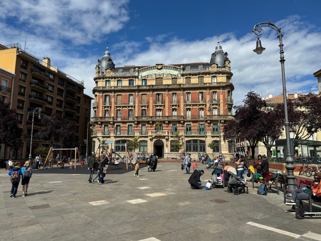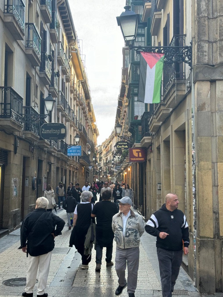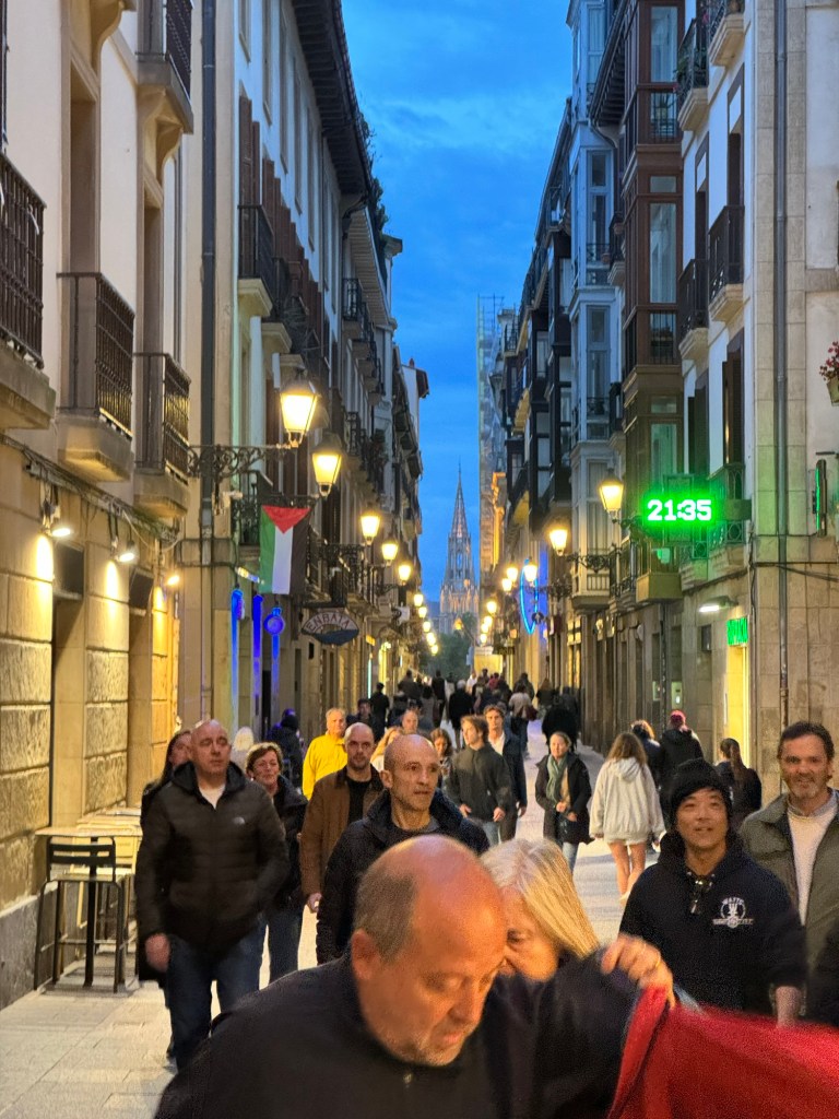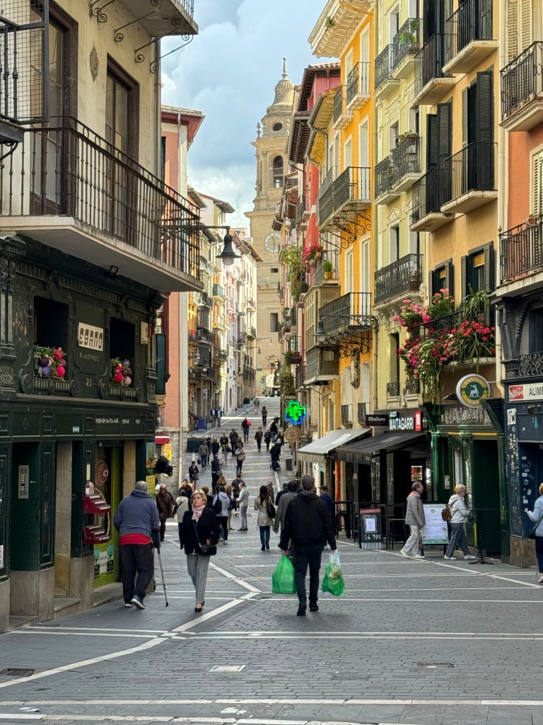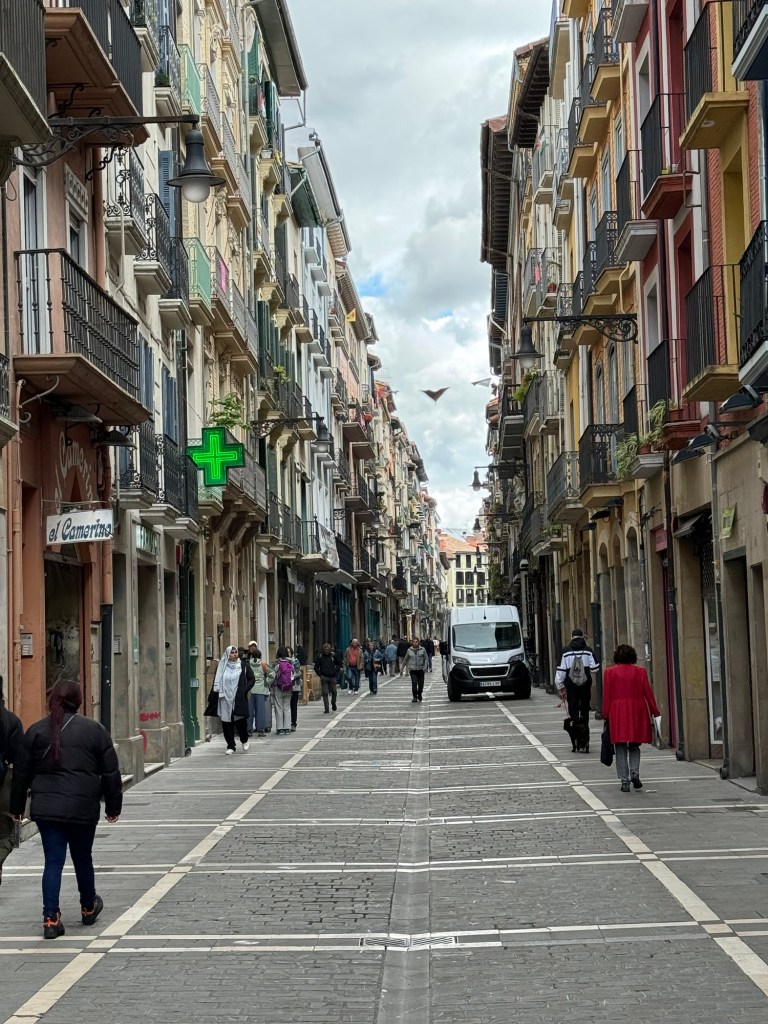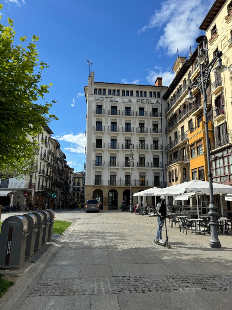 Got quite the early start today as I wanted to leave the AirBnb in pristine condition. Although it was small, it was very well done and the Murphy bed with integrated couch worked well. Probably would have been a little tight with two of us, but for a solo traveler it was perfect and very economical. I drag my stuff down to the Halte Routiere, the bus stop and got on the Blabla bus to San Sebastián. Fortunately there was plenty of time to make the connection as we were a good 25 minutes late on a 40 minute trip. Switched to another bus and then about and hour and half to Pamplona through the most beautiful country of rolling hills. Looked almost like Vermont. Hopped a taxi out of the Bus station to my hotel. Let me say that I’m not really a 5 star hotel guy, but this one was on sale for a great price, was right on the main square and Hemingway used to stay here. I think the shower stall is almost as big as the apartment I was staying in last night. Anyway, room not ready, but they took my stuff and I immediately launched into a basic tapas crawl, eat a few things, drink a glass of red and then move on the next place. Spain is so much more relaxed around food and food culture than France. Pamplona has a wonderful feel of vibrancy, but is car free in the center. Spent most of the afternoon walking around and revisiting where I came into Pamplona for the first time through the French gate, on my camino in 2014. By some odd coincidence, Nancy Reynolds, who at the time ran an outfit called “Just Get Me Started” is here guiding a group. We had plans to Tapas crawl later, but she has too many moving parts, so will visit I tomorrow.