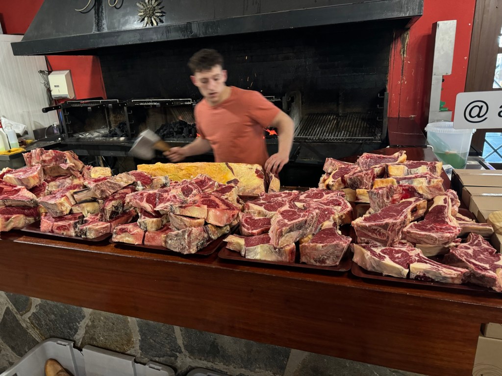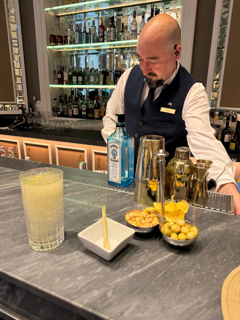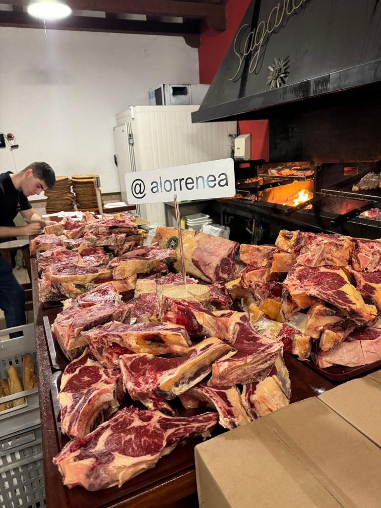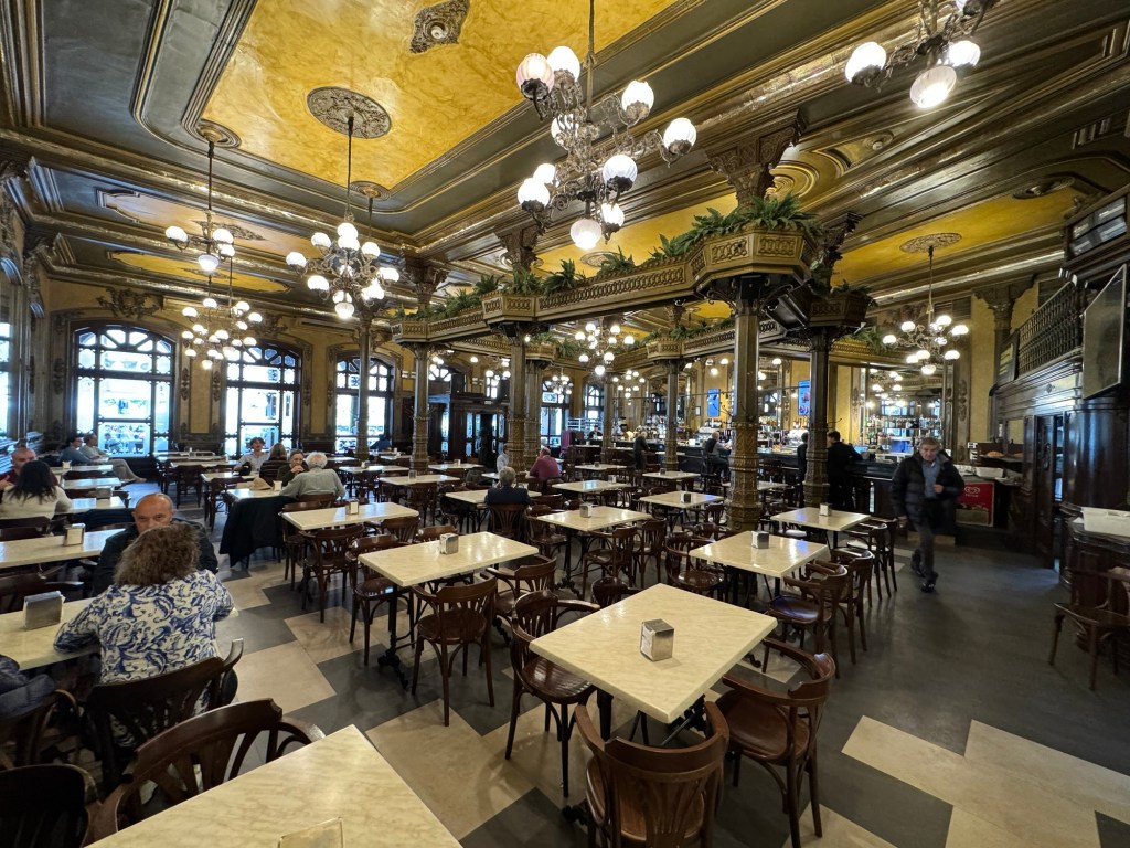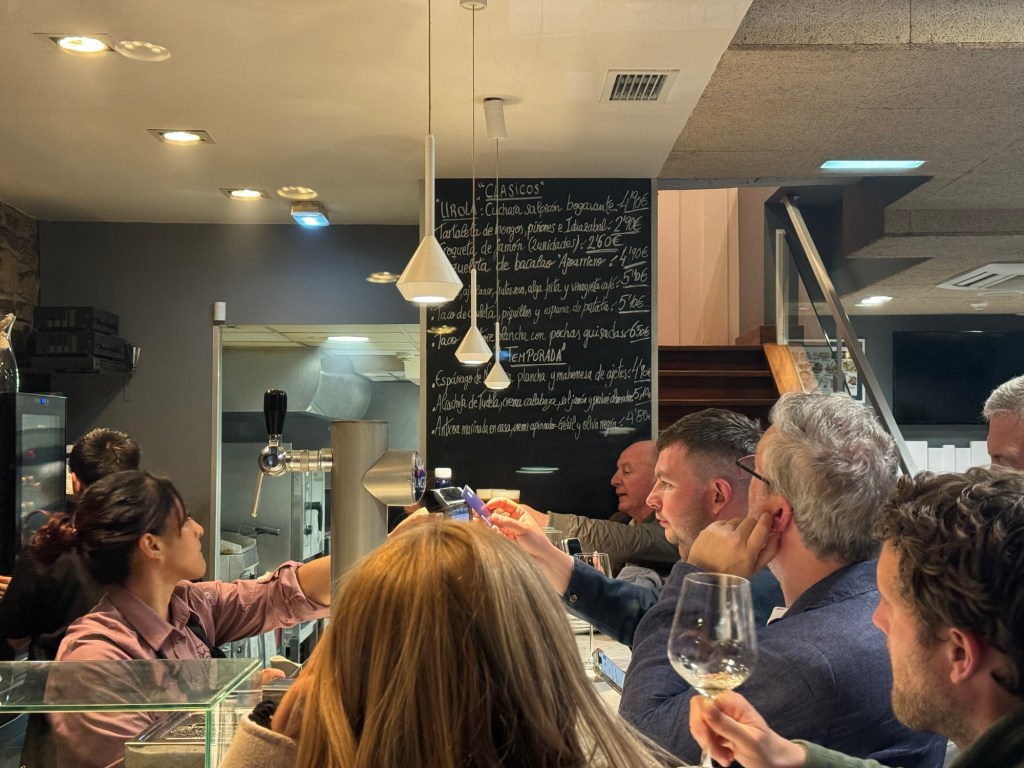 After walking around a bit in the morning, I rented an e-bike with the intention of heading to Astigarraga, the home of the Cider houses. E-bikes are quite a nice thing as they pull some of the weight for you while you still get to bicycle. There are protected bike paths the whole 10km to the town. I ended up at a Cider museum which wasn’t much, but then had lunch at a ciderie. These places are like massive dinning halls. Apparently in the old days, they provided a place to cook and sold the cider, the fishermen brought their fresh catch and cooked it. Now it is clearly an industry with many hundreds showing up for lunch. Basque cider is dispensed from a keg at quite a distance, you hold your cup out and someone turns the tap on. Luckily I headed back and returned the e-bike before massive rain showers hit. A quick but interesting cocktail at the fancy Maria Cristina hotel and then some tapas for dinner.